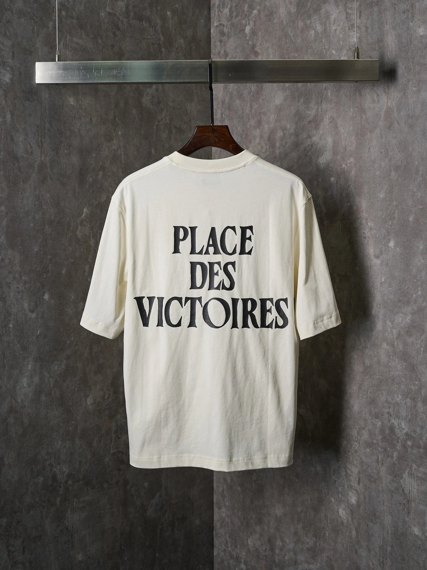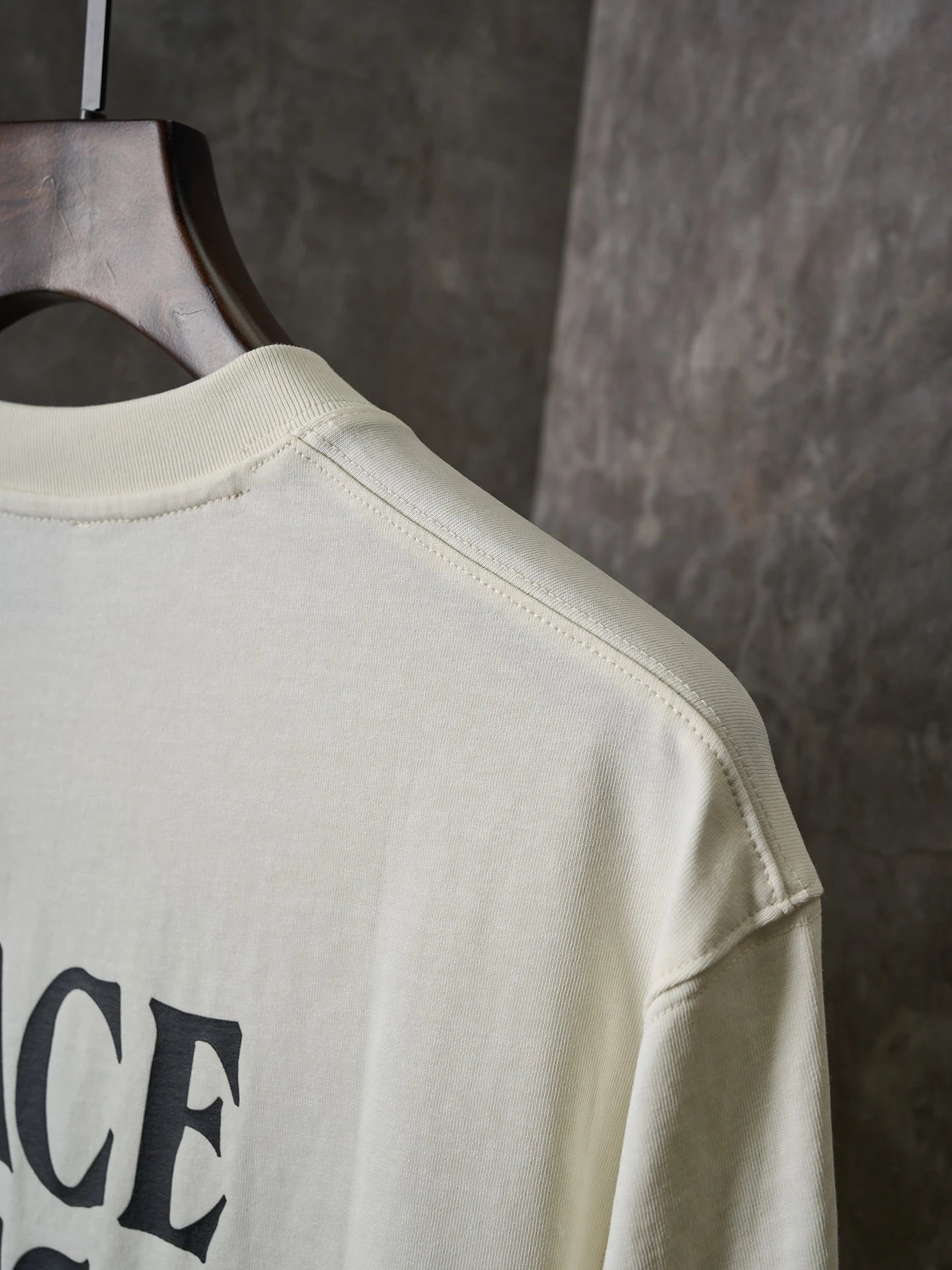 Soft combed cotton, beige base with black heart print. Back has Paris landmark print. Washed fabric resists shrinkage/fading, loose fit.
