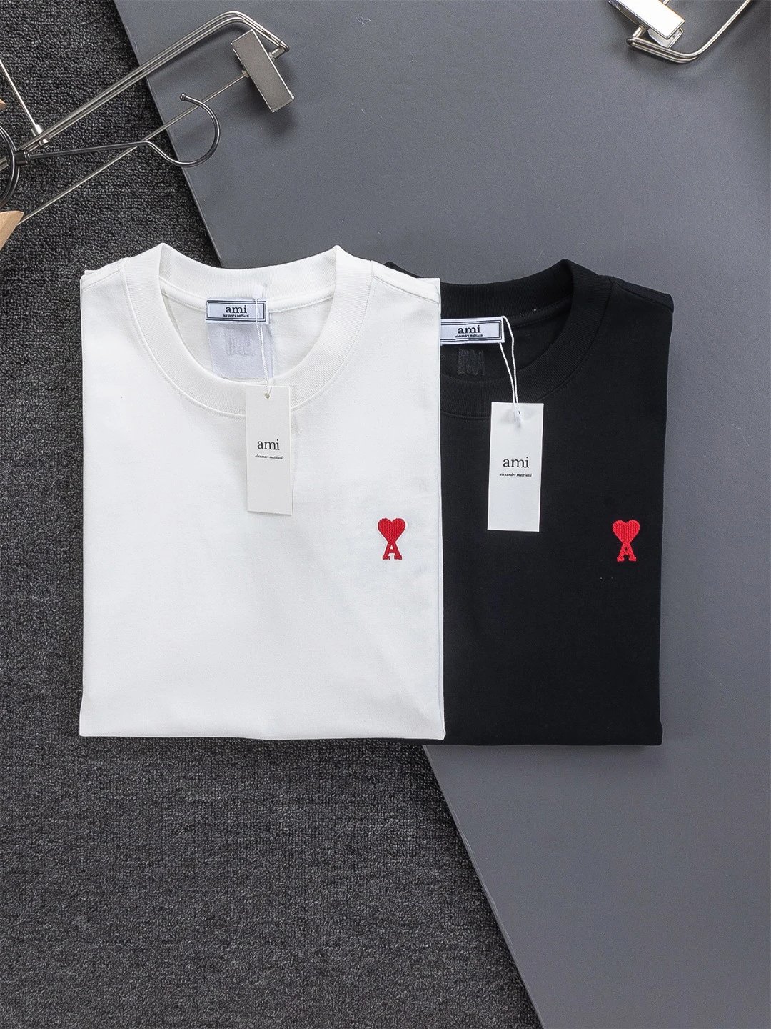 AMI Paris 26ss Heart Embroidered Unisex Cotton T-Shirts