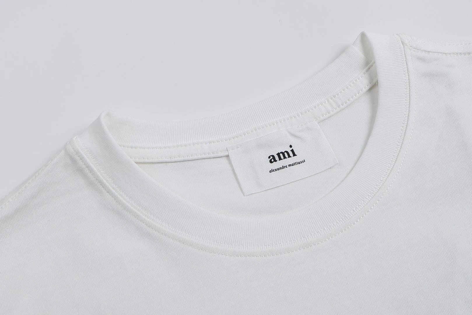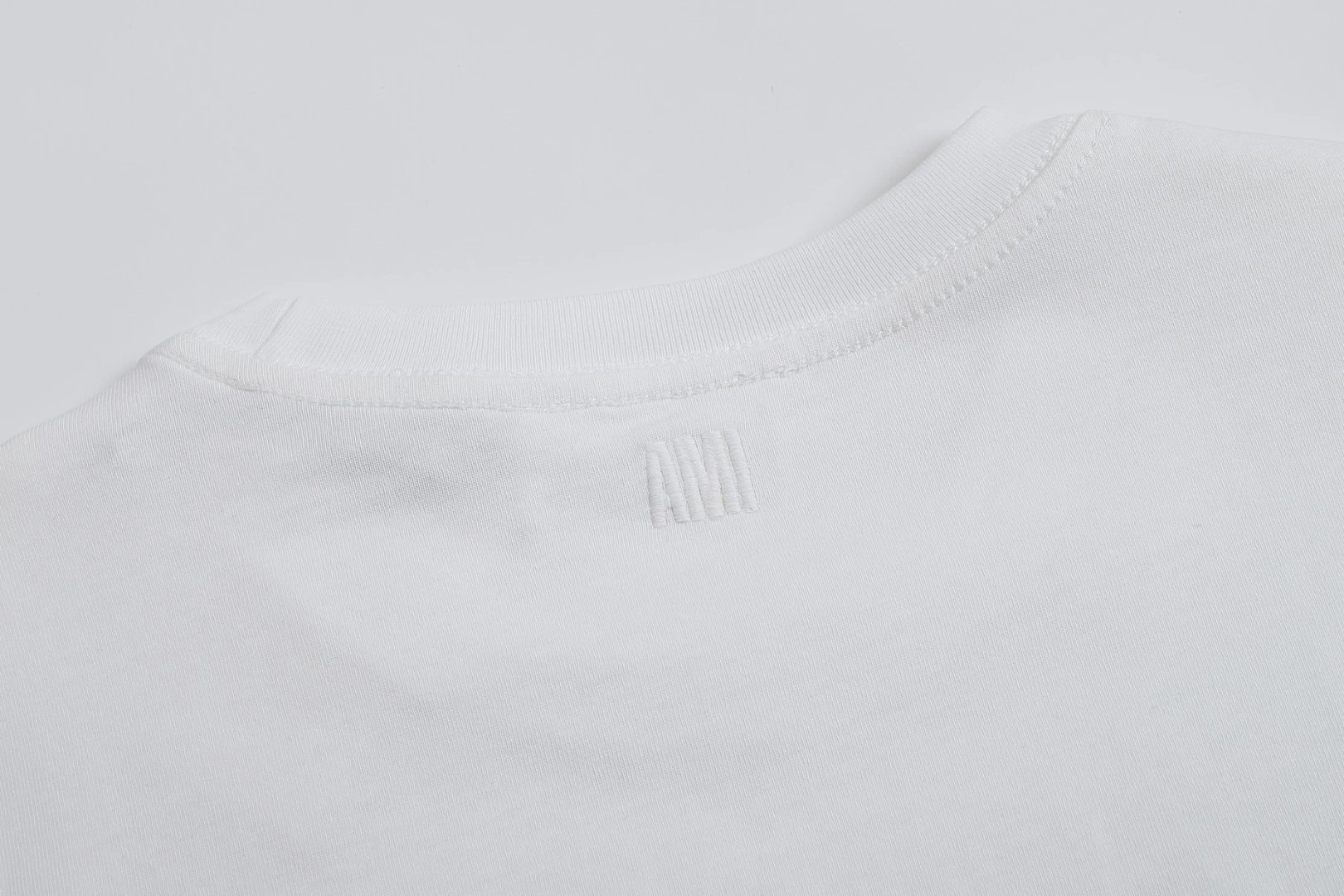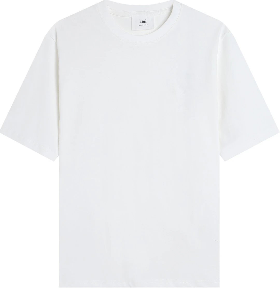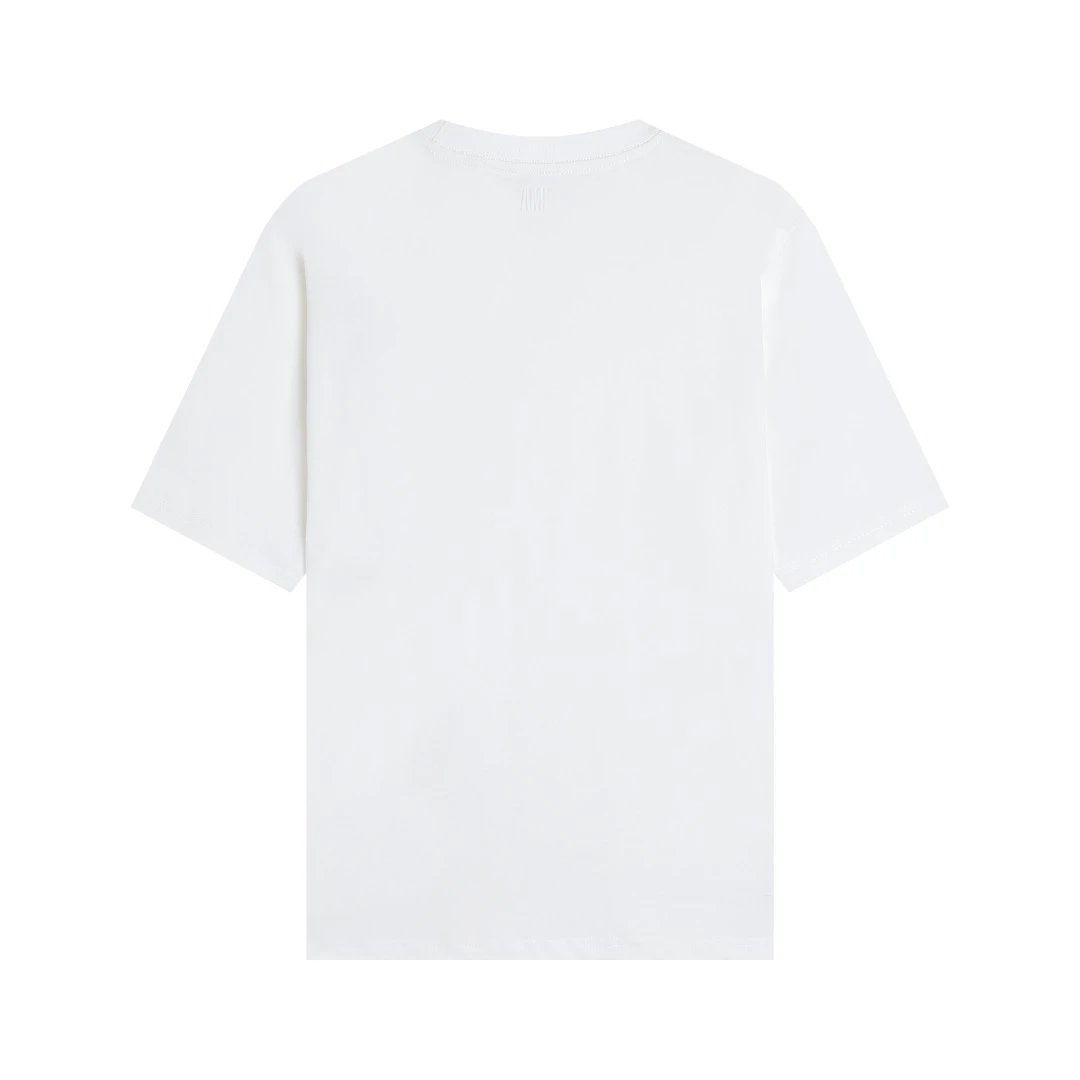 AMI 106 short sleeve T-shirt has a same-fabric heart detail. Available in multiple colors including white.