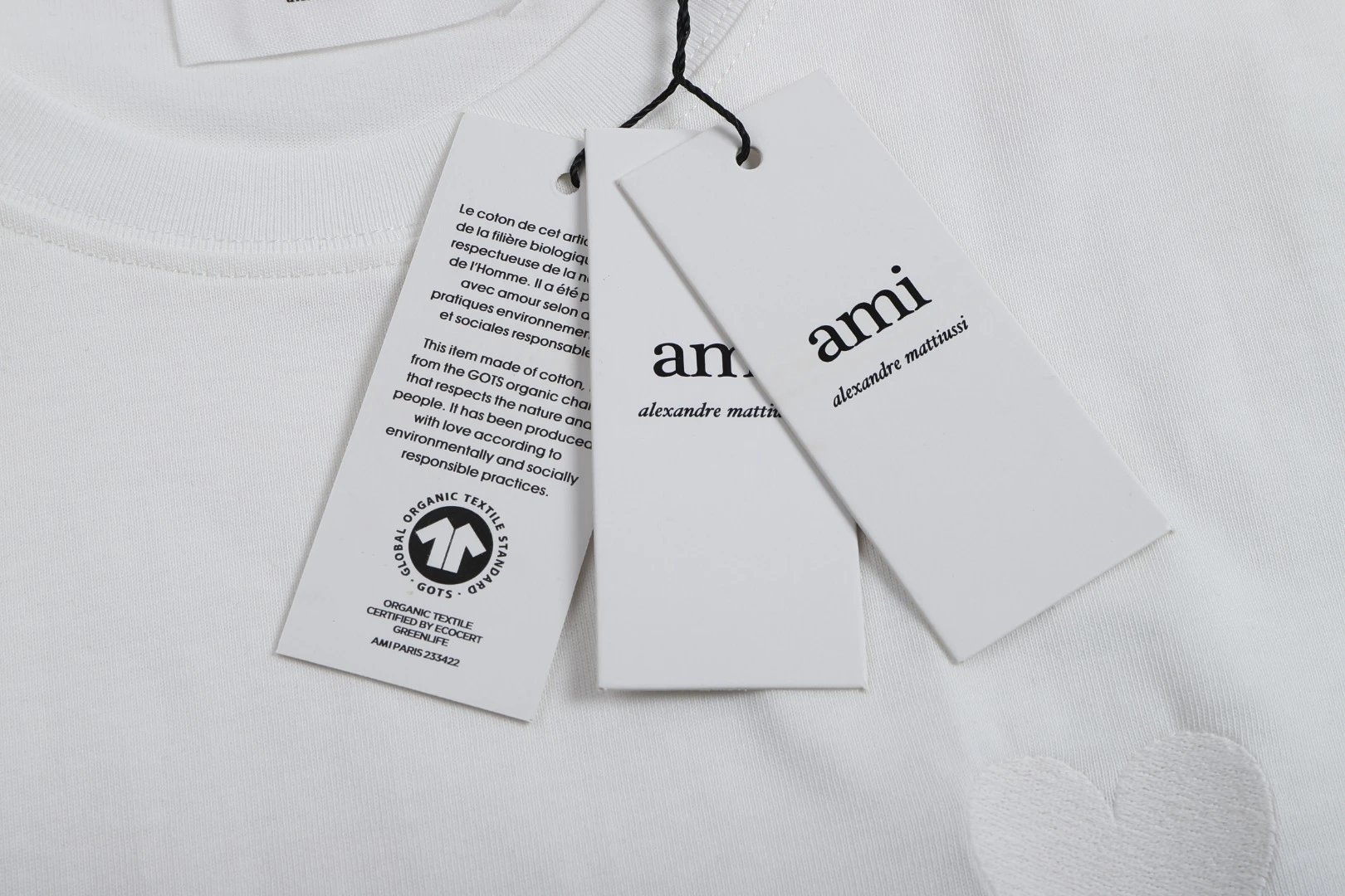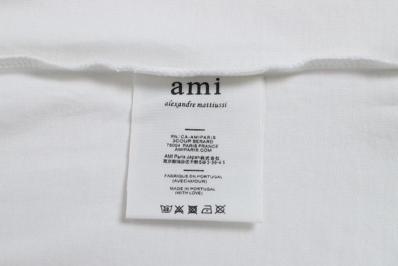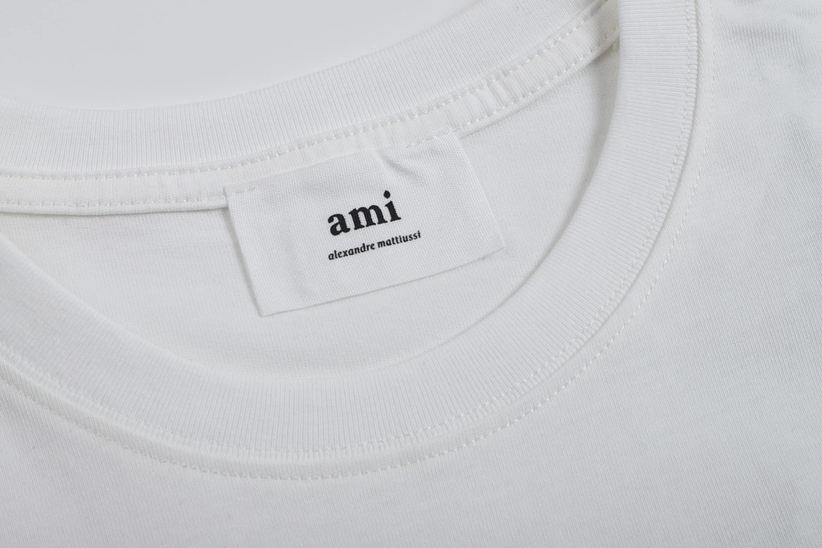 AMI 106 short sleeve T-shirt has a same-fabric heart detail. Available in multiple colors including white.