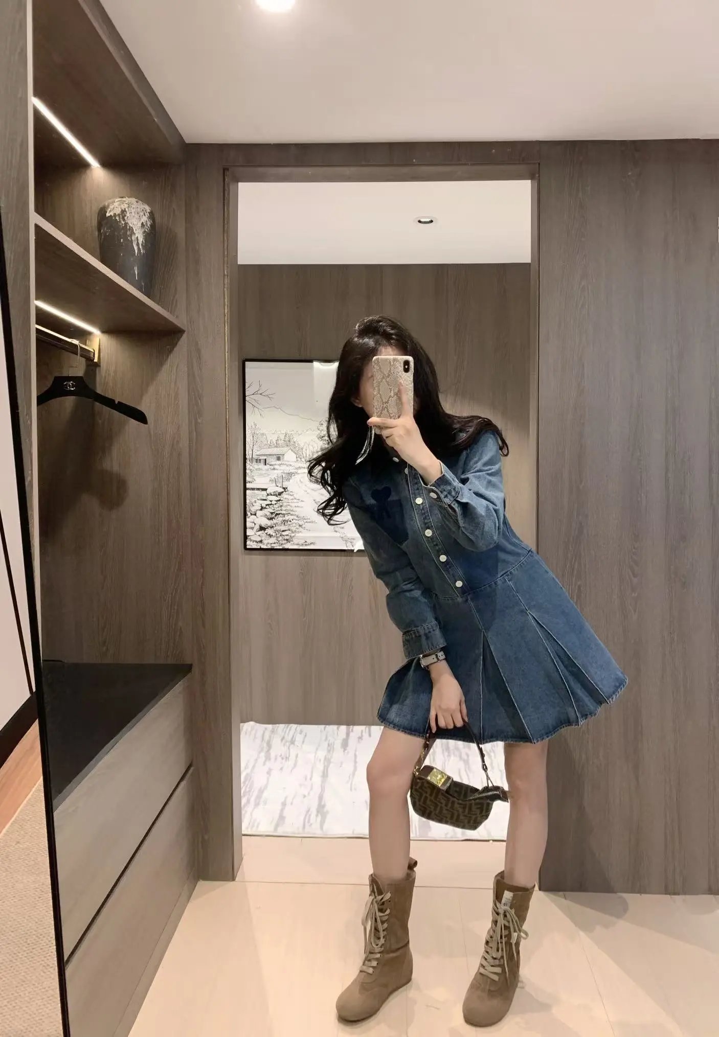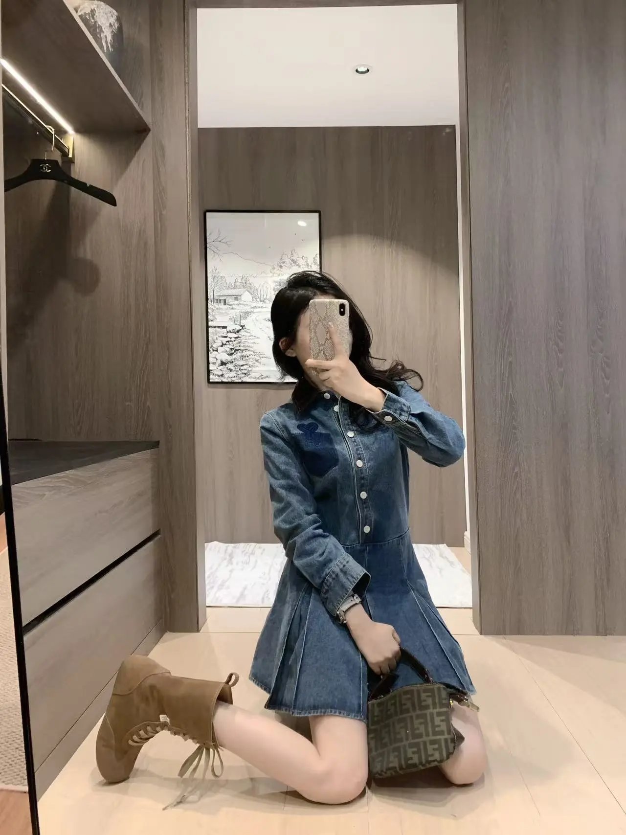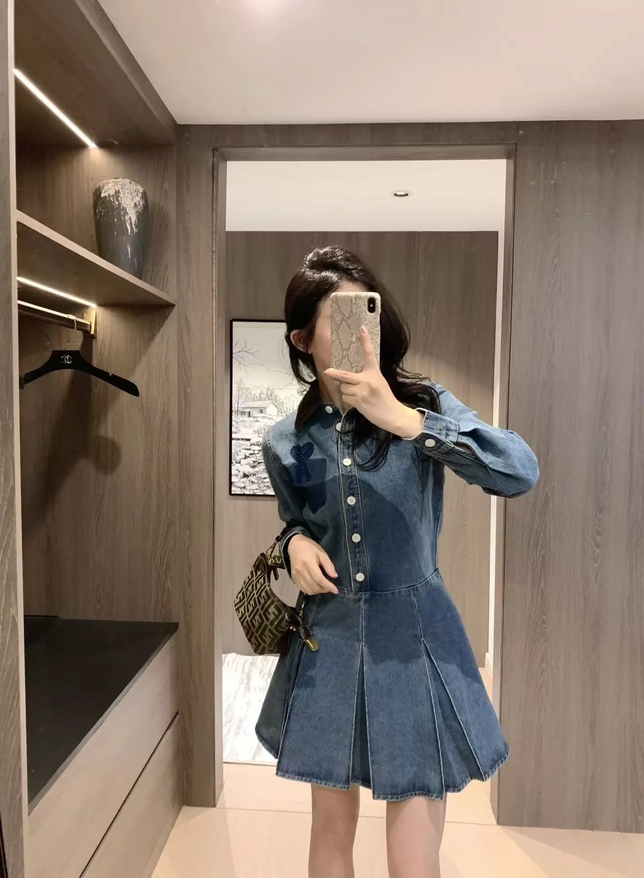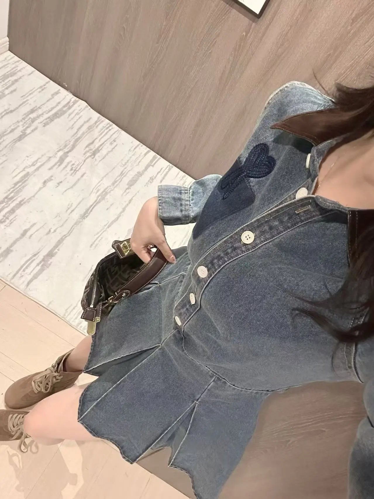 Home > Goods List AMI French Retro Denim Dress Heart Embroidery Shirt Style