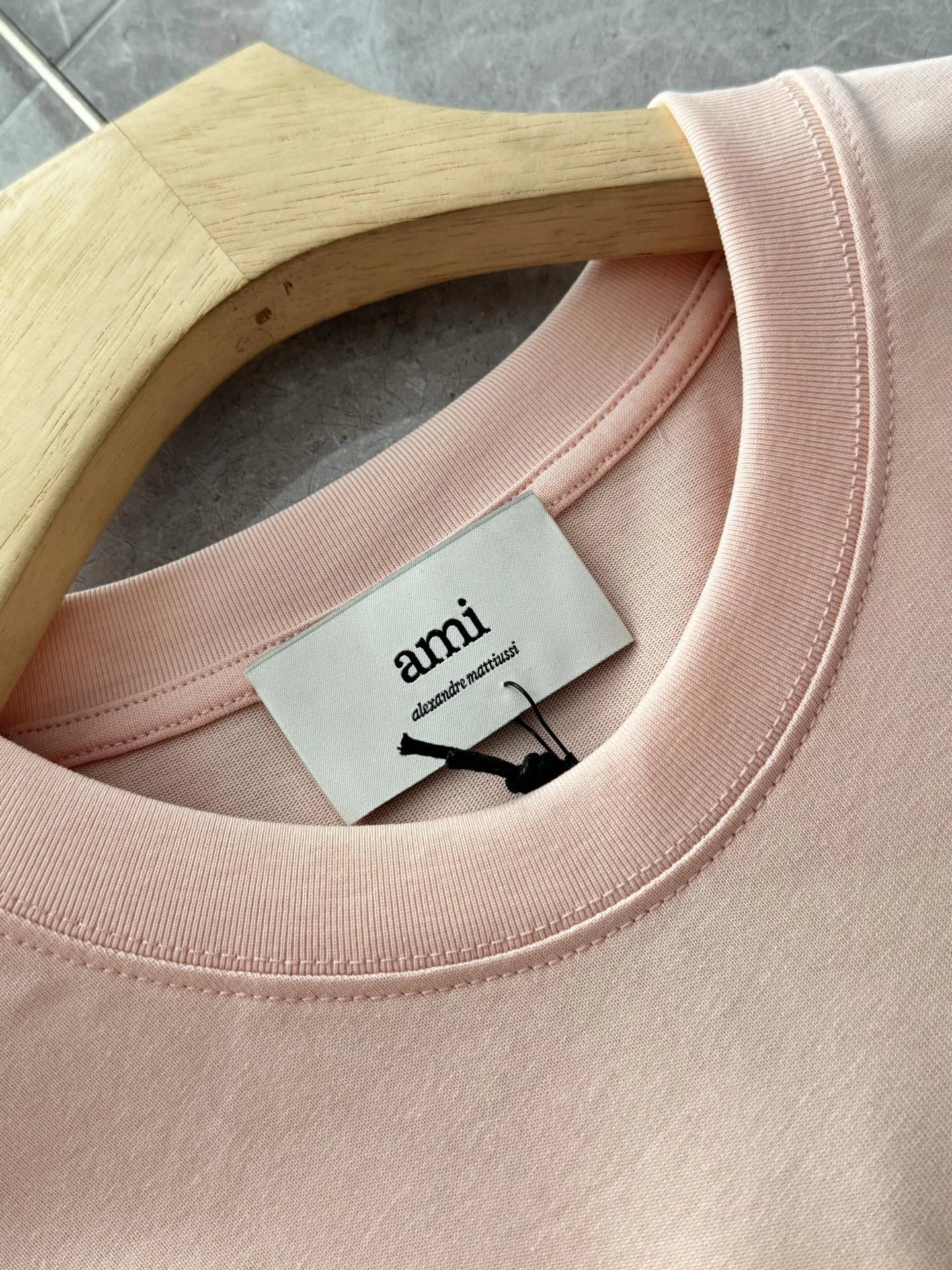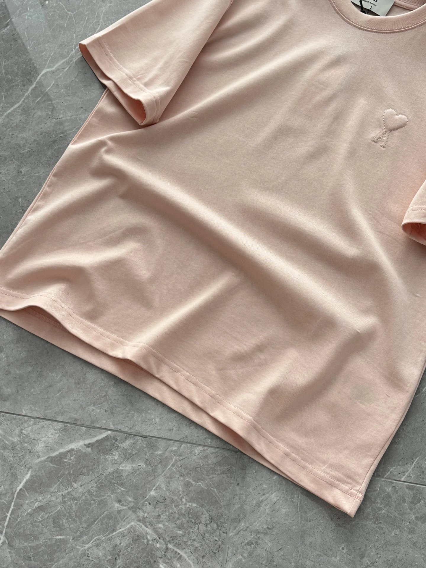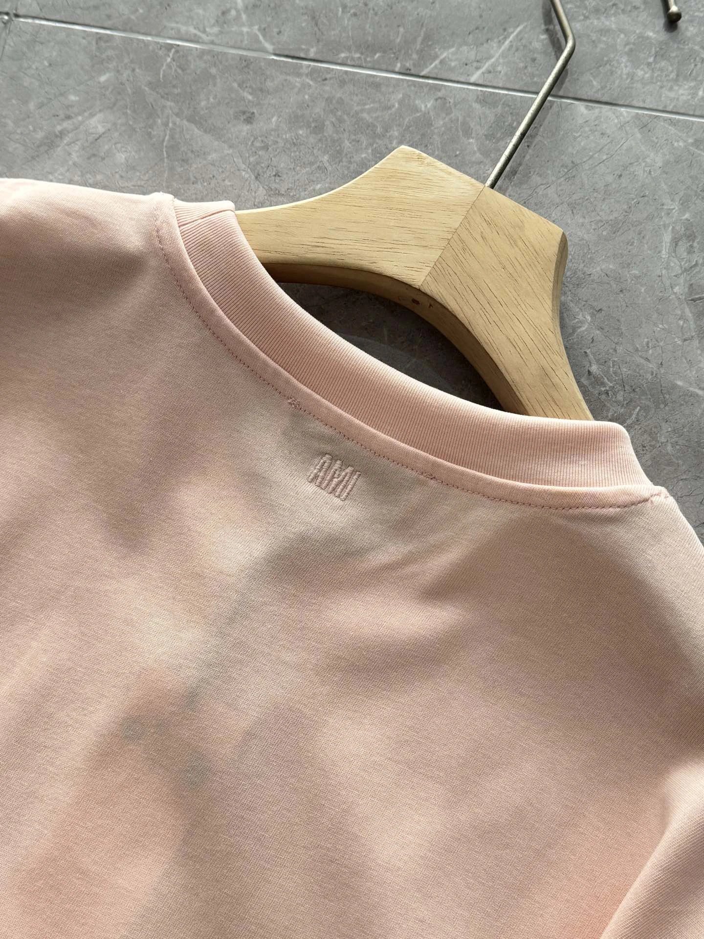 AMI 2026 New 3D ADC Pink Cotton T-Shirt features macaron color, 3D heart embossing, 240g custom cotton.
