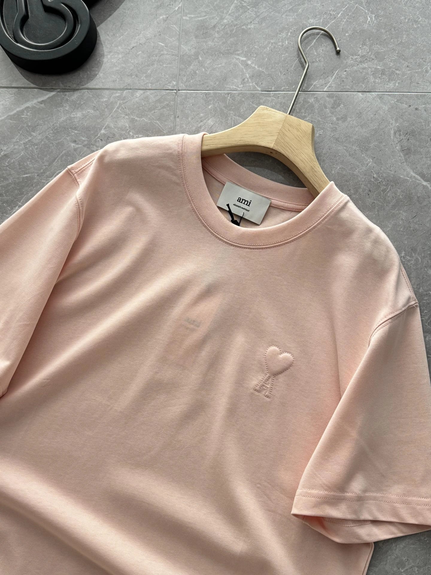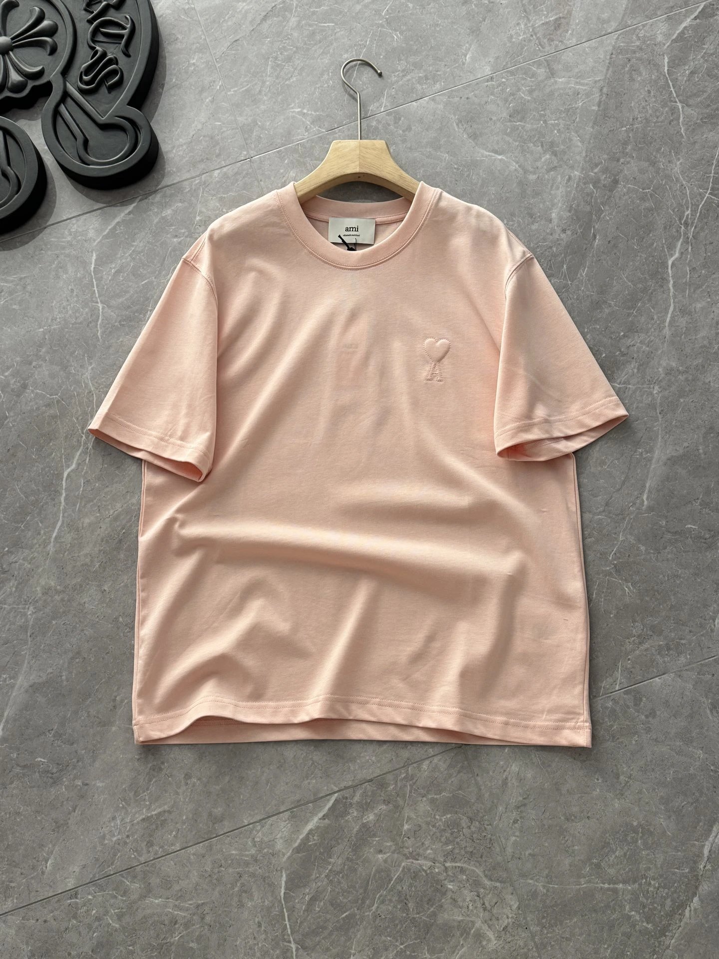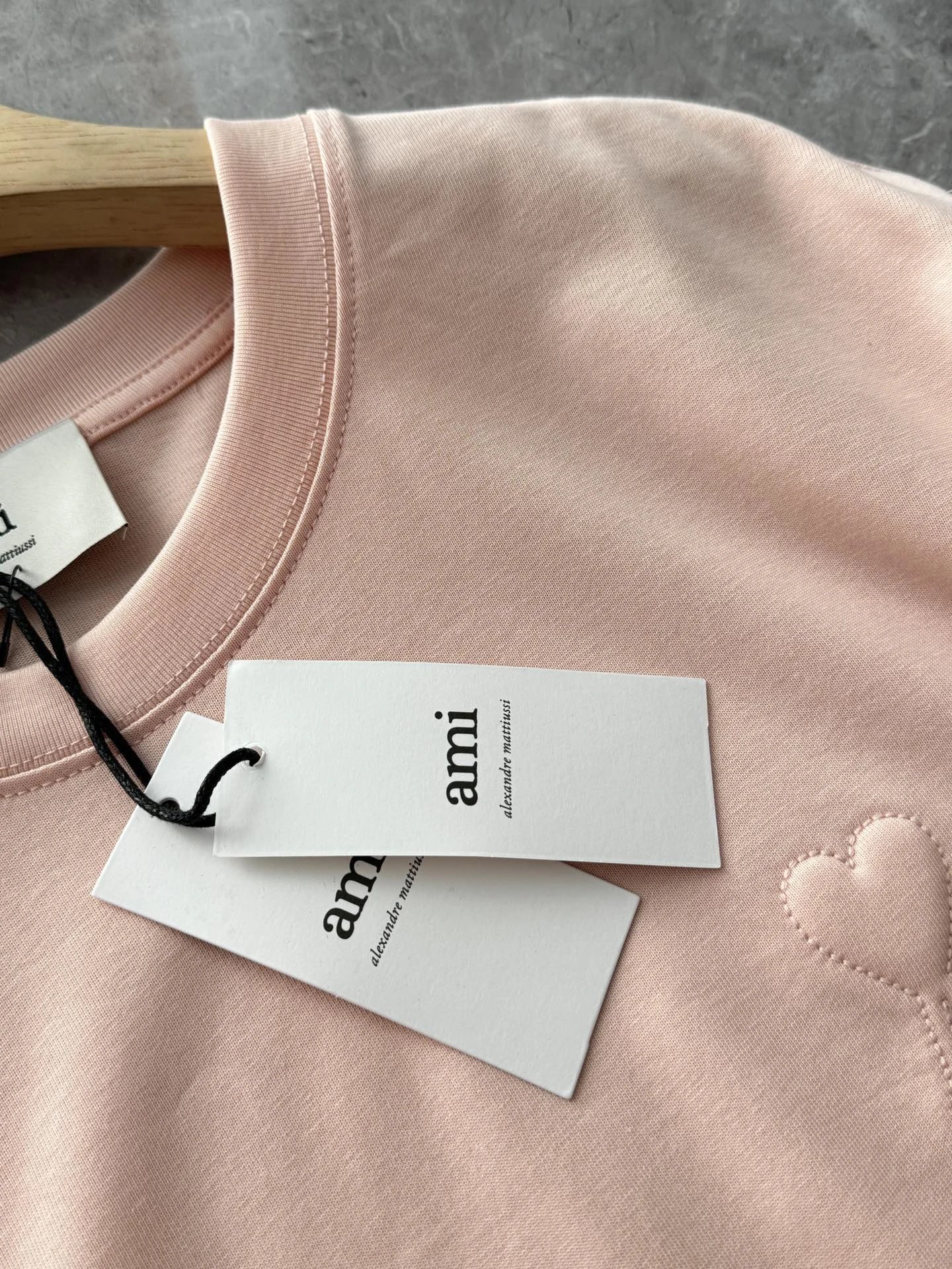 AMI 2026 New 3D ADC Pink Cotton T-Shirt features macaron color, 3D heart embossing, 240g custom cotton.