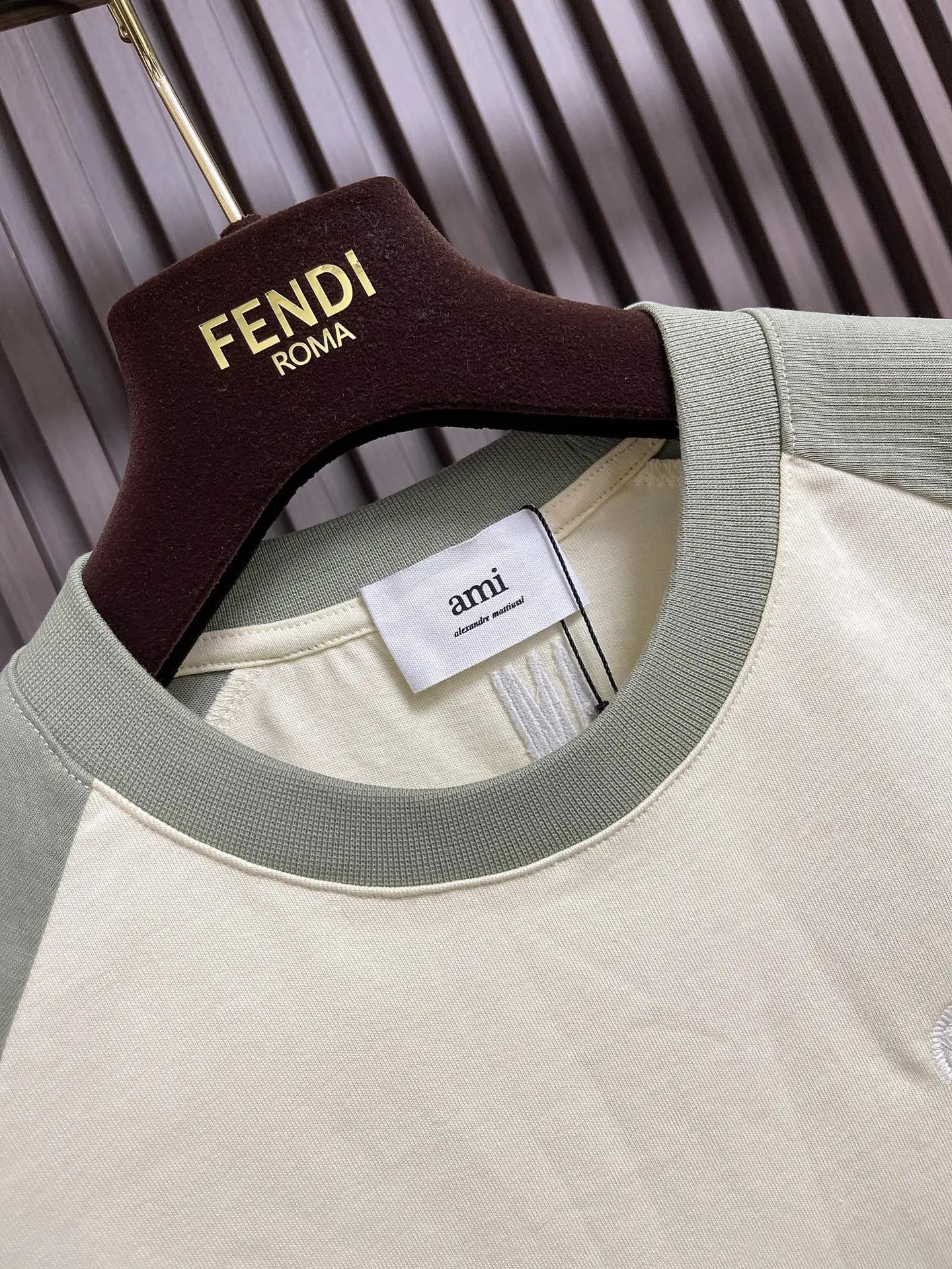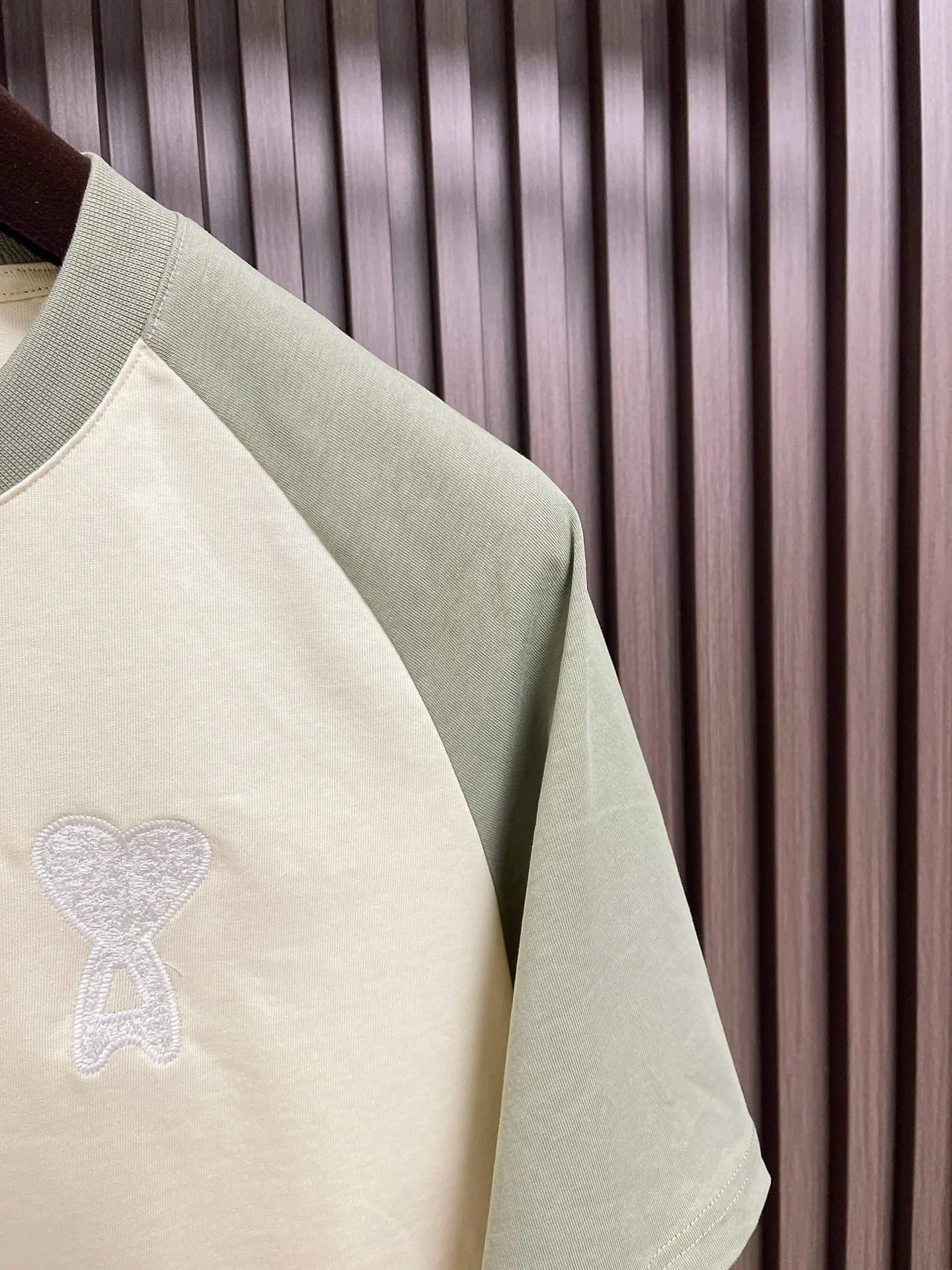 AMI 2026ss Embroidered Heart Short Sleeve T-Shirt uses 340G premium cotton, 100% pure for soft comfort.