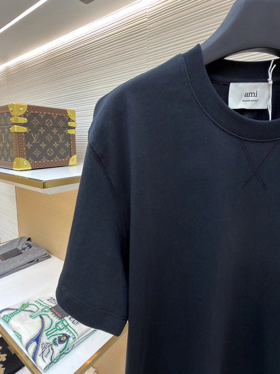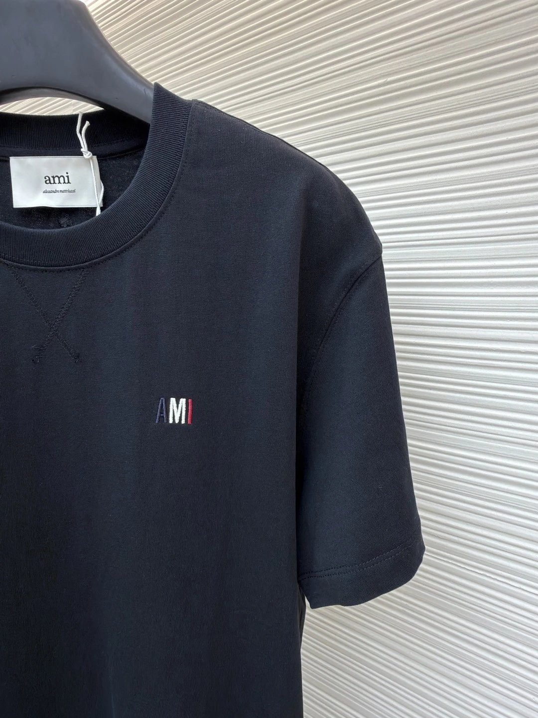 Precision embroidery: AMI capsule logo (chest) & ❤A (back) for brand recognition.