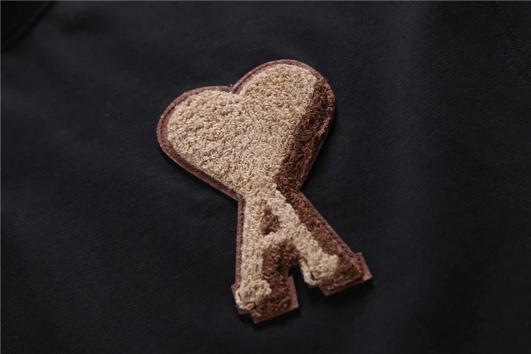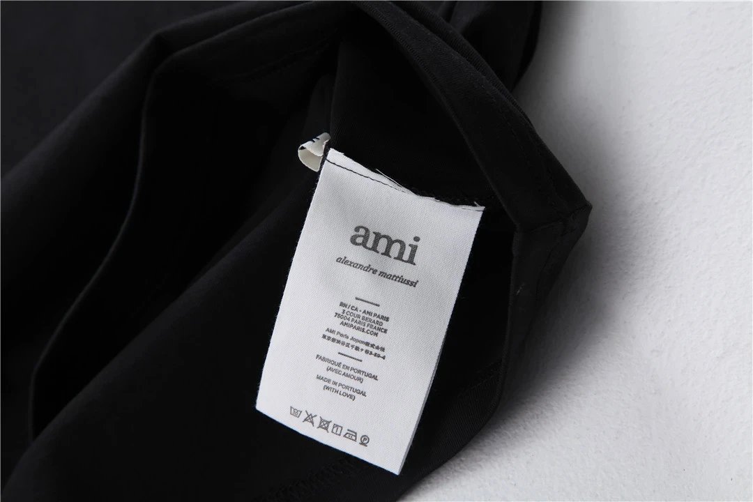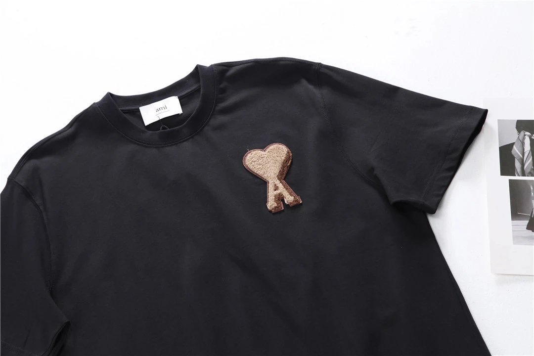 AMI 2026 new black gold series couple T-shirt: loose fit, 260g heavy cotton, gold towel embroidery, breathable & non-deformable.