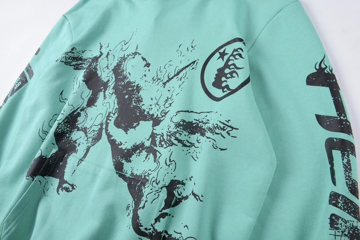 Hellstar 2023S Path to Paradise Hoodie - Green, 420g Cotton Fleece