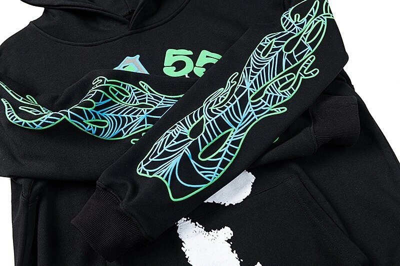 Sp5der sp63der Spider Web American Streetwear Hoodies are LOGAN same style with foam print, high street design.
