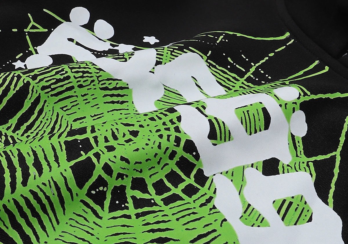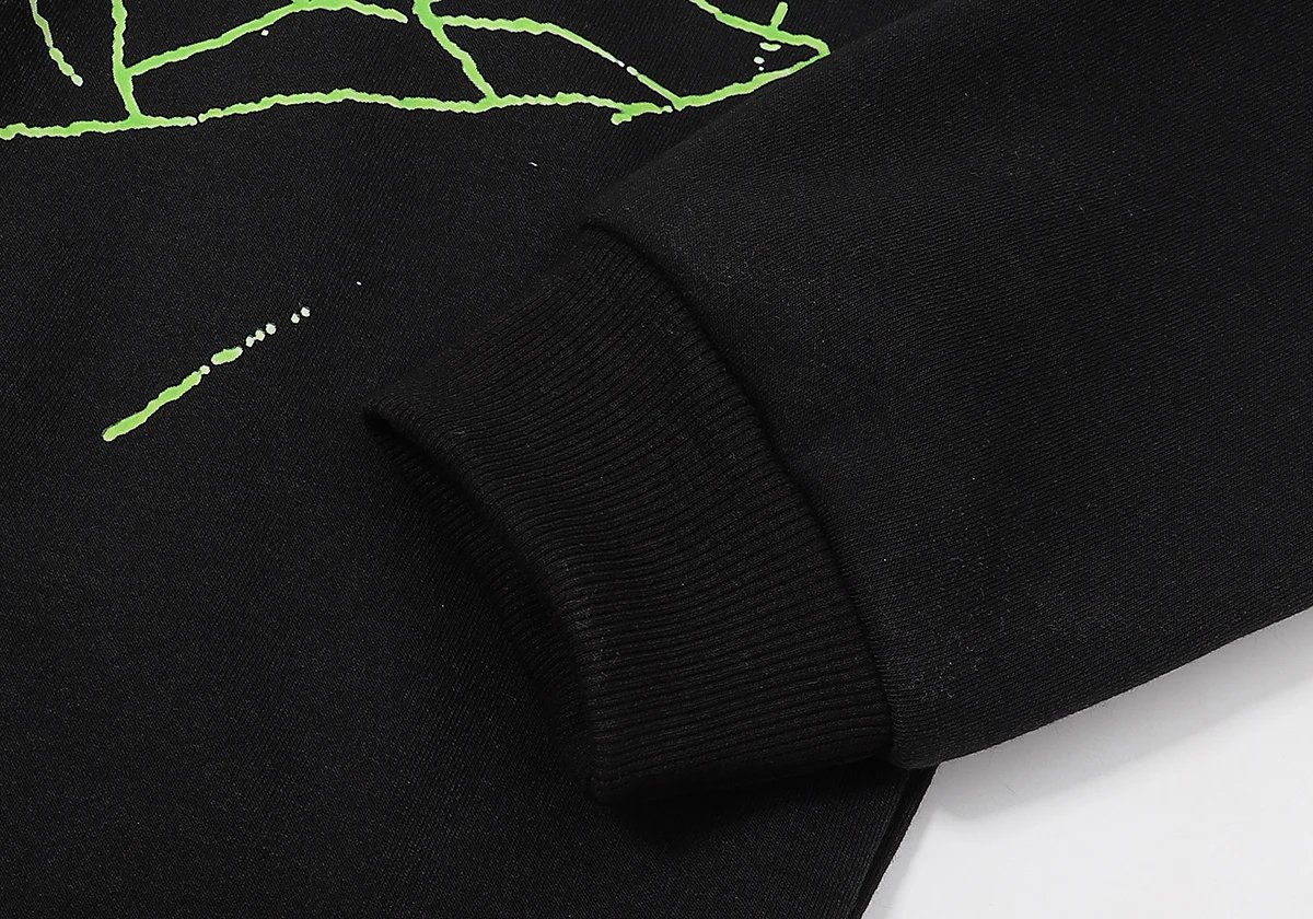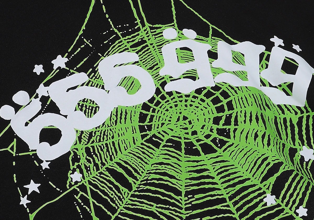 Sp5der Atlanta Fleece Hoodie features black spider print, ideal for street style.