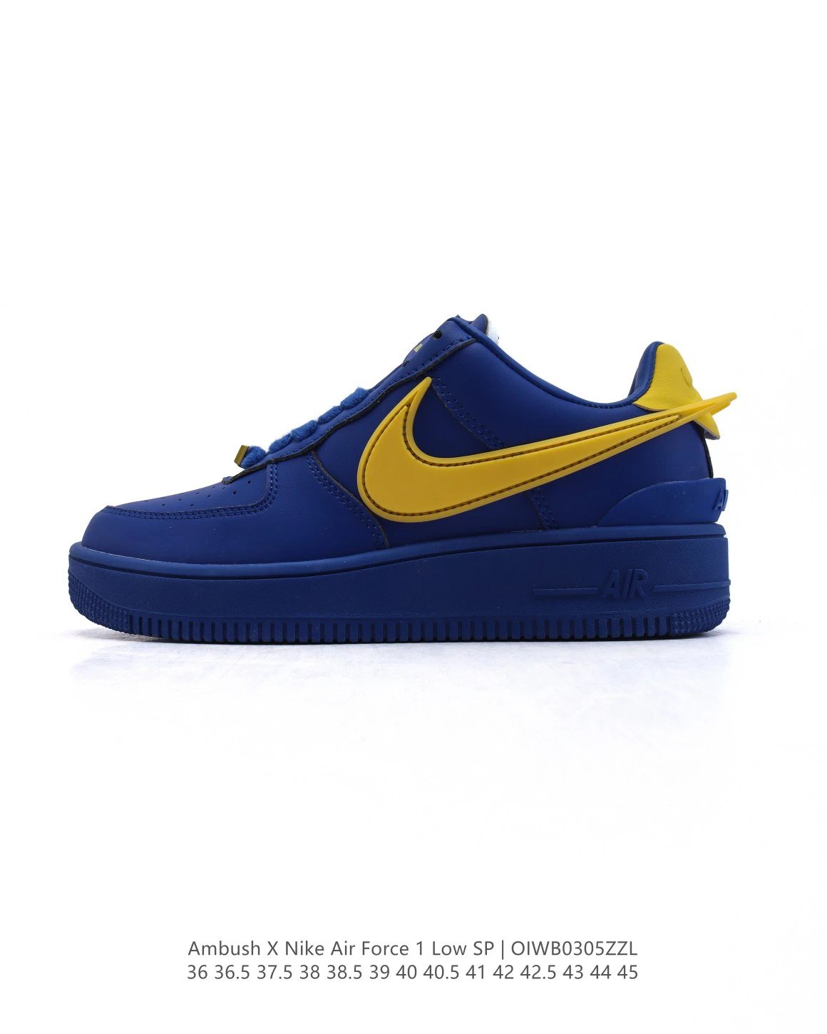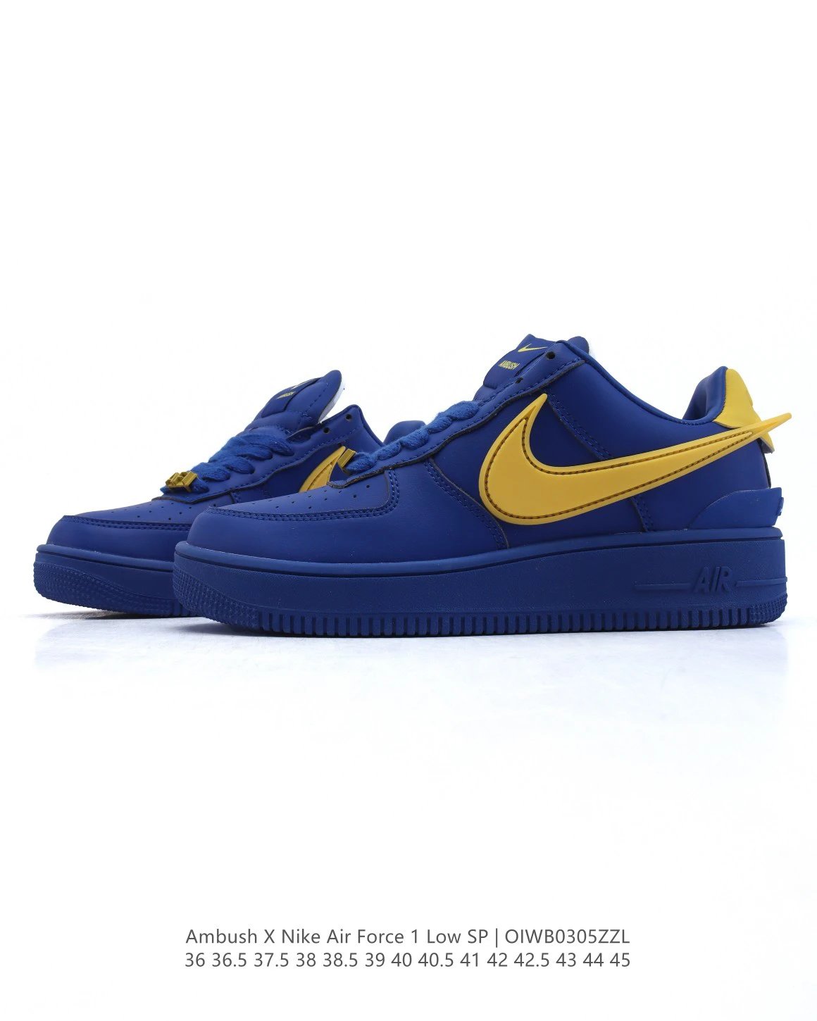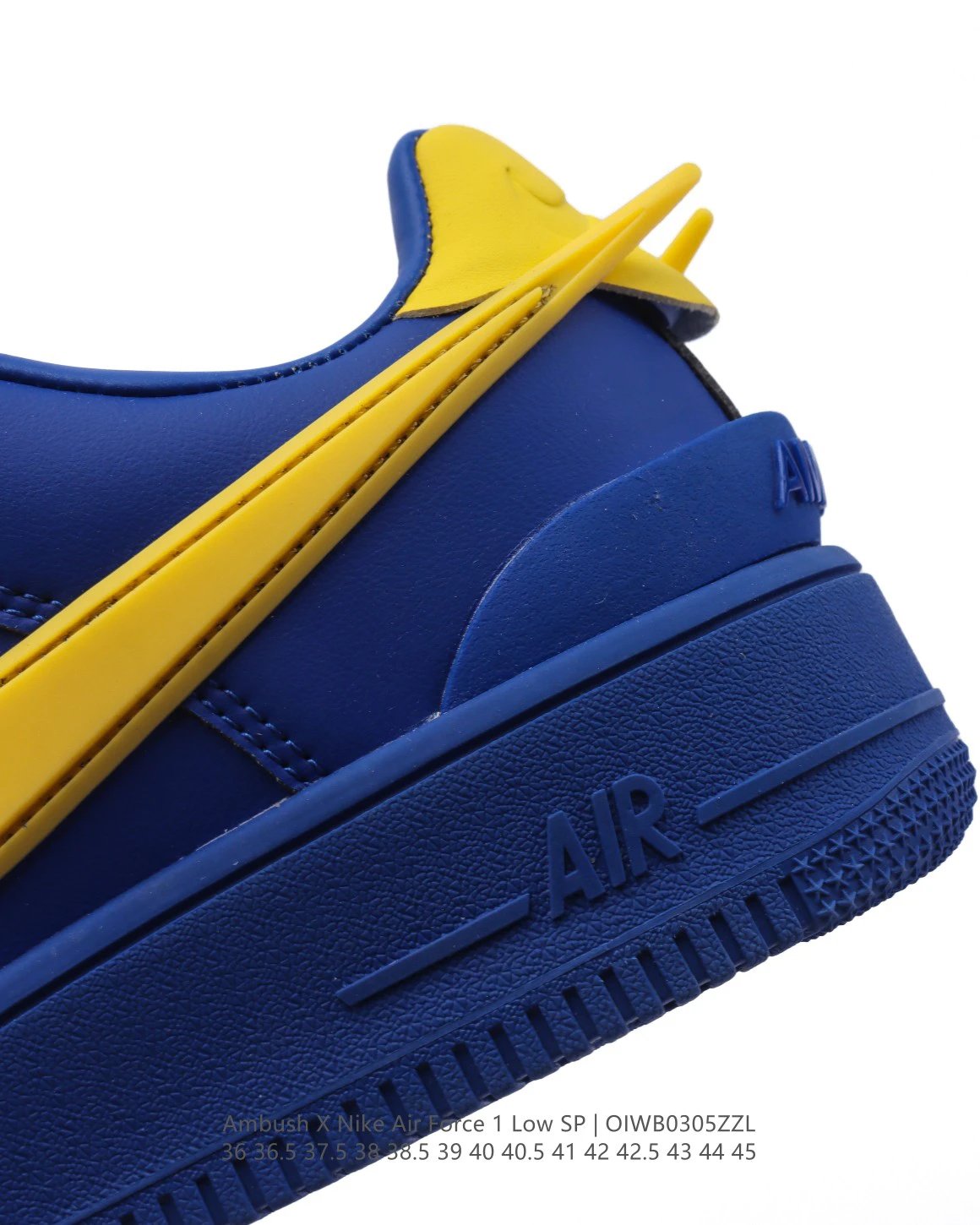 AMBUSH x Nike Air Force 1 Low SP sneakers feature premium leather, oversized Swoosh, special lace buckle, TPU heel with logo.