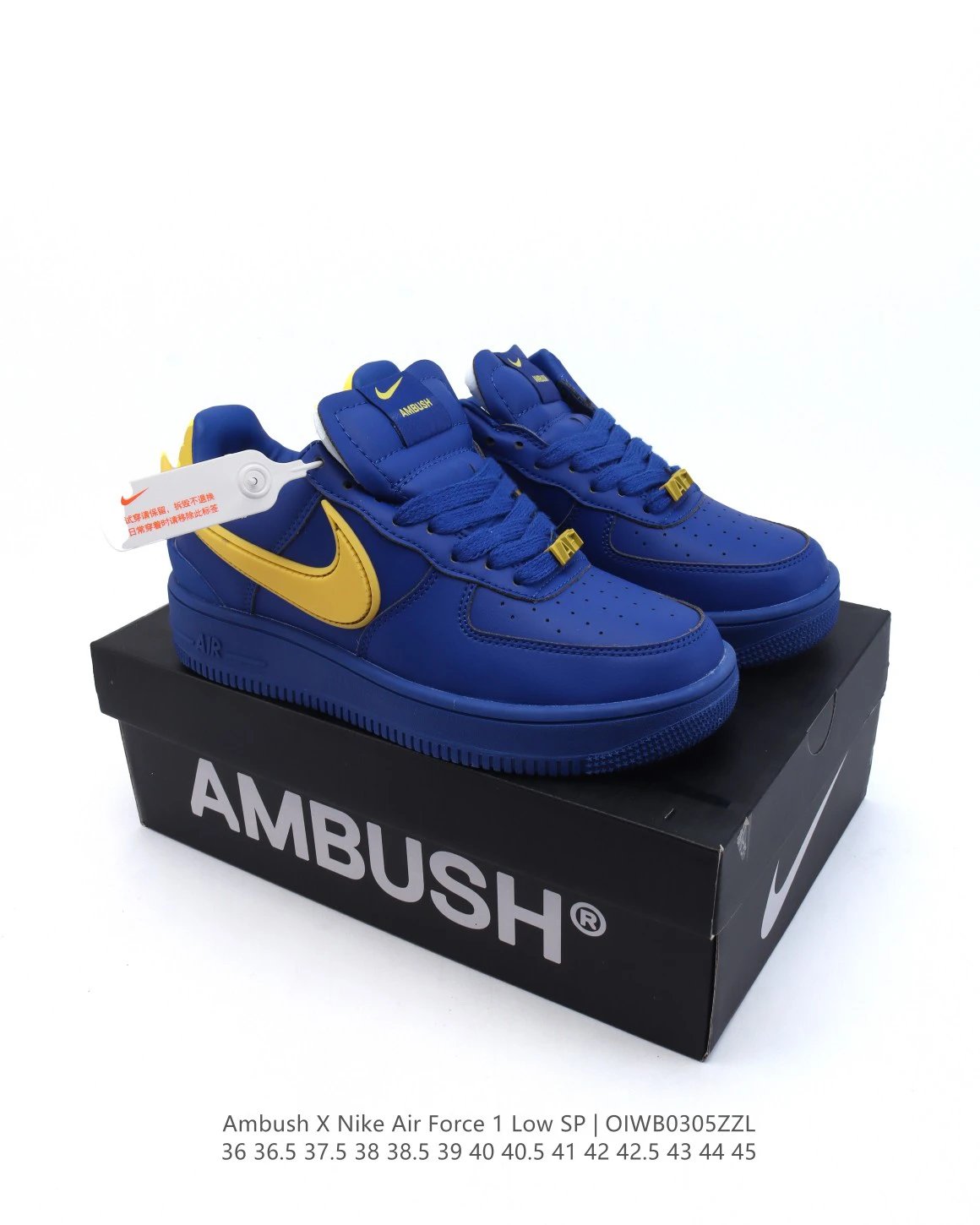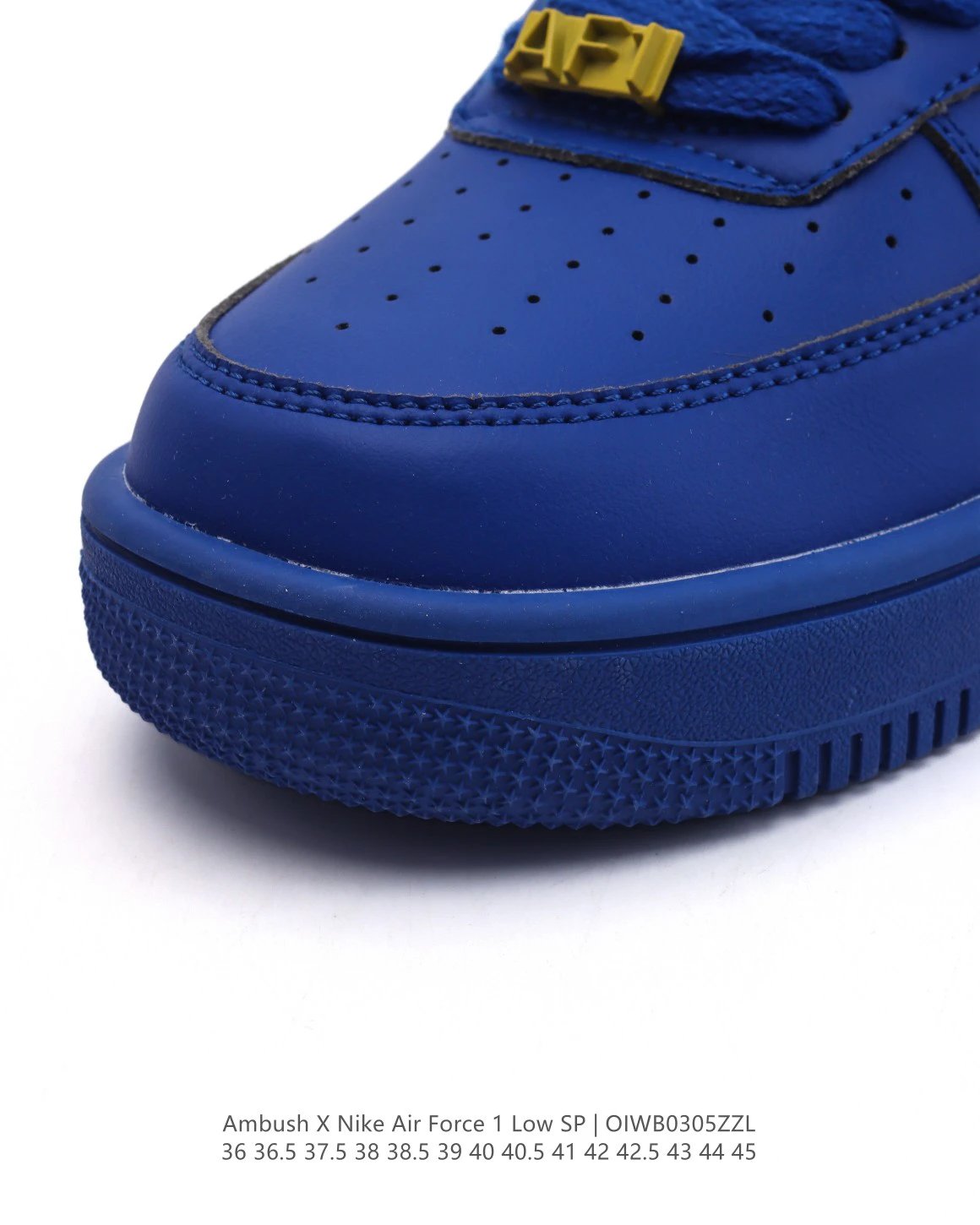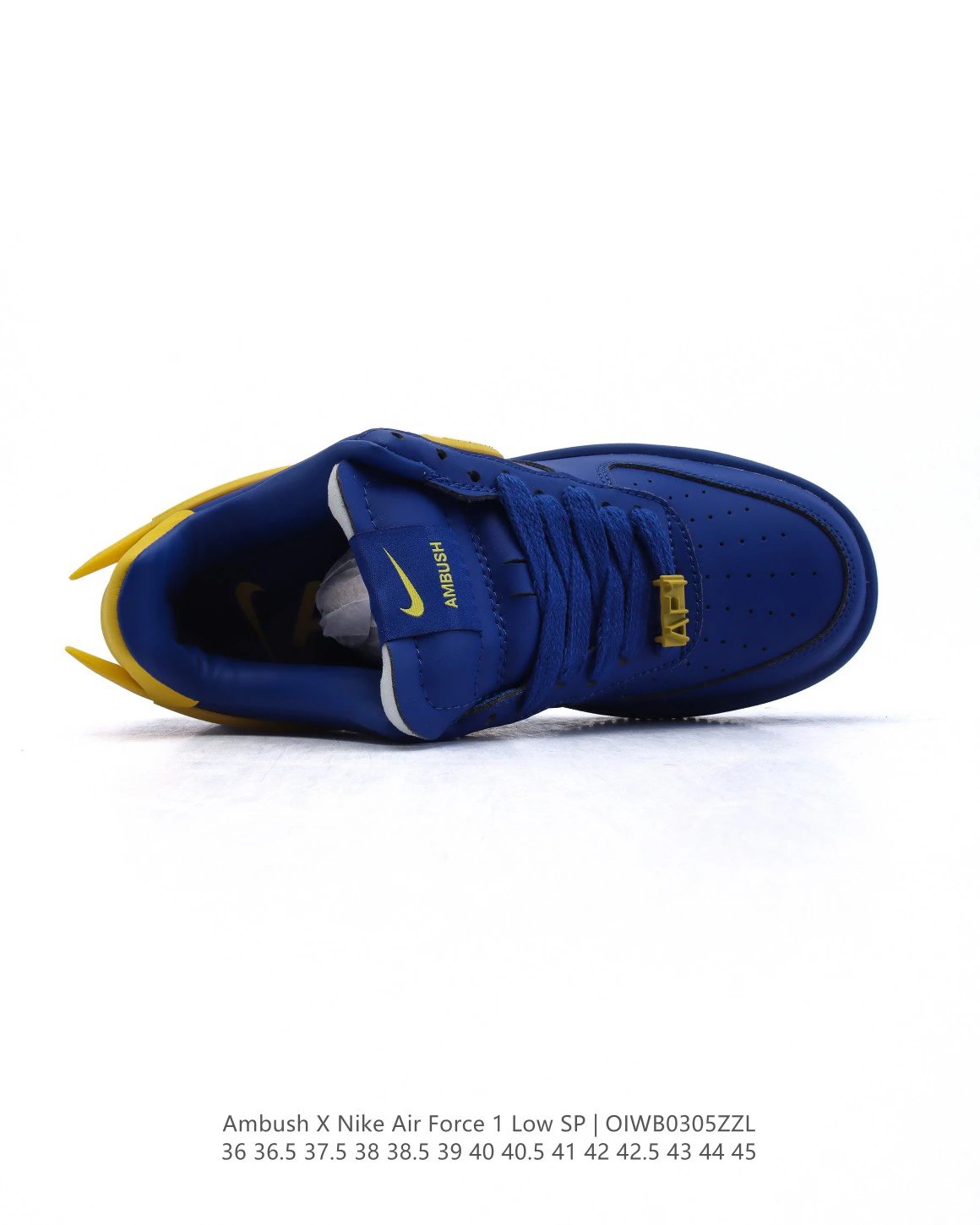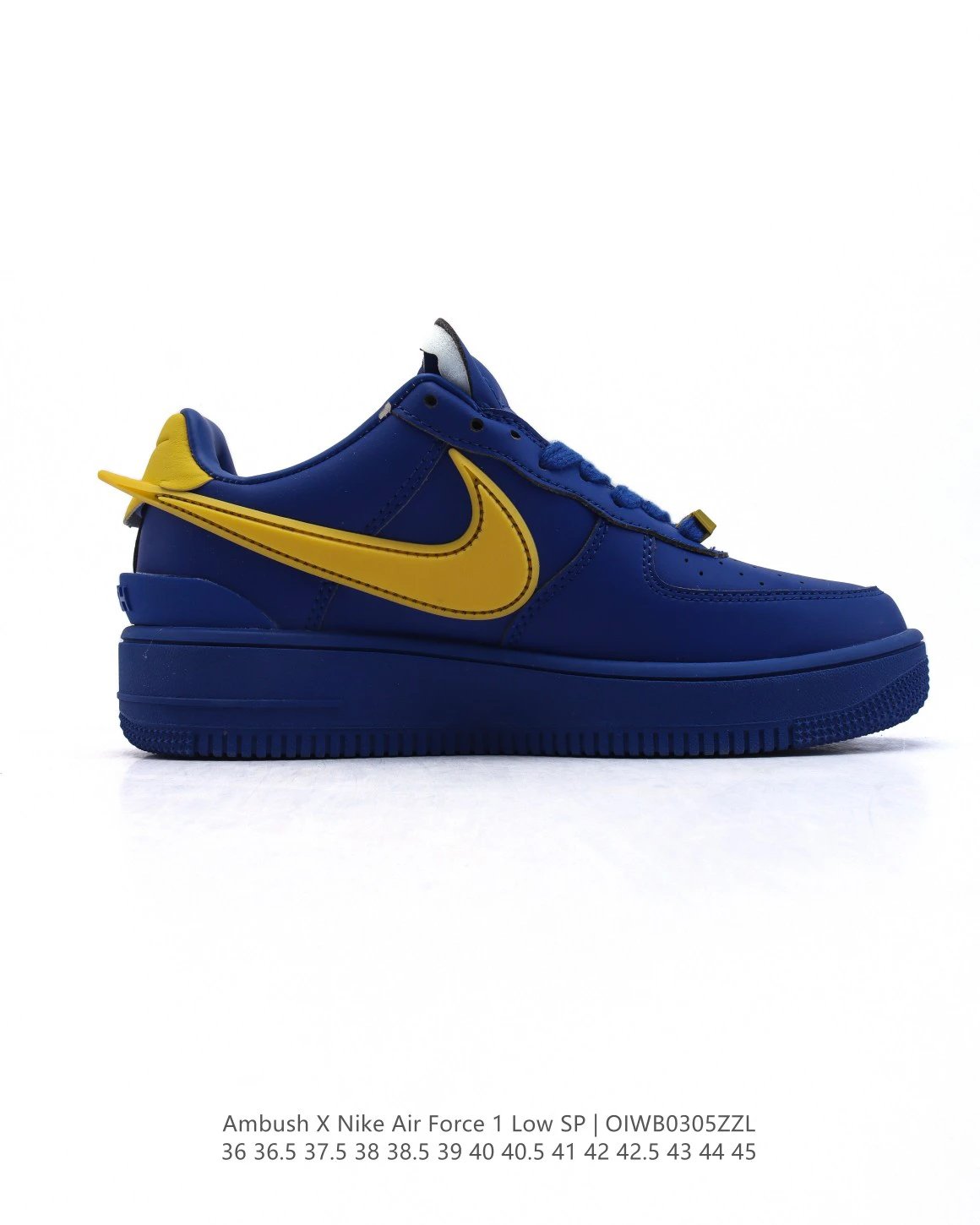 AMBUSH x Nike Air Force 1 Low SP sneakers feature premium leather, oversized Swoosh, special lace buckle, TPU heel with logo.