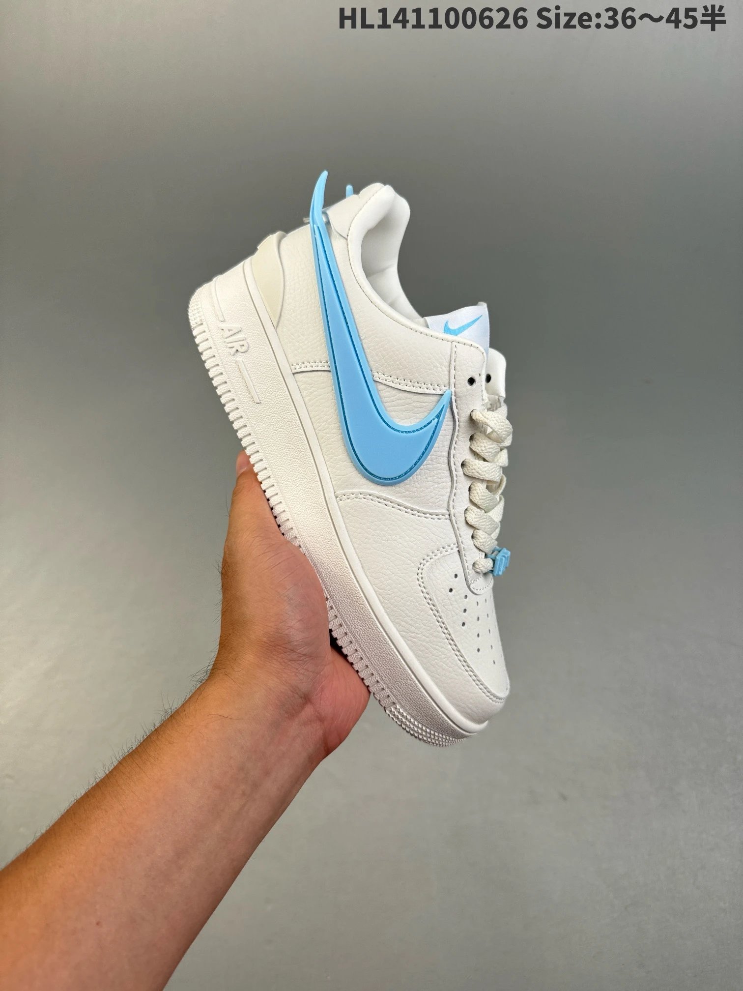 Upper & lining: solid leather; oversized Swoosh protrudes above shoe.