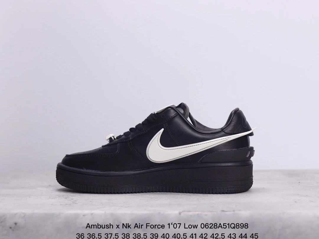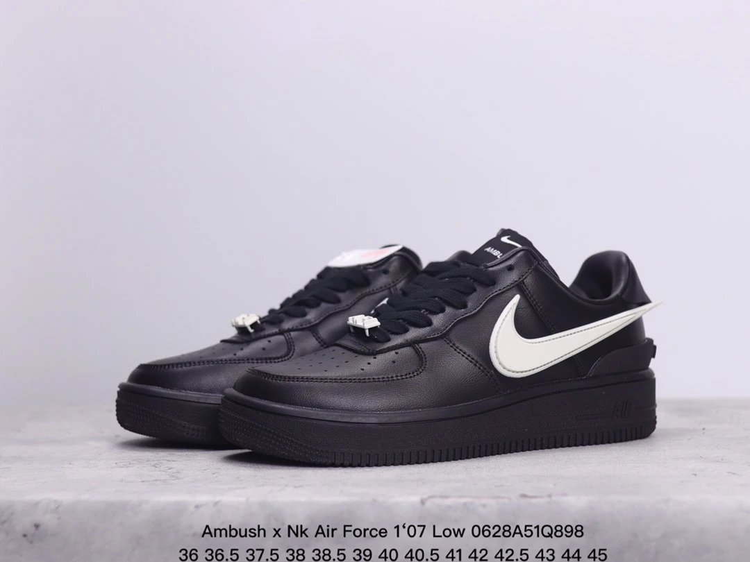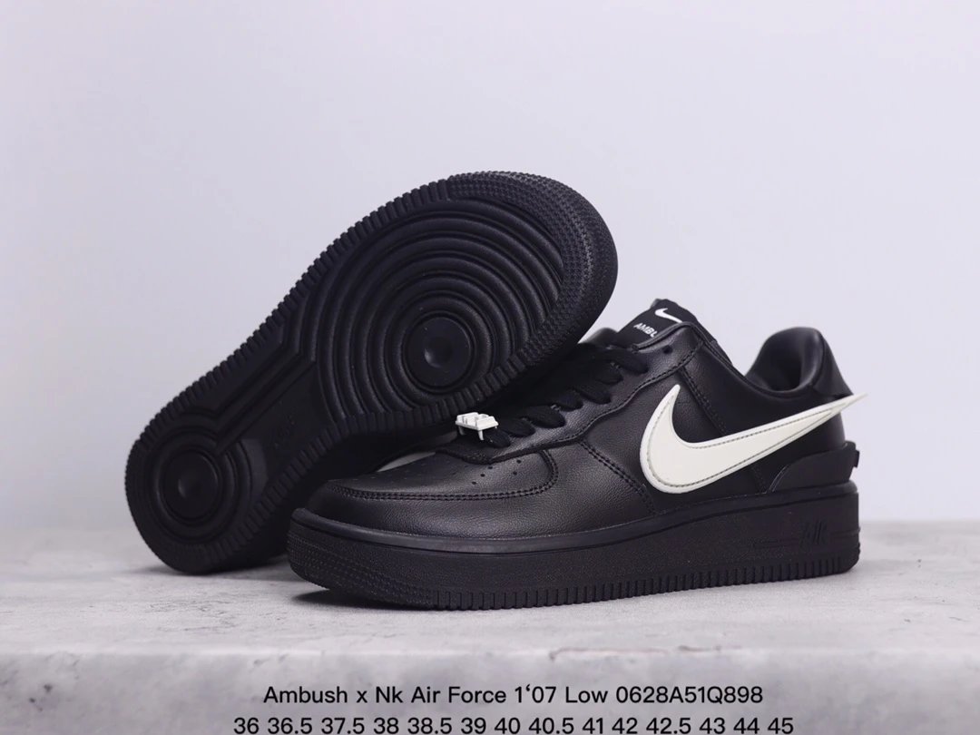 Ambush x Nike Air Force 1 '07 Low "Phantom" Collab SneakersUpper & lining use solid leather; oversized Swoosh protrudes from upper.Tongue tag has both logos, special lace buckle; heel TPU with AMBUSH text.Item No.: DV3464100; Sizes: 36,36.5,37.5,38,38.5,39,40,40.5,41,42,42.5,43,44,45