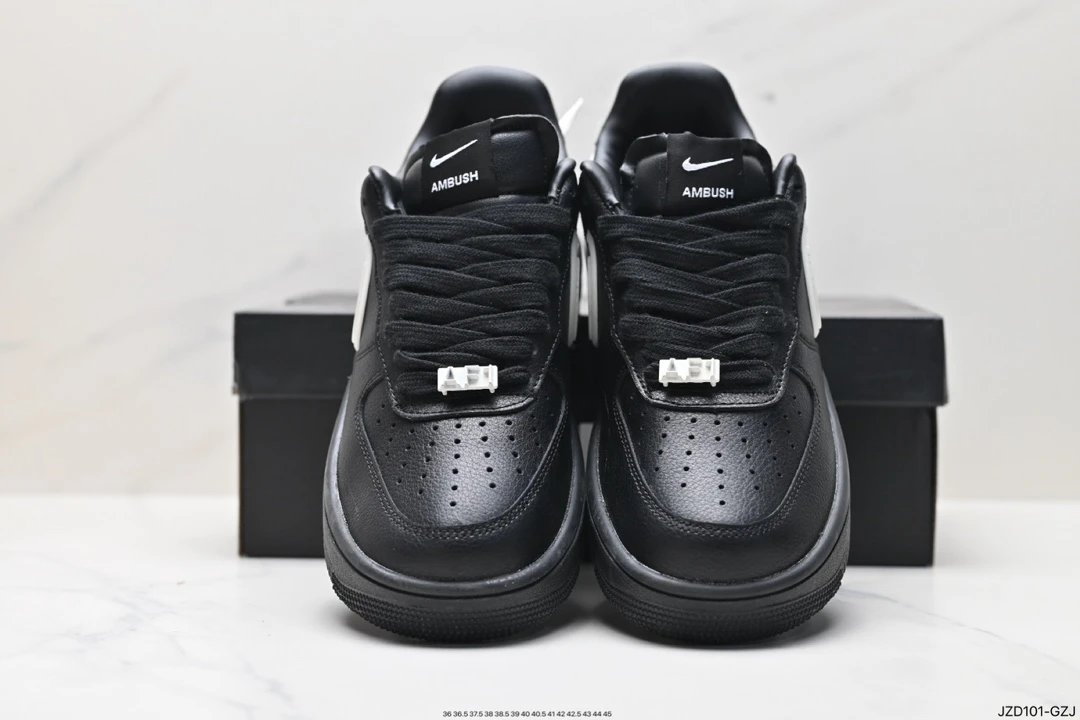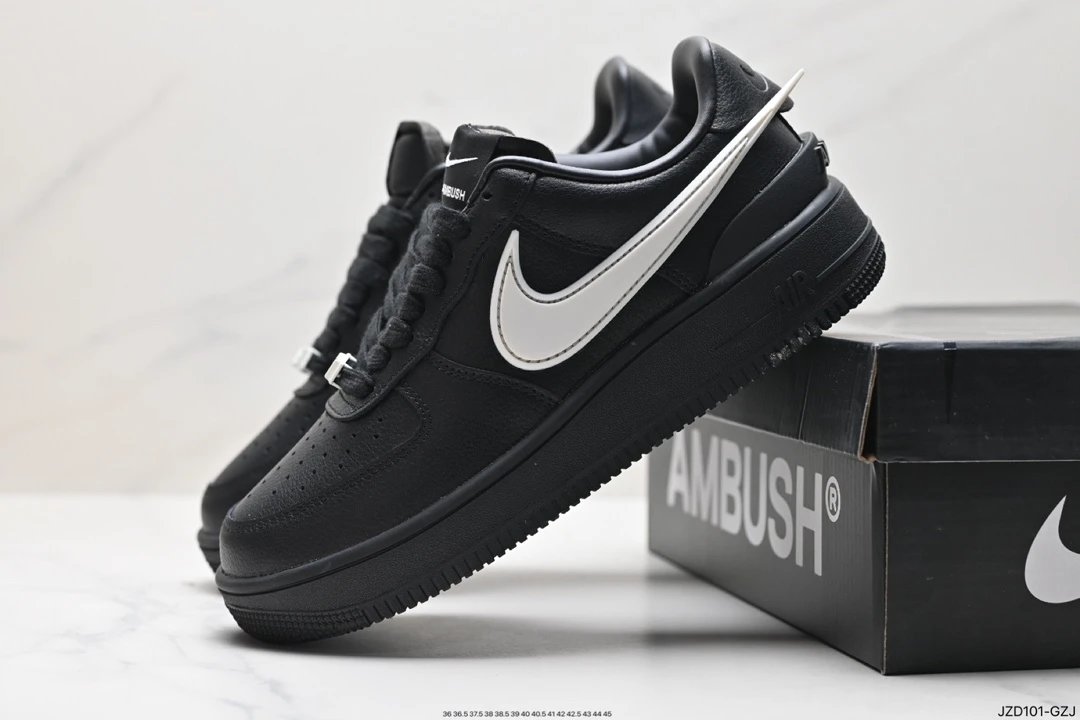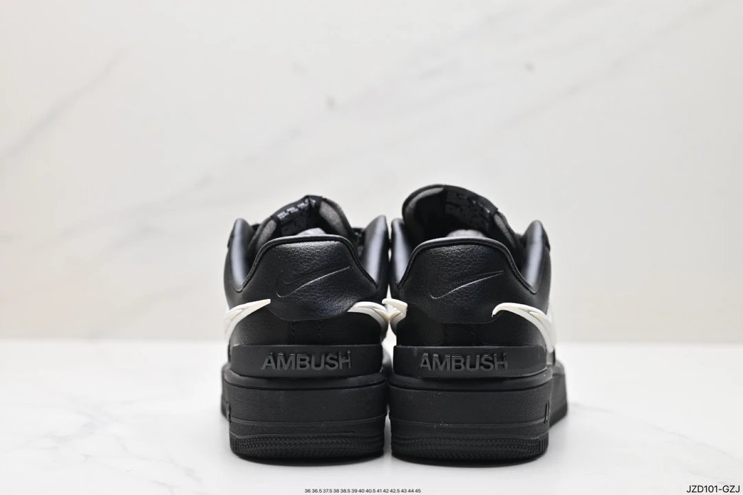 AMBUSH x Nike Air Force 1 '07 Low "Phantom" Casual Sneakers use solid leather upper/lining, oversized Swoosh, dual-logo tongue tag, special lace lock, TPU heel with AMBUSH branding.Sizes: 36, 36.5, 37.5, 38, 38.5, 39, 40, 40.5, 41, 42, 42.5, 43, 44, 45