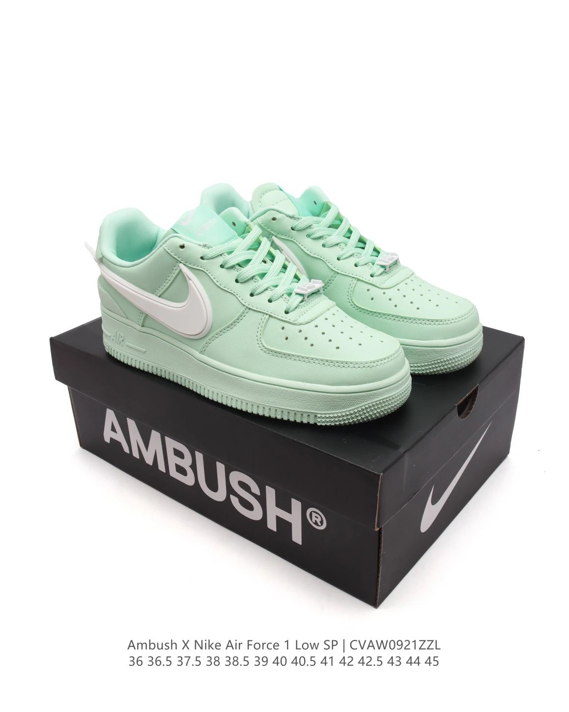 AMBUSH x Nike Air Force 1 07 Low SP Unisex Sneakers: leather upper, oversized Swoosh, special lace buckle, TPU heel with AMBUSH logo, soft cushioning.