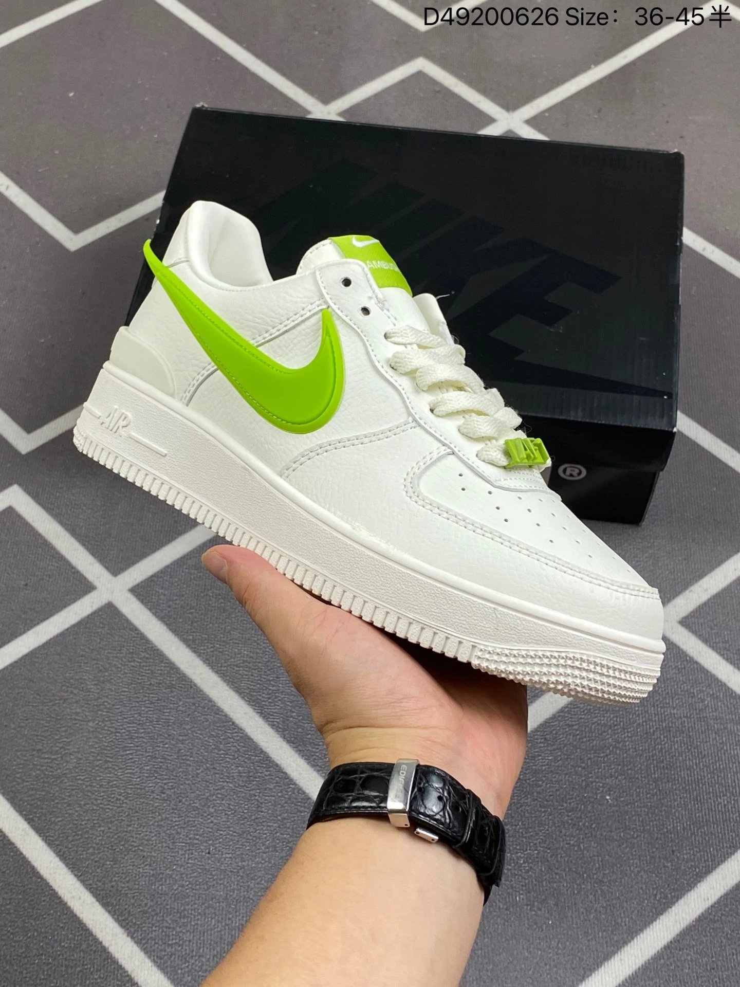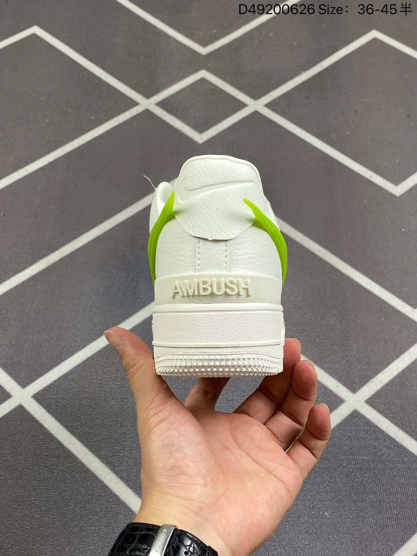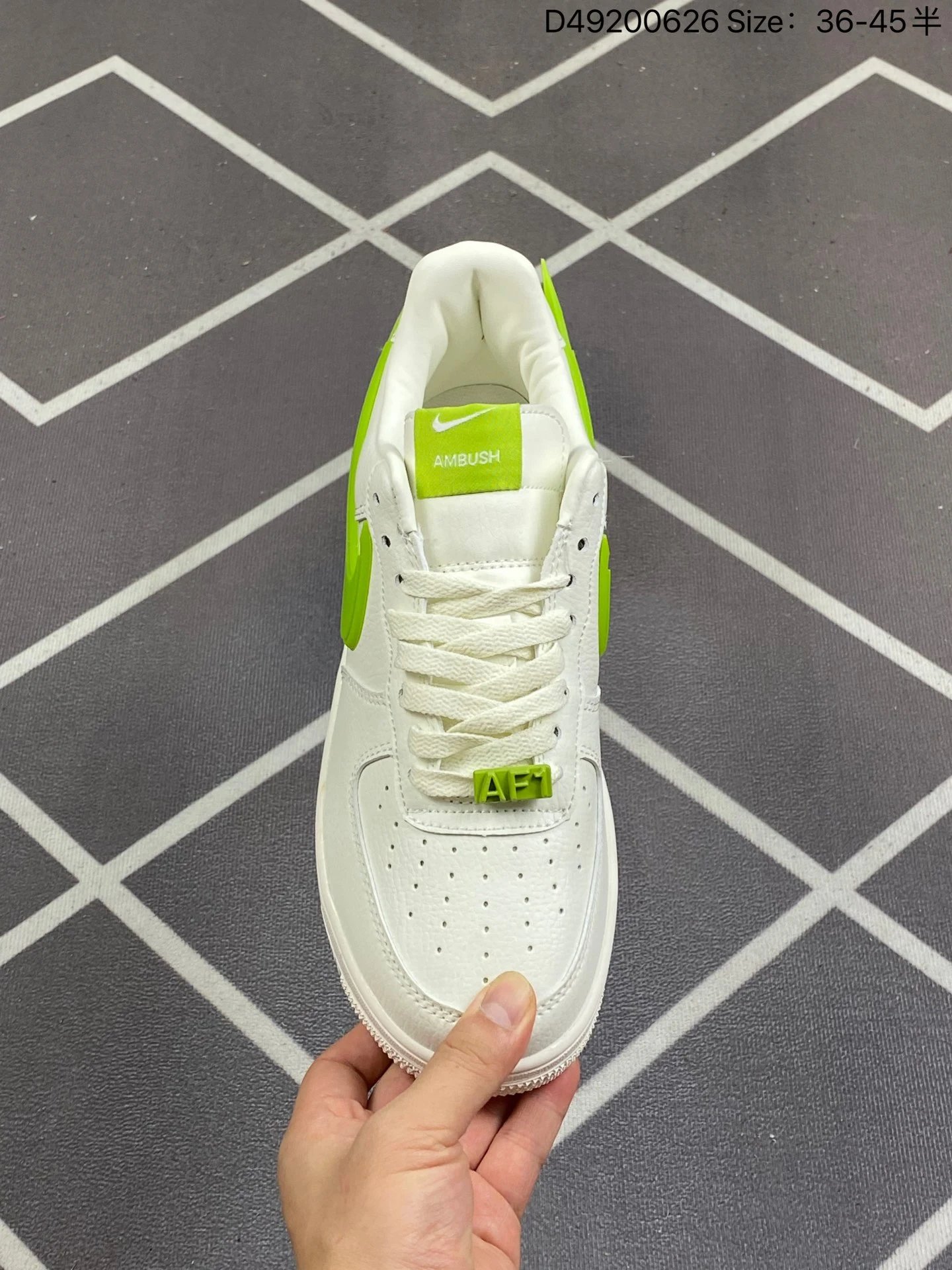 AMBUSH x Nike Air Force 1 '07 Low Phantom sneakers feature solid leather upper & lining, oversized Swoosh, dual-logo tongue tag, and special lace lock.Available sizes: 36, 36.5, 37.5, 38, 38.5, 39, 40, 40.5, 41, 42, 42.5, 43, 44, 44.5, 45