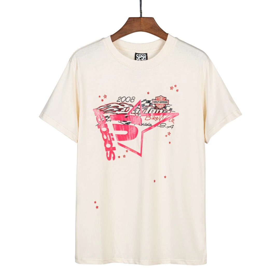 Sp5der Spider Web Print Street T-Shirts are available in Black, White, and Beige. Sizes: S, M, L, XL.