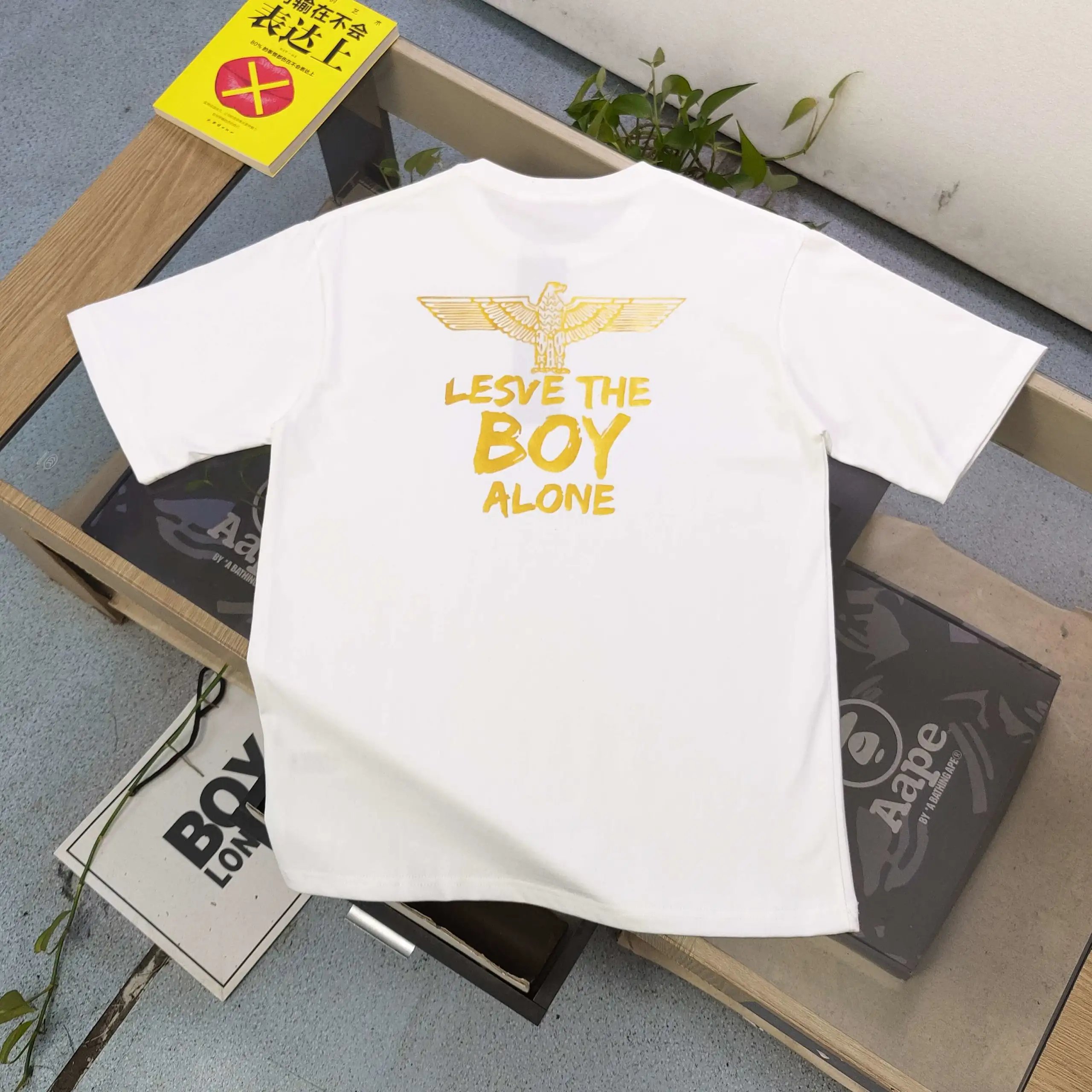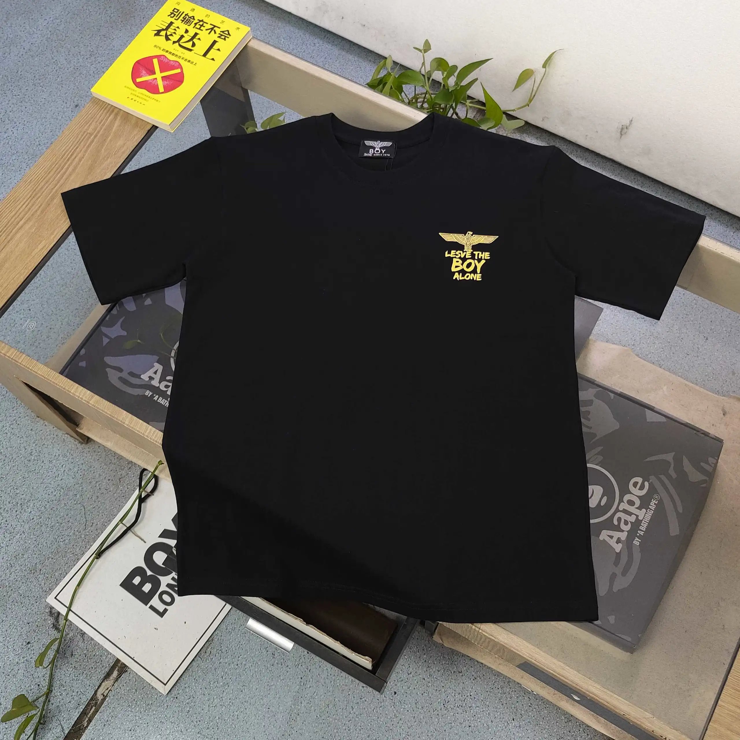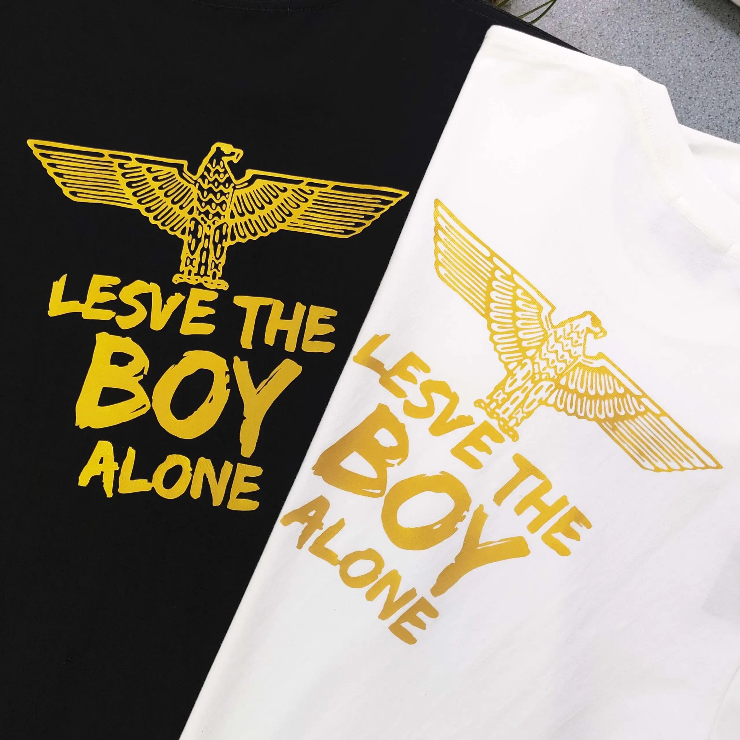 Boy London 2025 New Unisex Cotton T-Shirt with gold foil eagle wing & punk logo print.