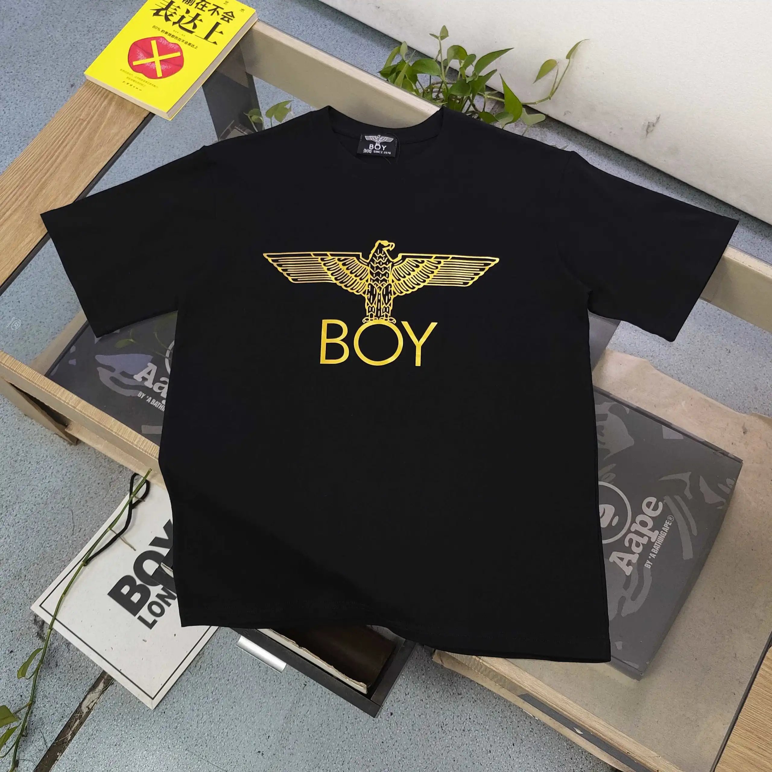Boy London 2025 Unisex T-Shirt has gold foil eagle punk logo, 250g cotton, stable non-cracking print, breathable & skin-friendly.