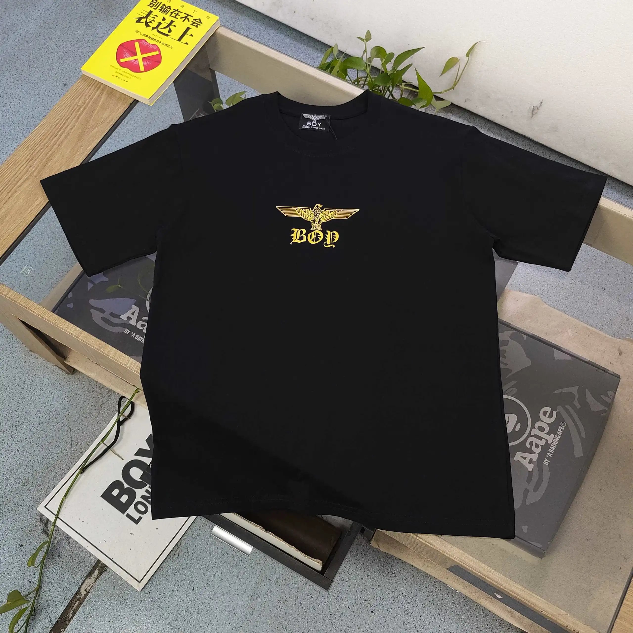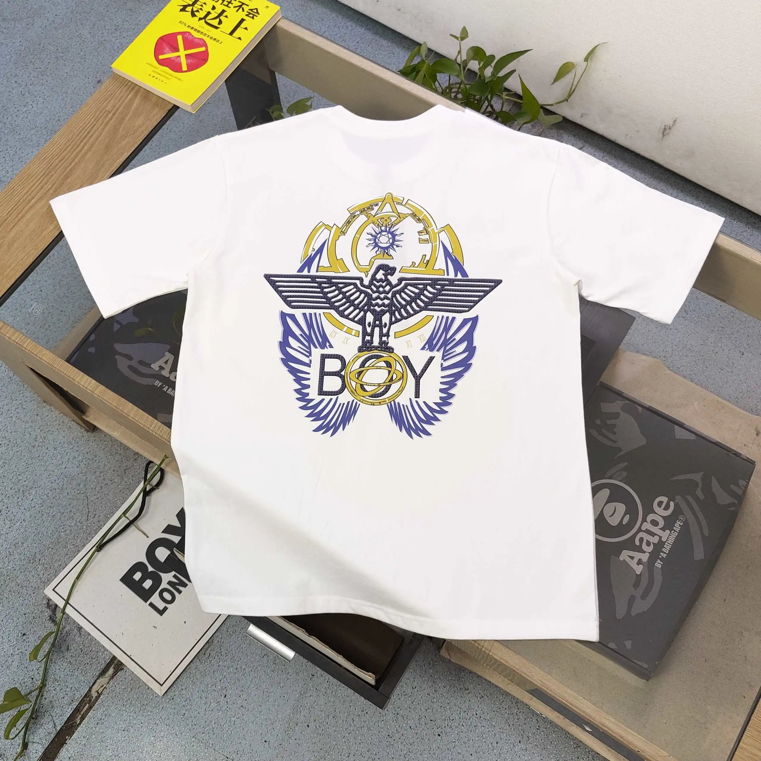 Boy London 2025 new unisex T-shirt: gold foil eagle wing punk logo, 250g cotton (soft, breathable).