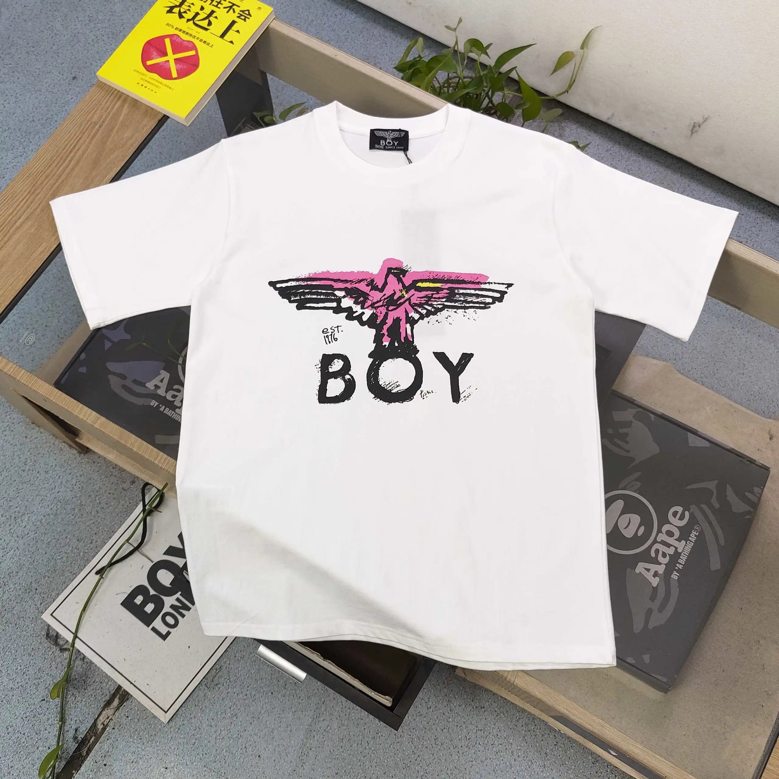 Boy London 2025 New Unisex T-Shirts with pink eagle wing logo & letter print, casual short-sleeve.