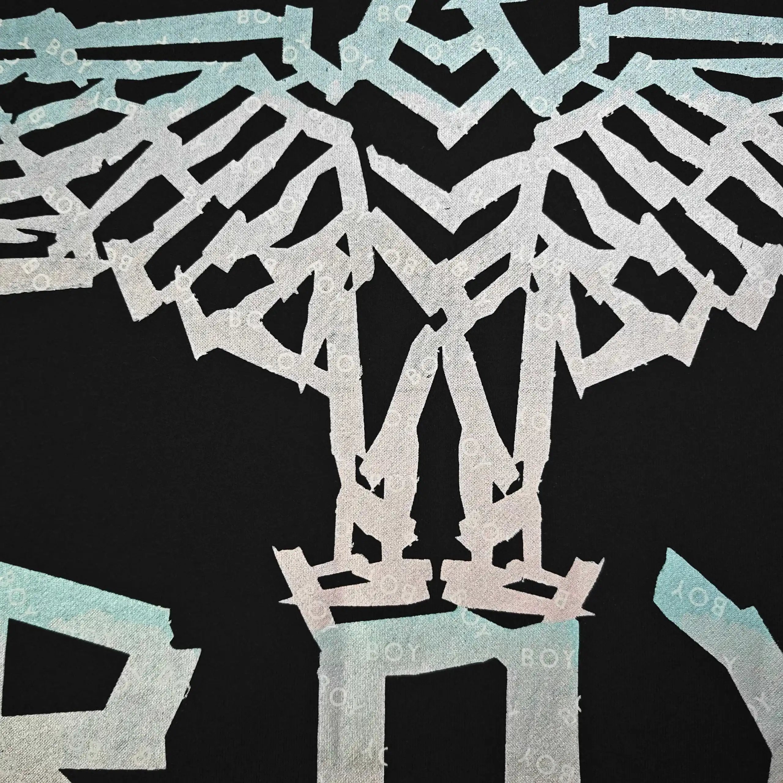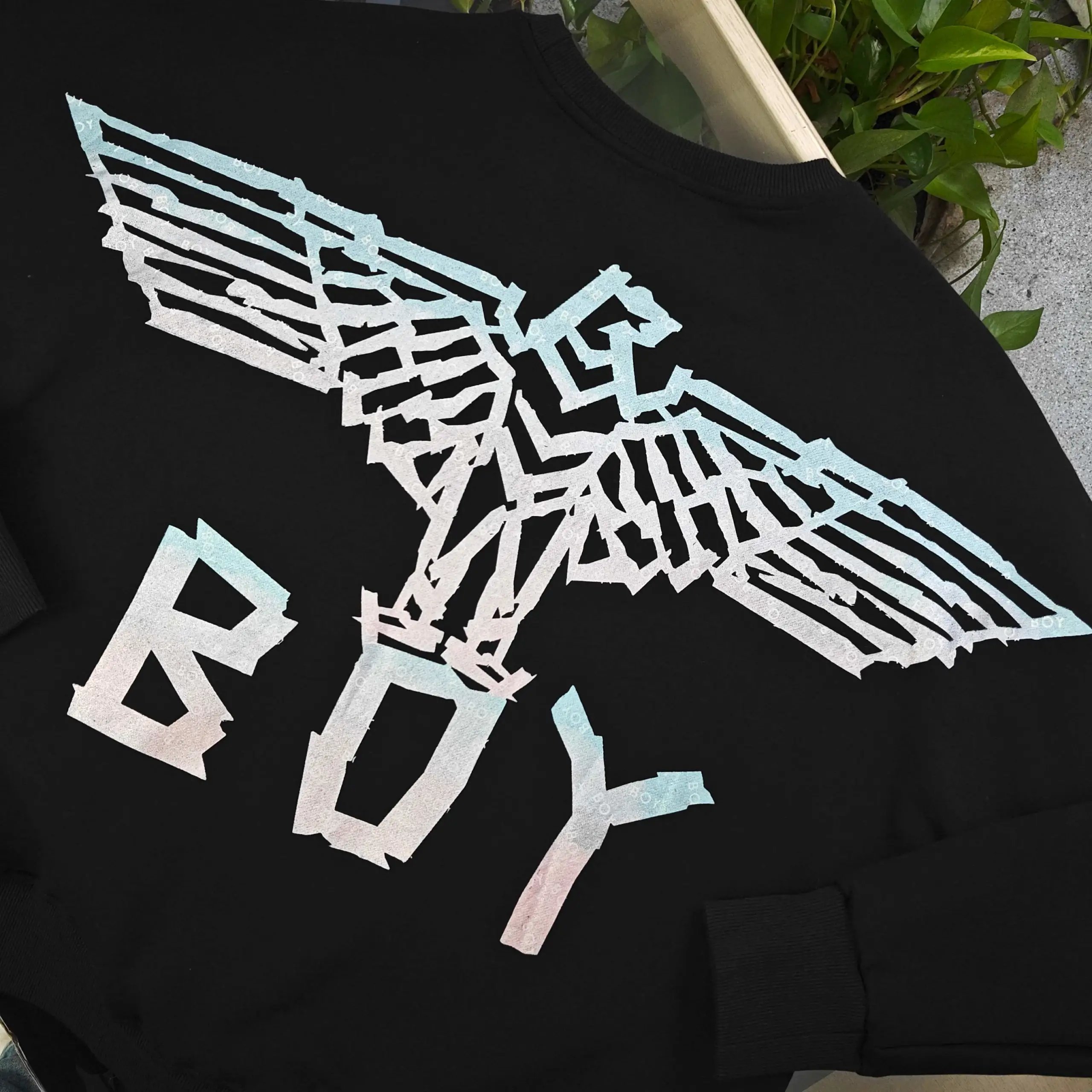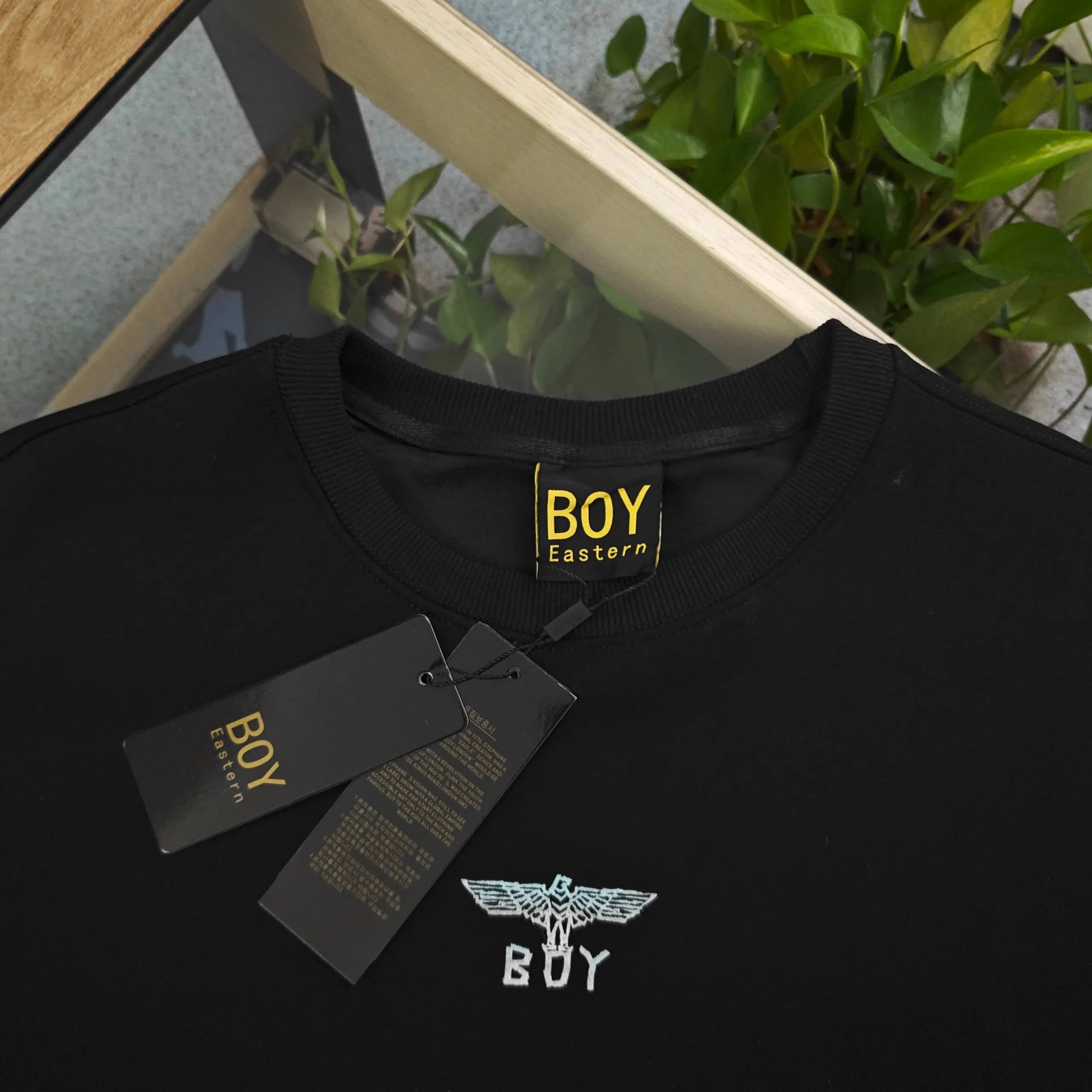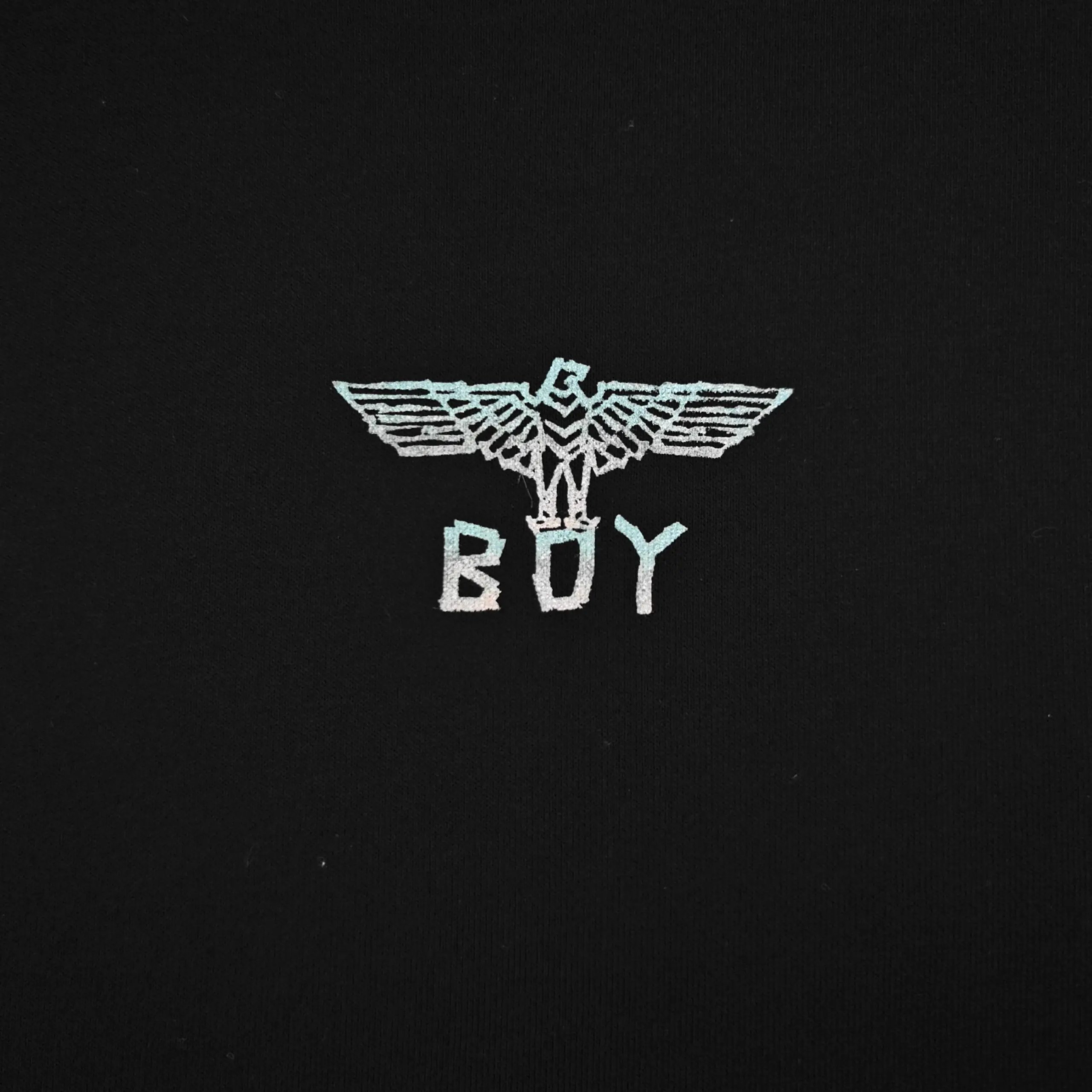Boy London 2025 Fall Winter Black Milk Silk T-Shirts feature gradient eagle wings & "BOY" logo embroidery.