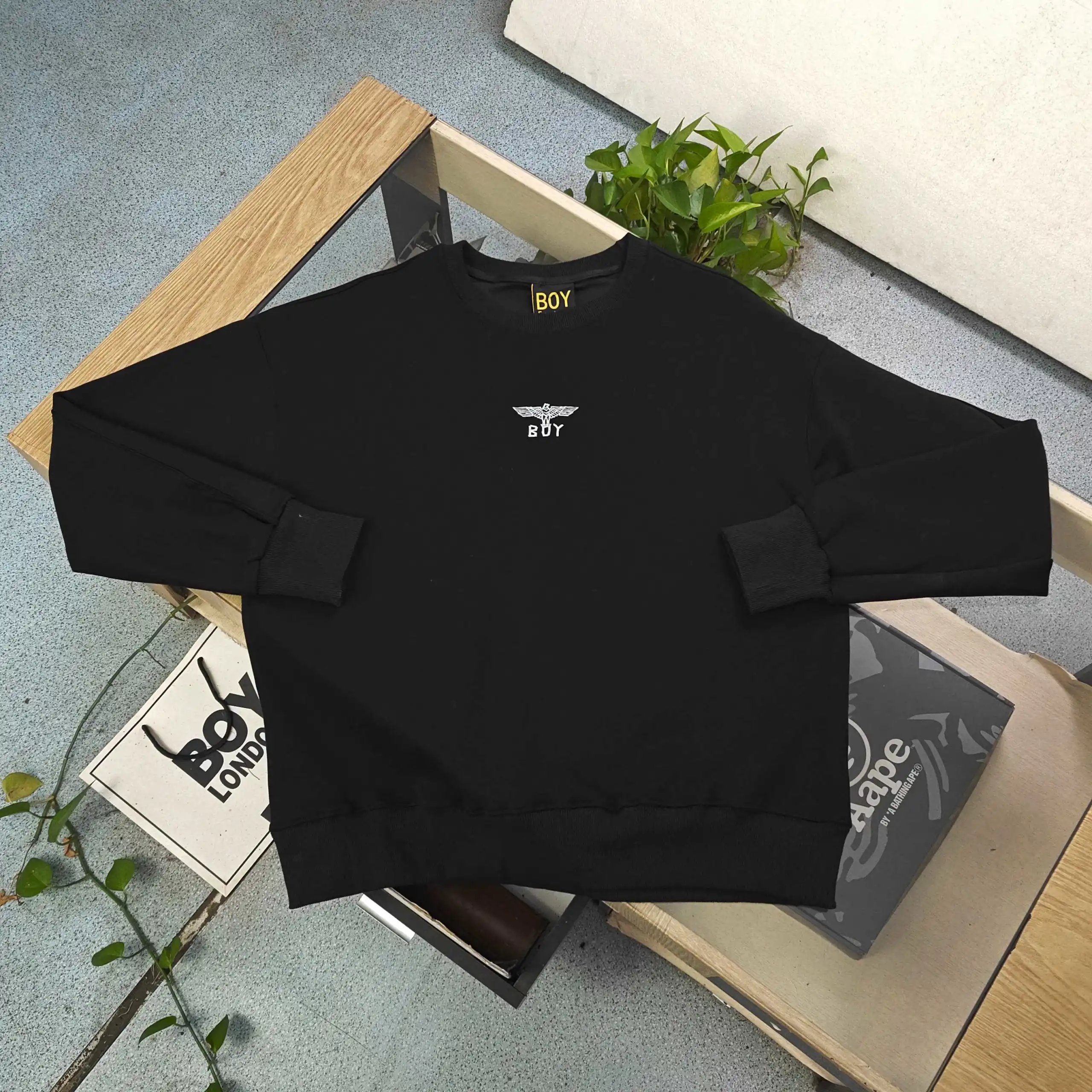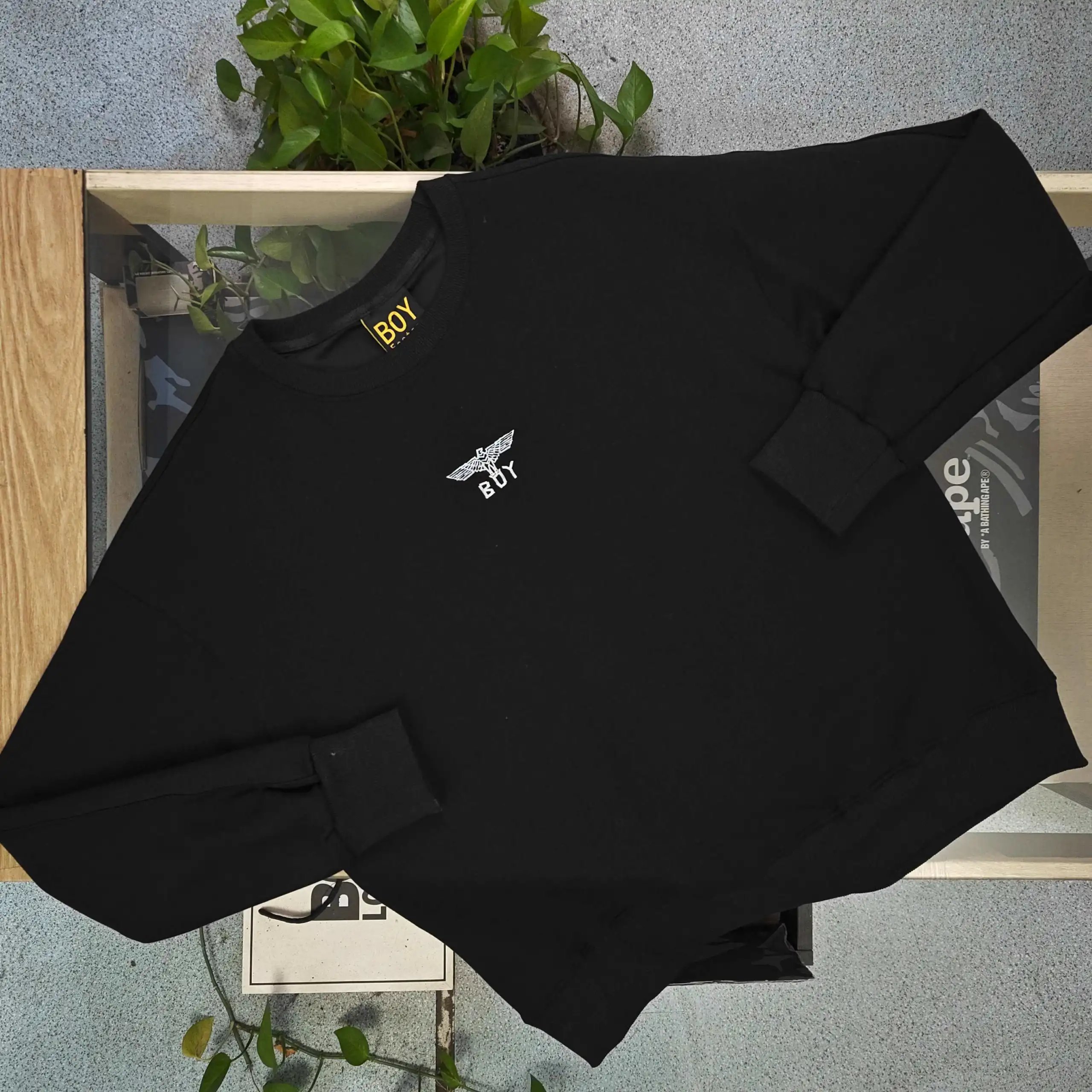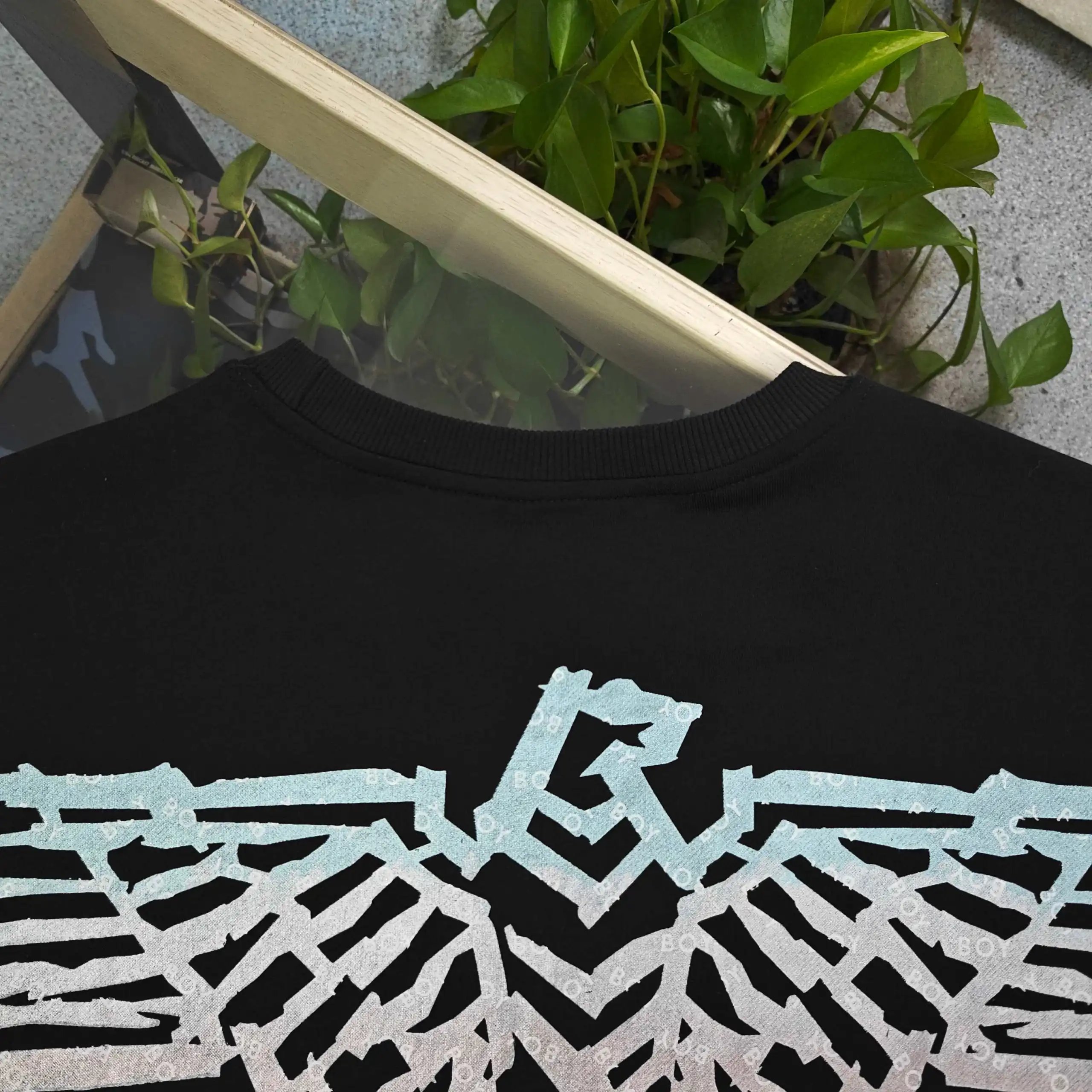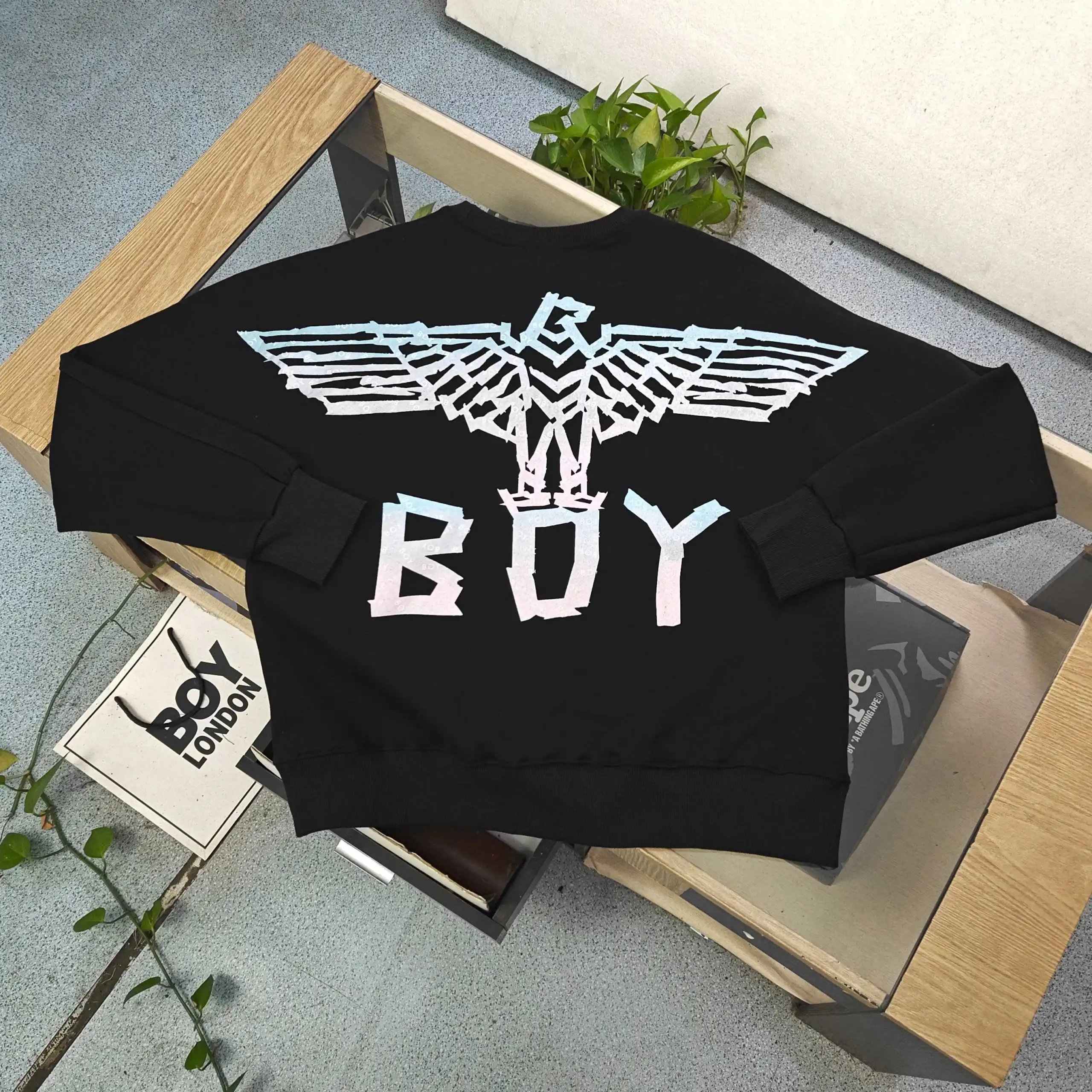 Boy London 2025 Fall Winter Black Milk Silk T-Shirts feature gradient eagle wings & "BOY" logo embroidery.