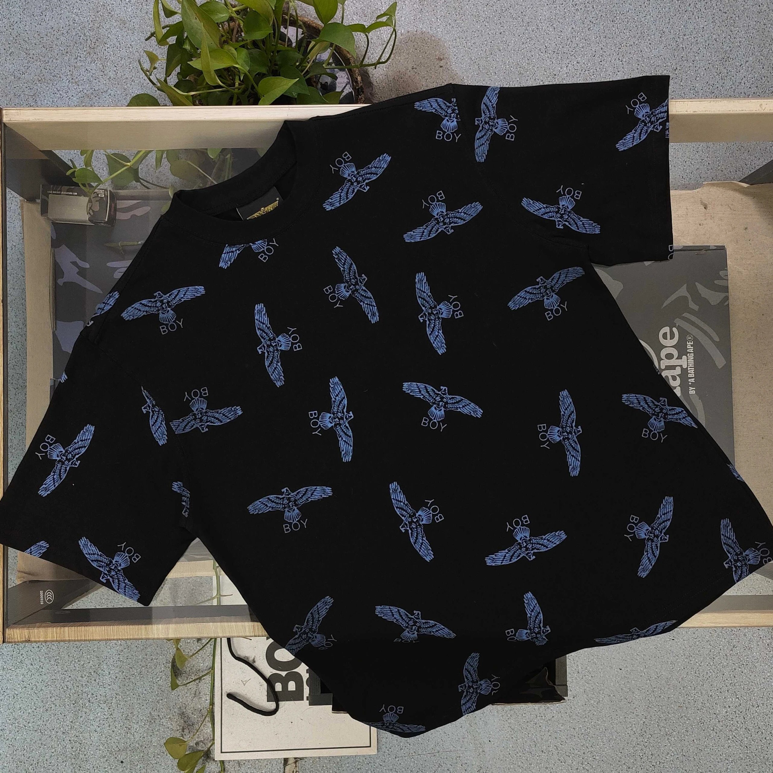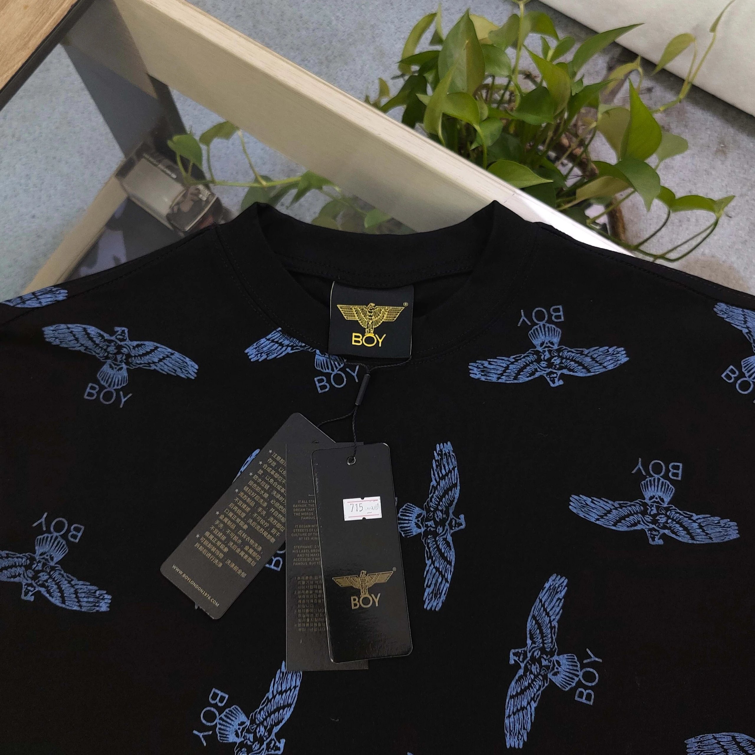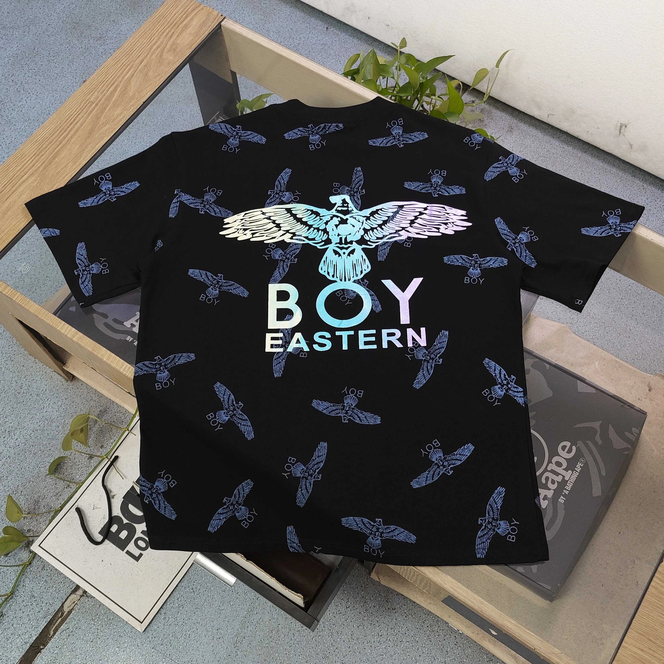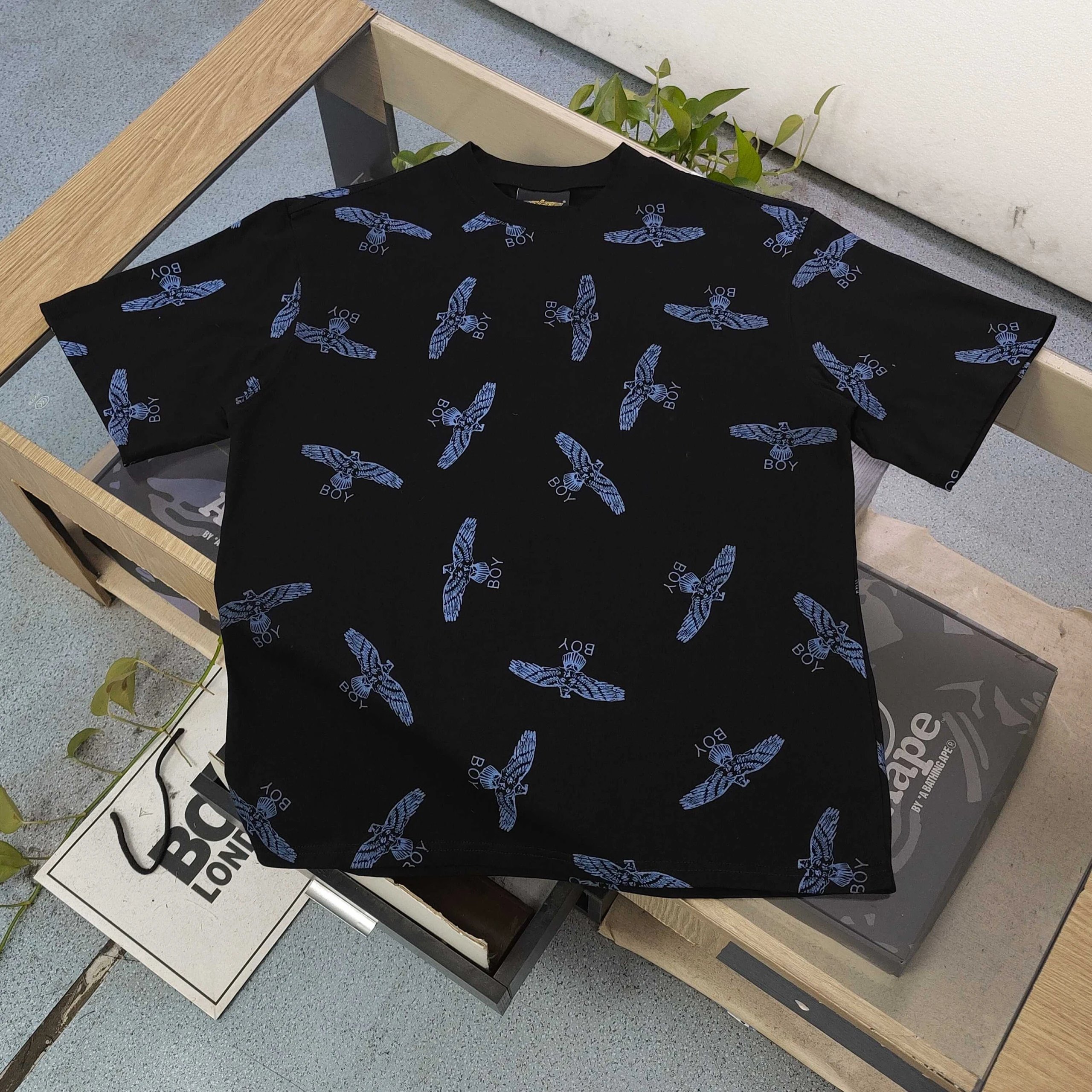 Boy London 2025 High Version Unisex Black T-Shirt with Full Print Eagle & Logo