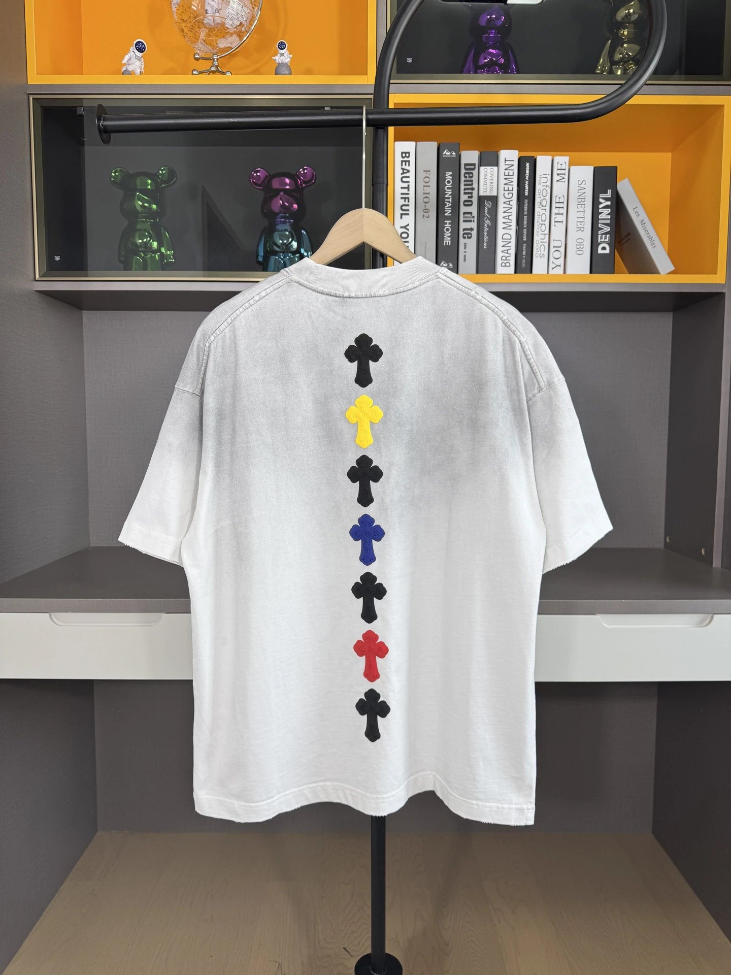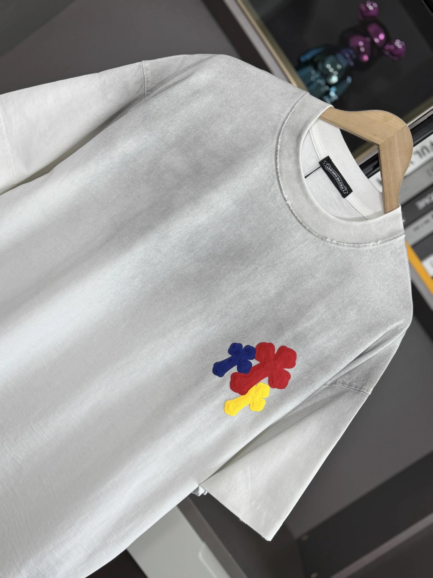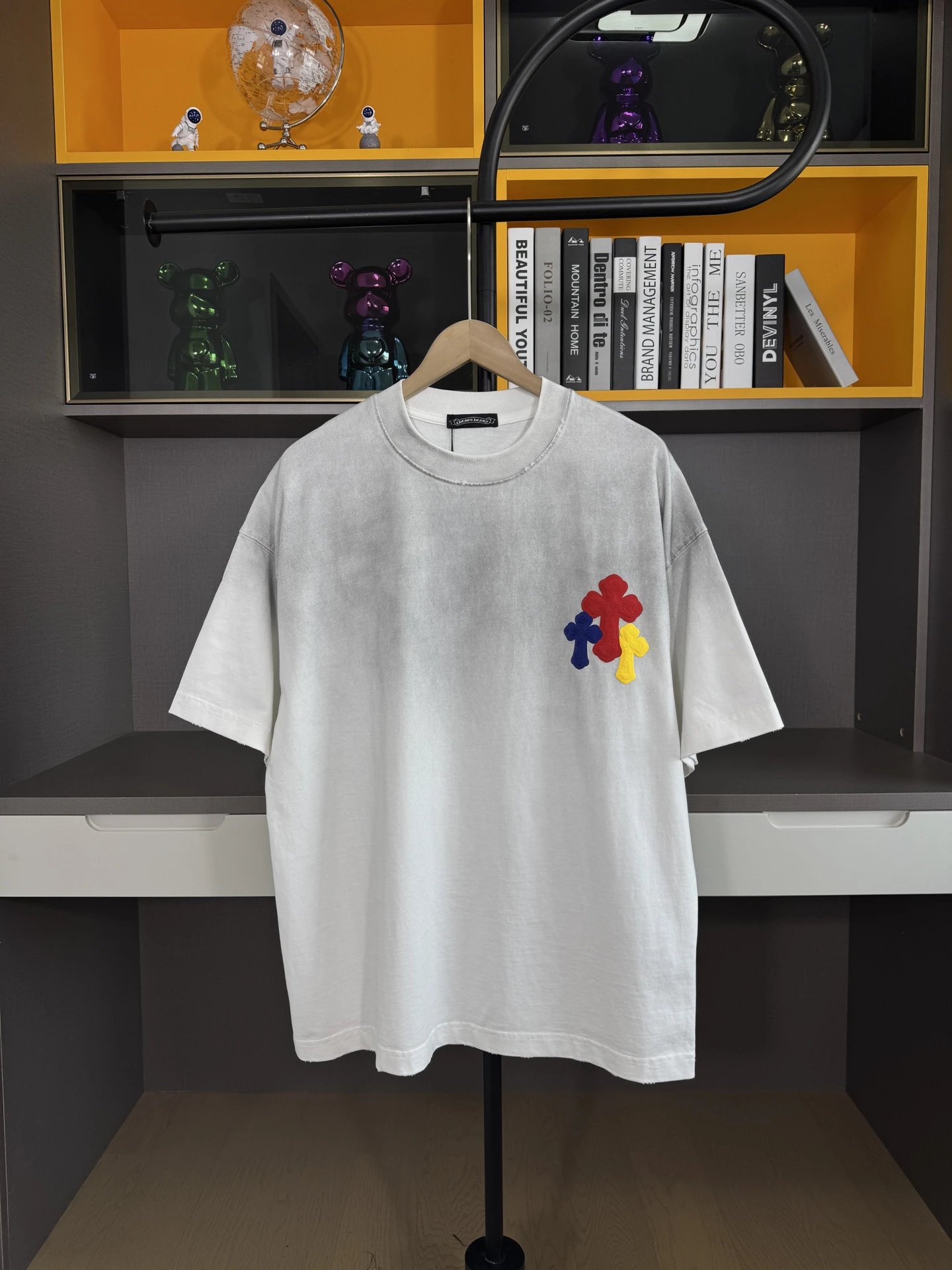 Boy London 2025 Spring Summer Come Hearts T-Shirts use 26s double yarn (320g) fabric with cross patch, water wash & spray distressing.