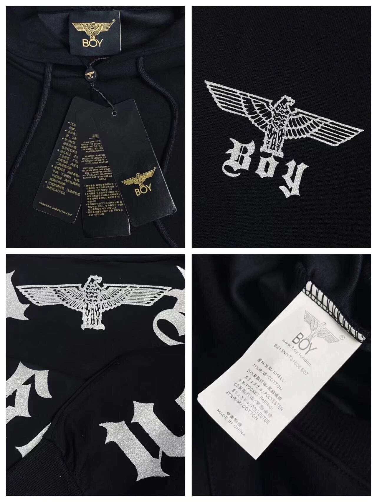 BOY LONDON Silver Eagle Wings Hoodie is unisex, loose-fit with premium 3D carved logo & soft breathable fabric.