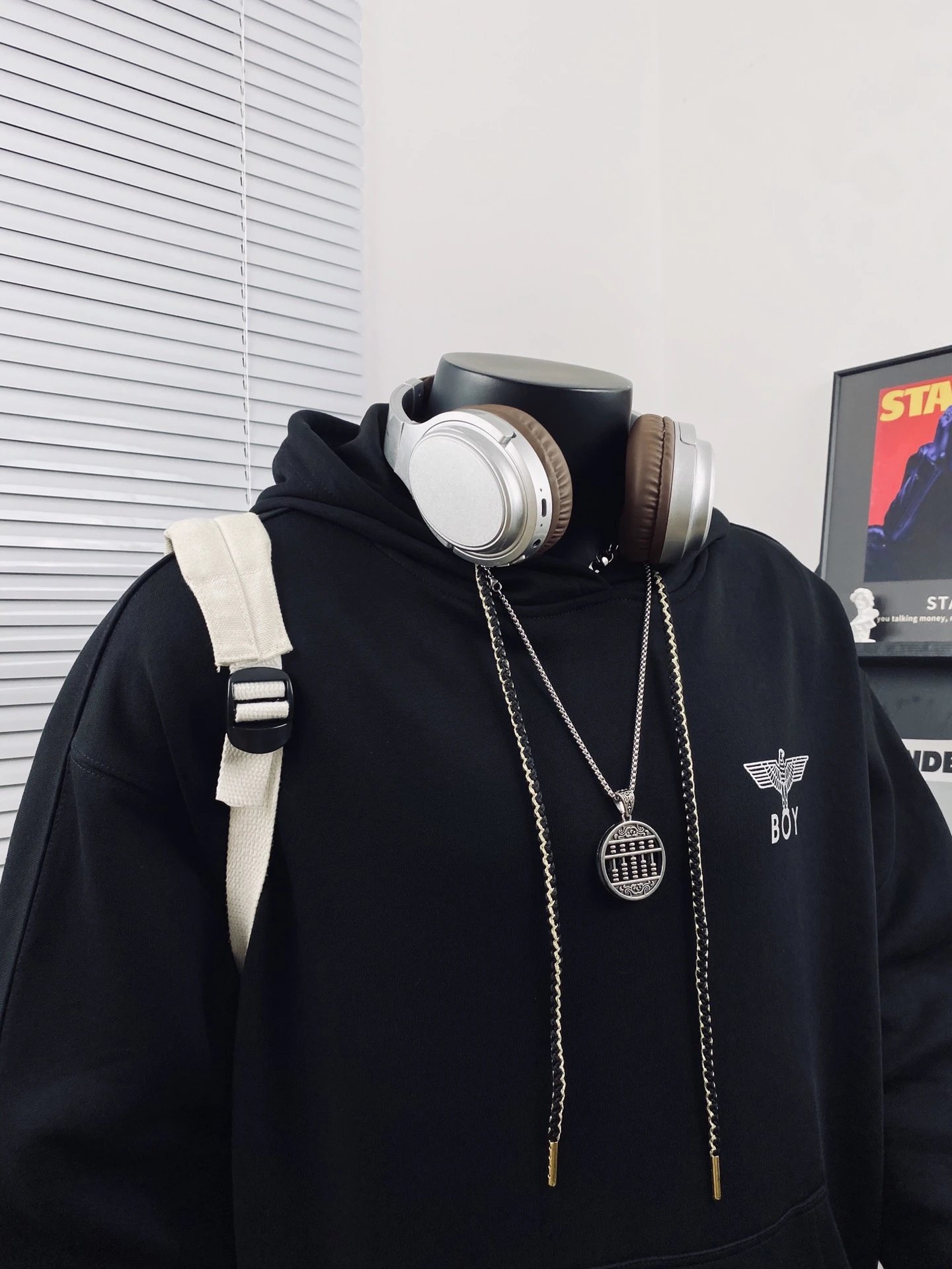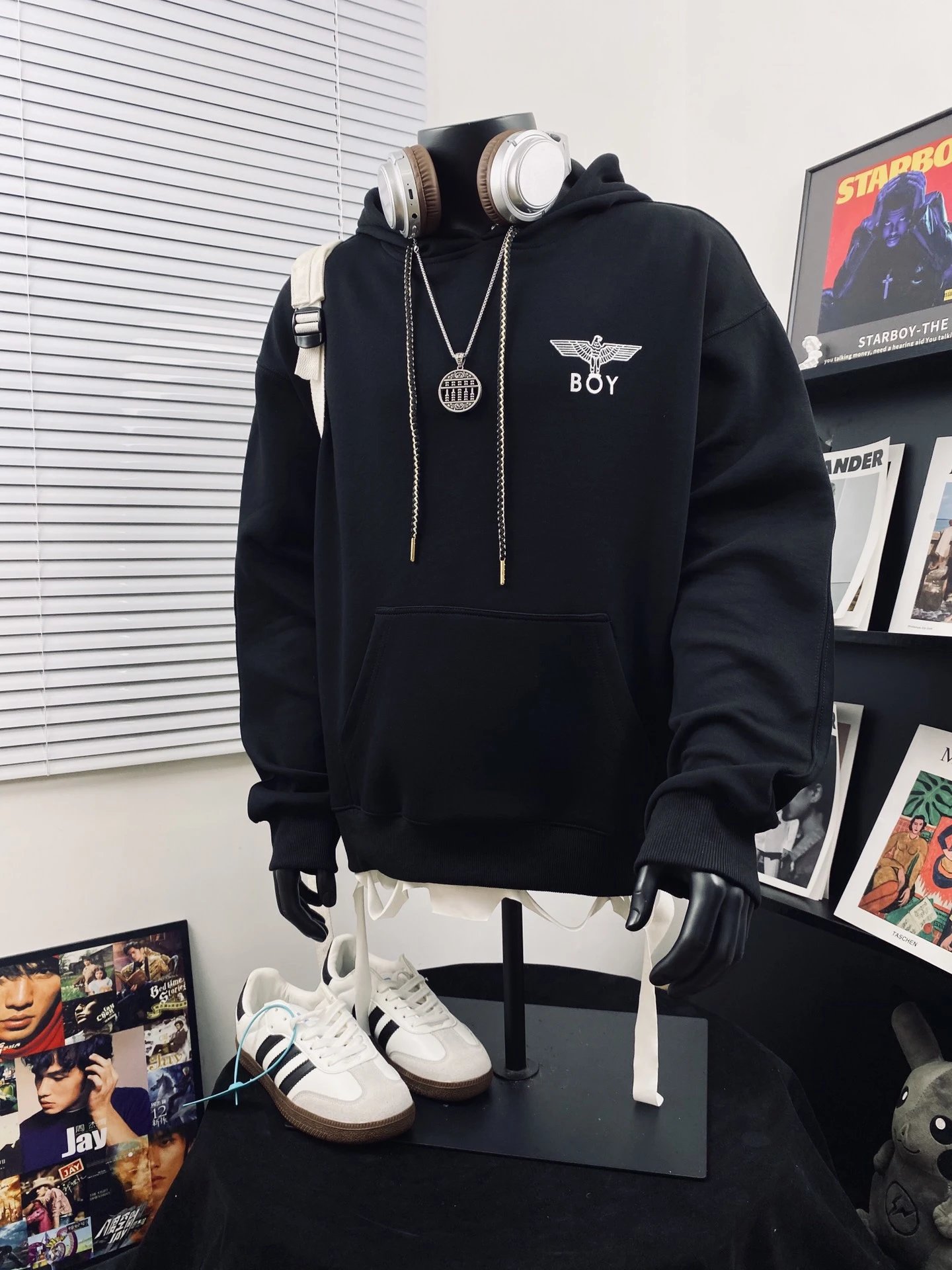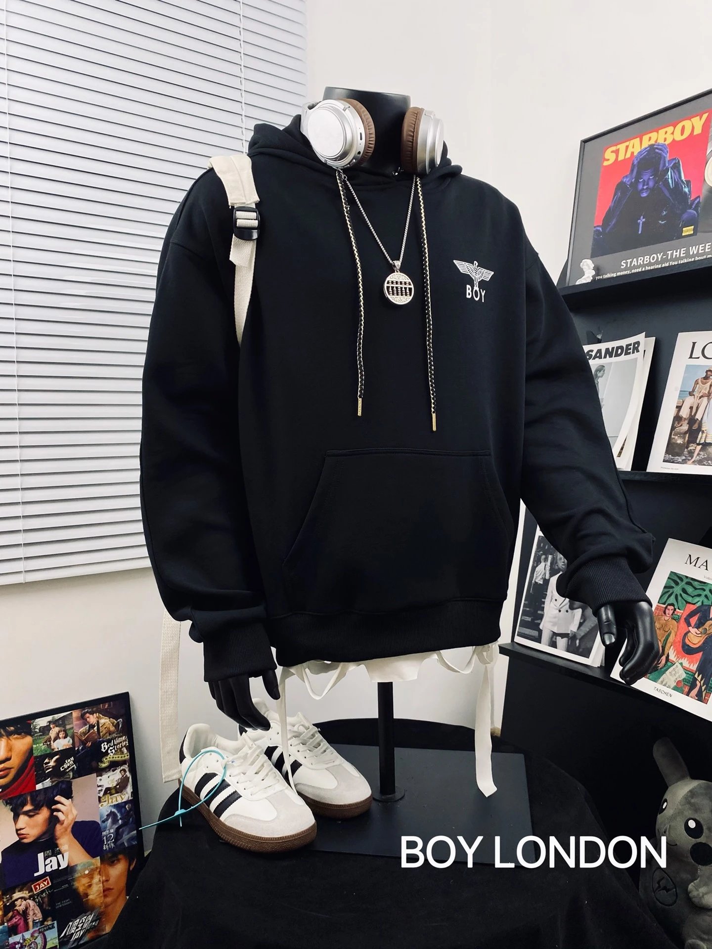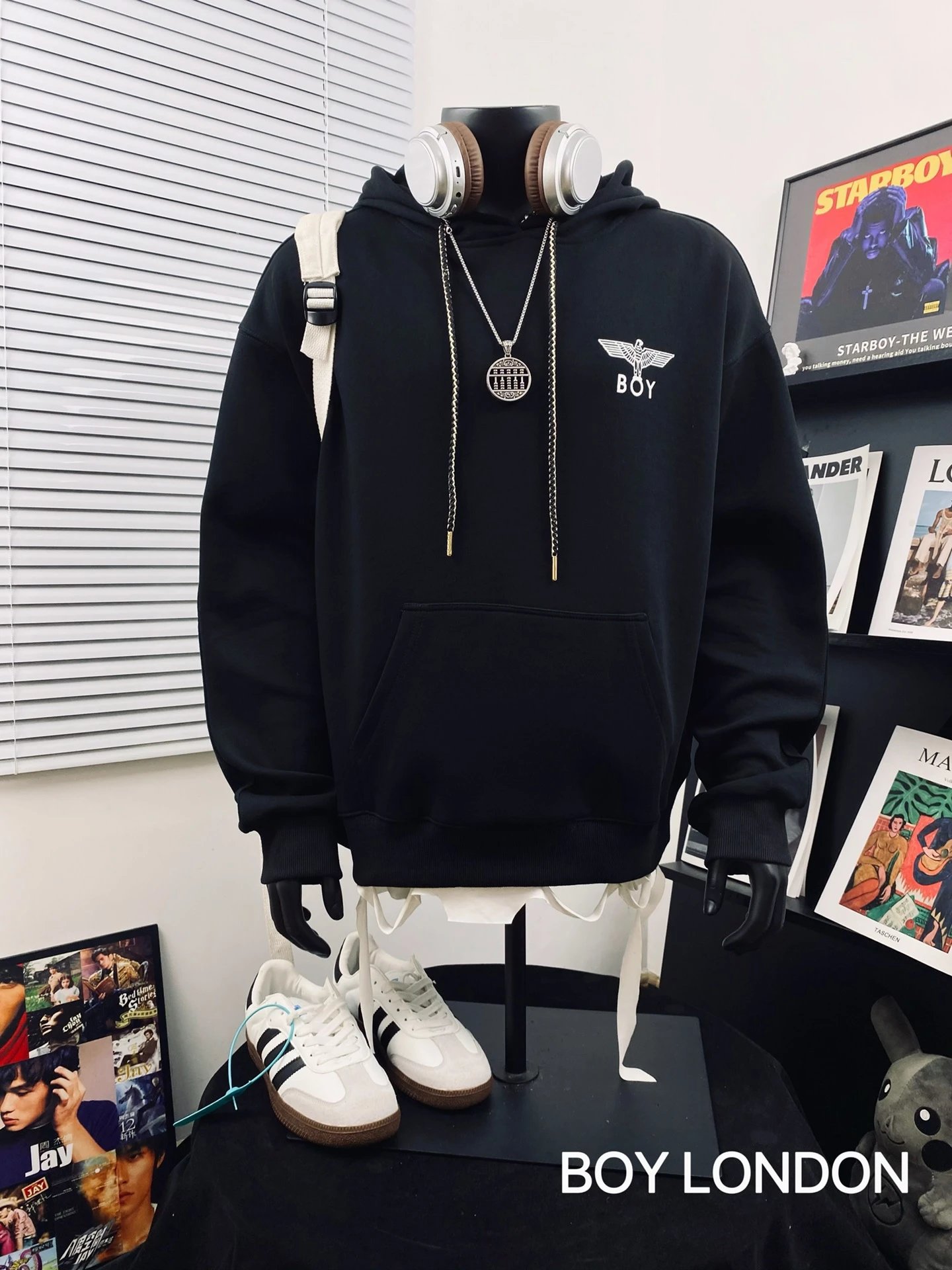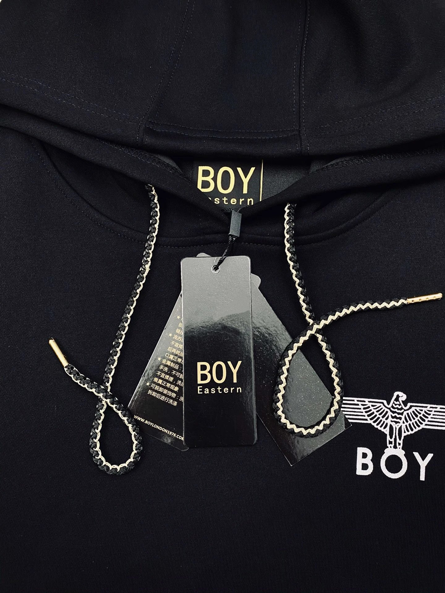Boy London Dark Wing Reflective Unisex Loose Hoodie uses Japan 3D engraved wings, imported paste pressed at 170℃ for sharp details.