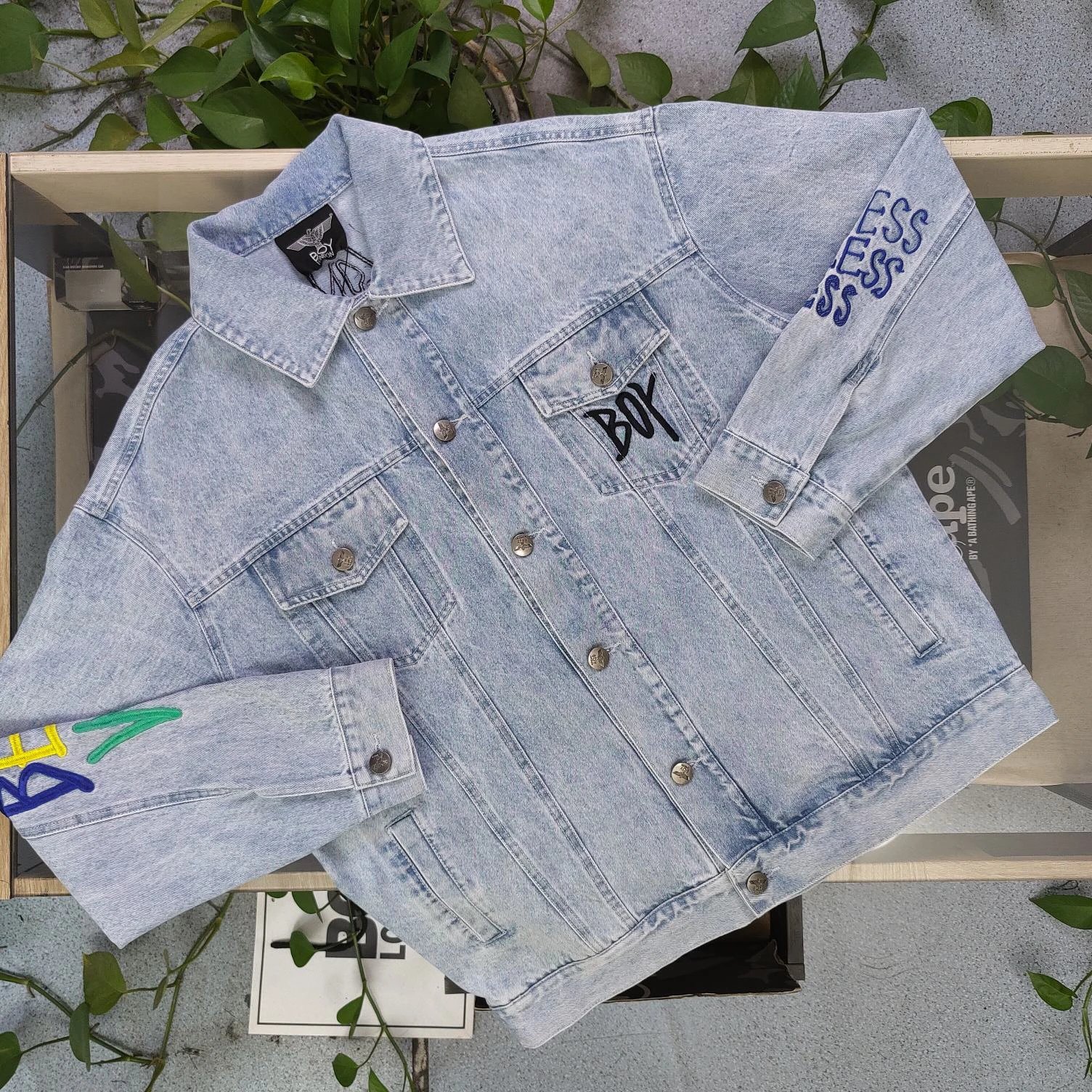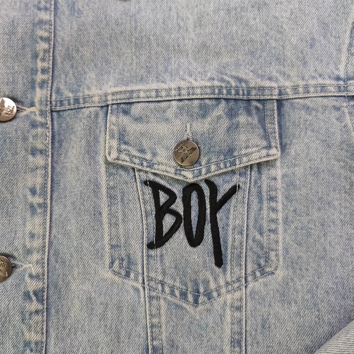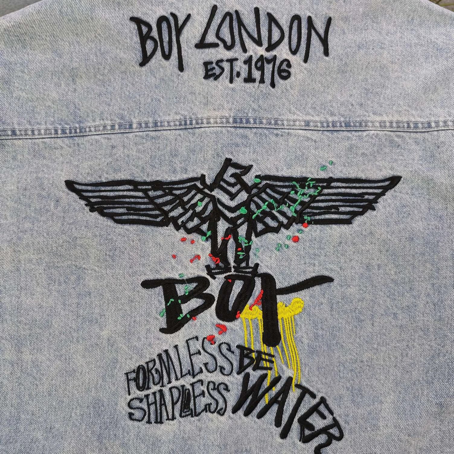 Boy London 2025 new blue denim jacket has embroidered eagle patterns, custom zippers, relaxed unisex fit.