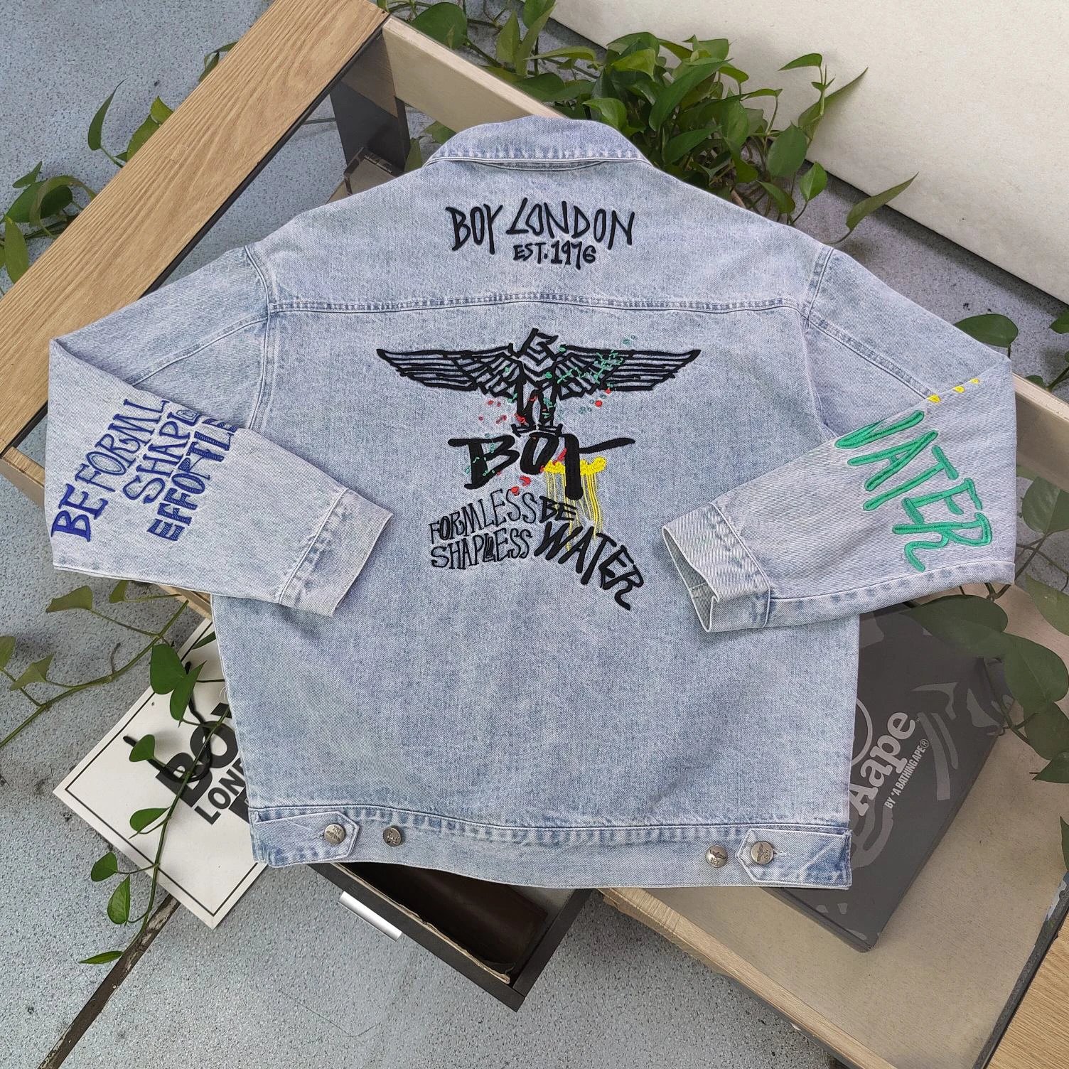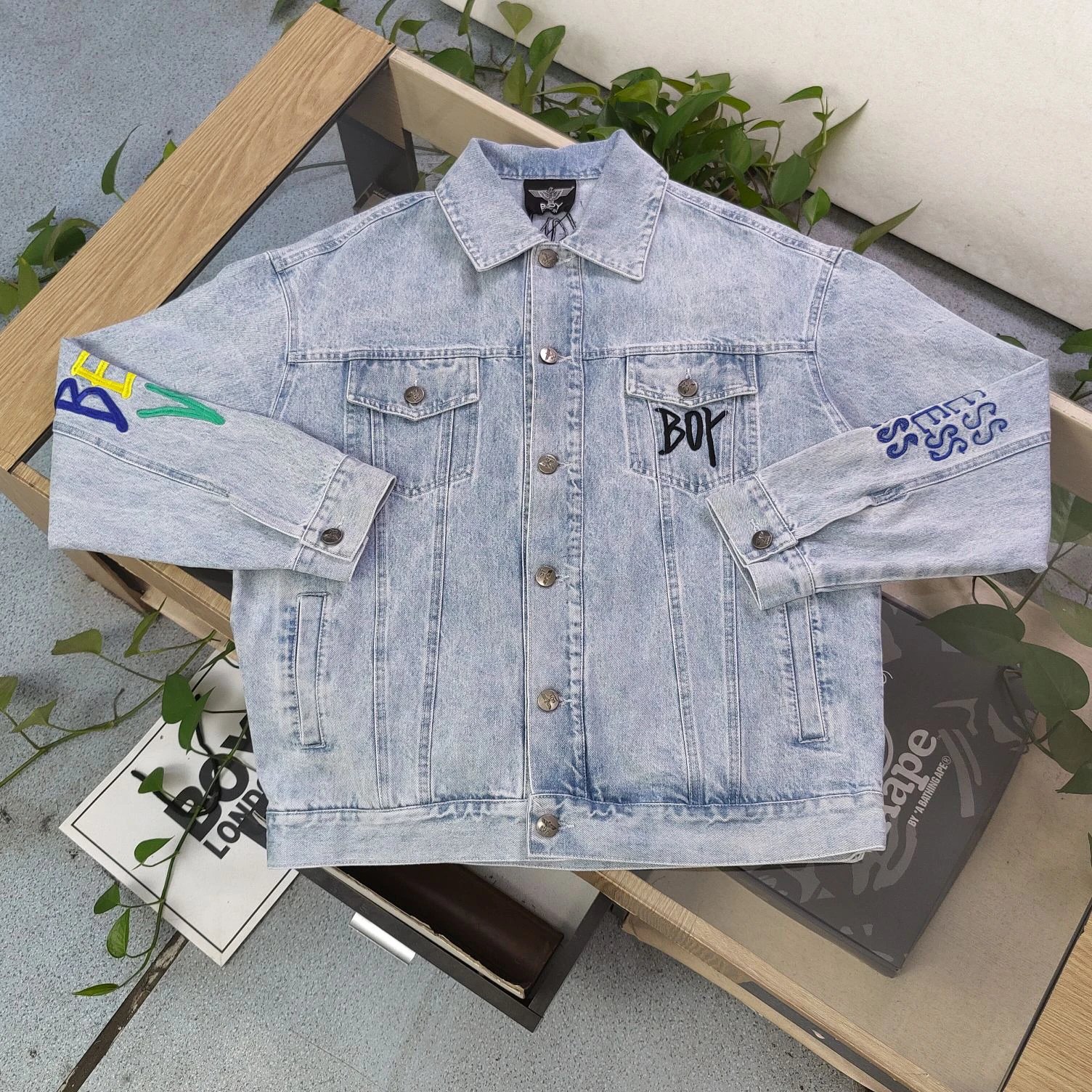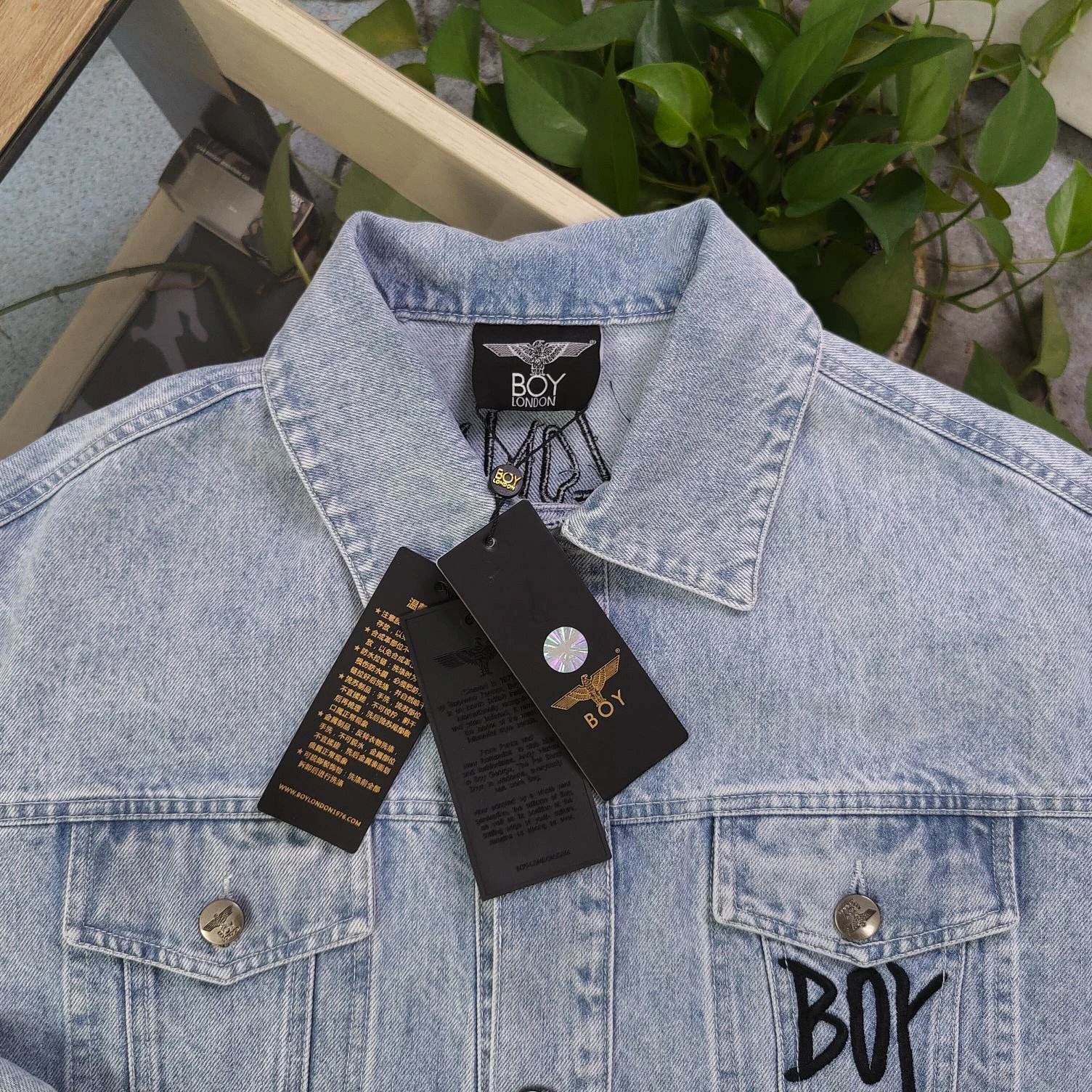 Boy London 2025 new blue denim jacket has embroidered eagle patterns, custom zippers, relaxed unisex fit.