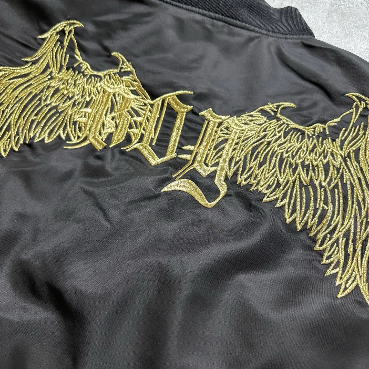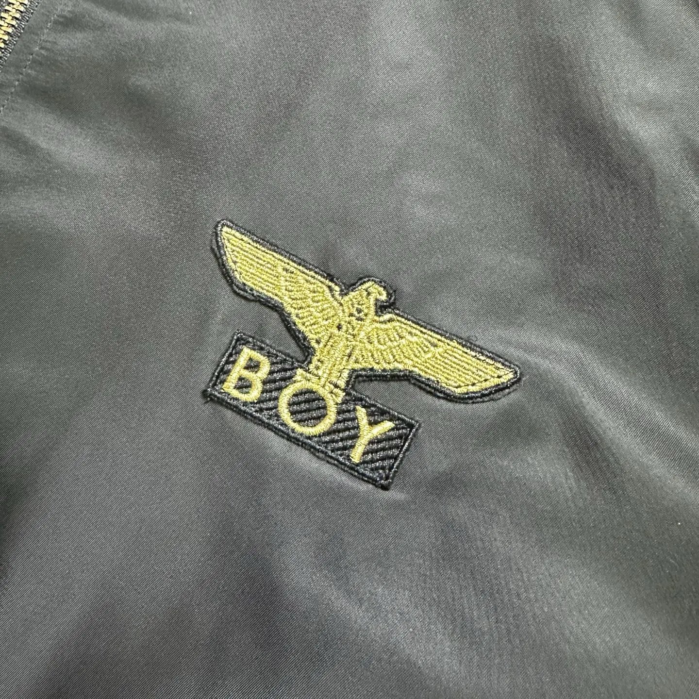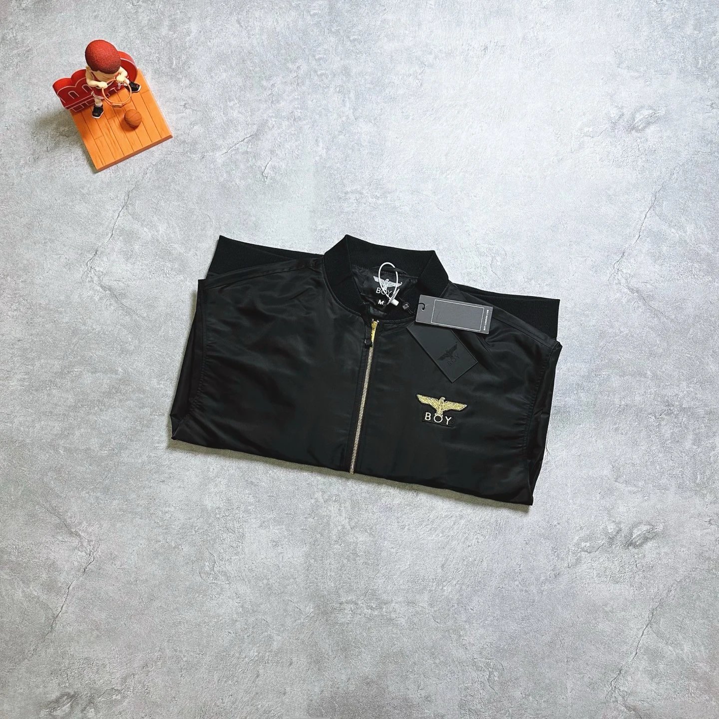 Boy London 220 Series Black Nylon Bomber Jacket has chest embroidered logo & back eagle wings embroidery.