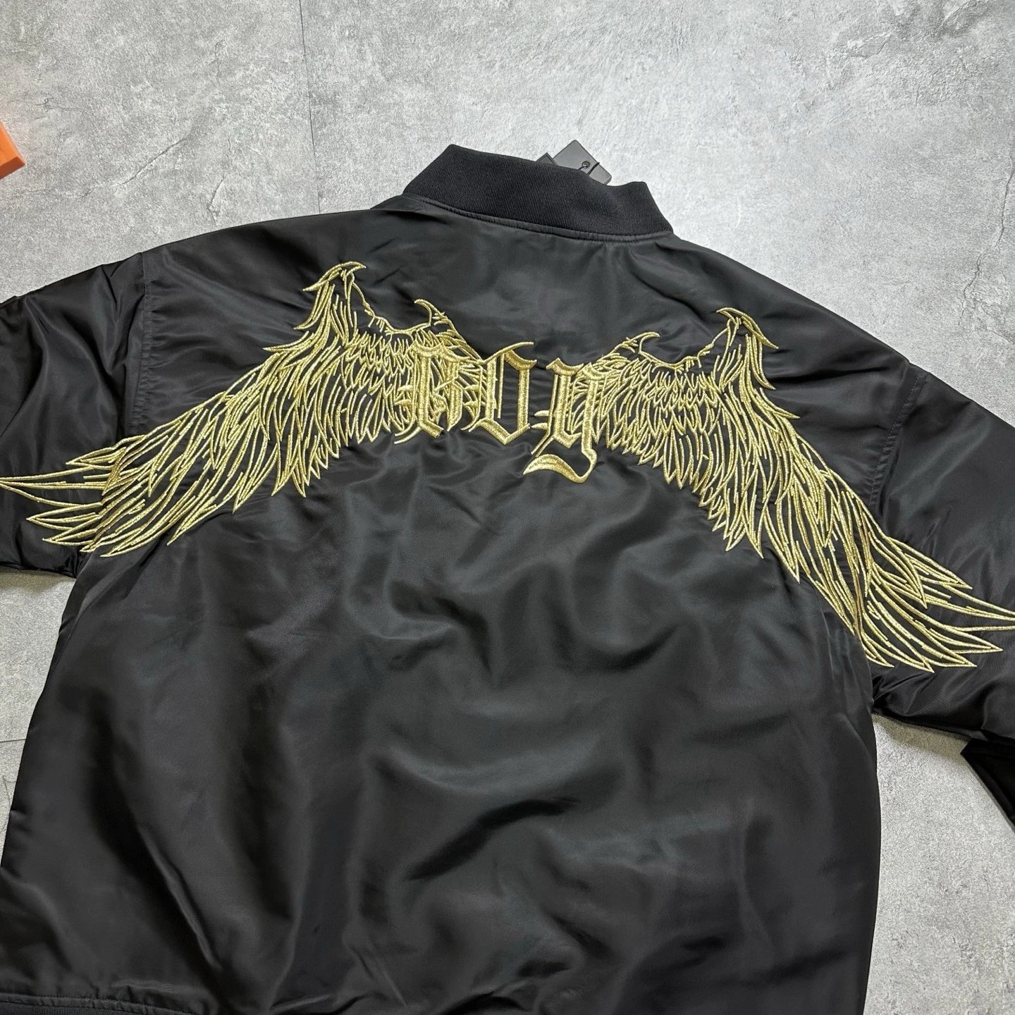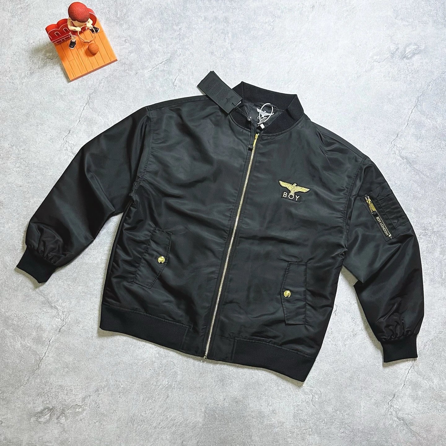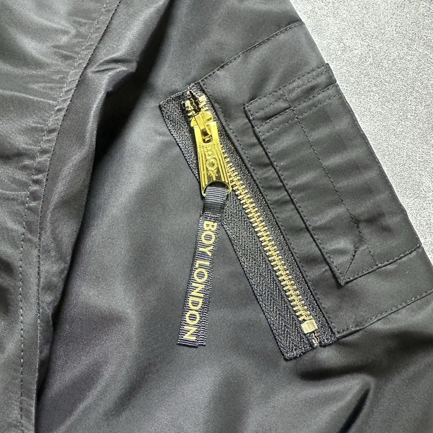 Boy London 220 Series Black Nylon Bomber Jacket has chest embroidered logo & back eagle wings embroidery.