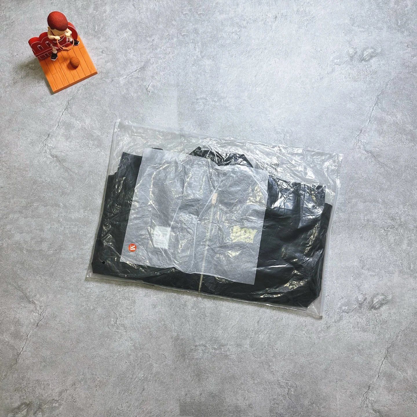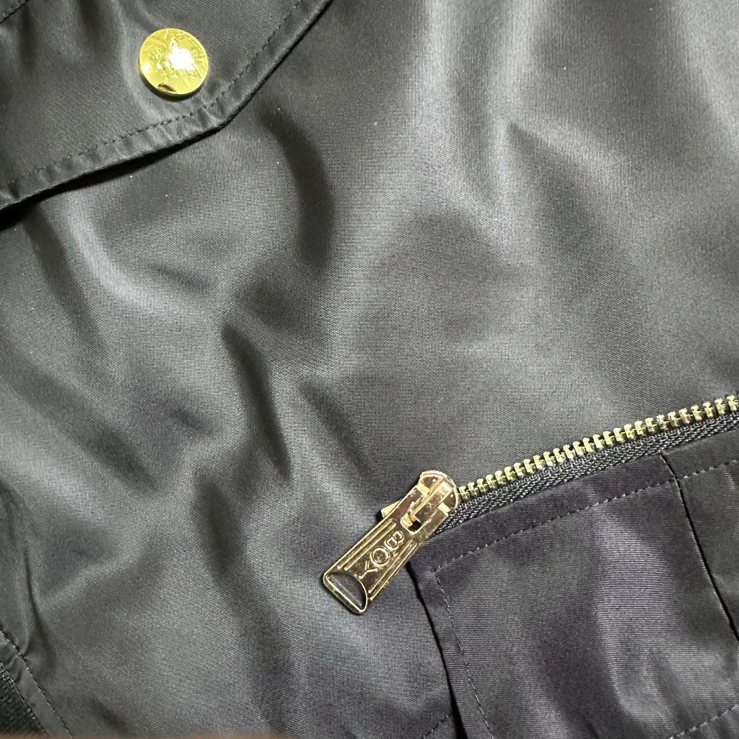 Cuffs/neckline/hem use logo ribbing; branded zipper, inner logo, machine washable nylon Oxford waterproof fabric.