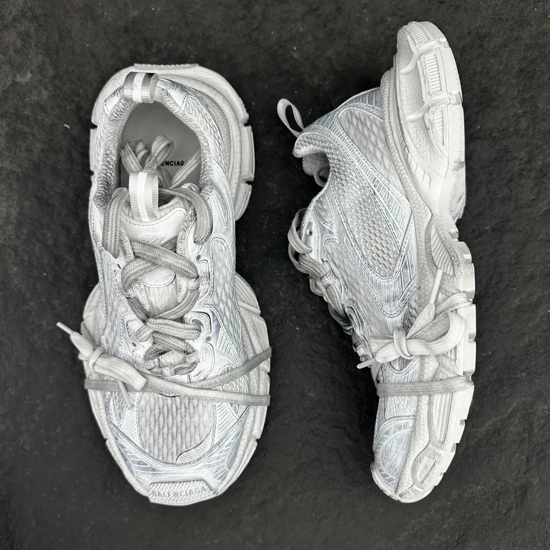 Balenciaga 3XL Unisex White Sneakers use mesh & polyurethane, no leather.