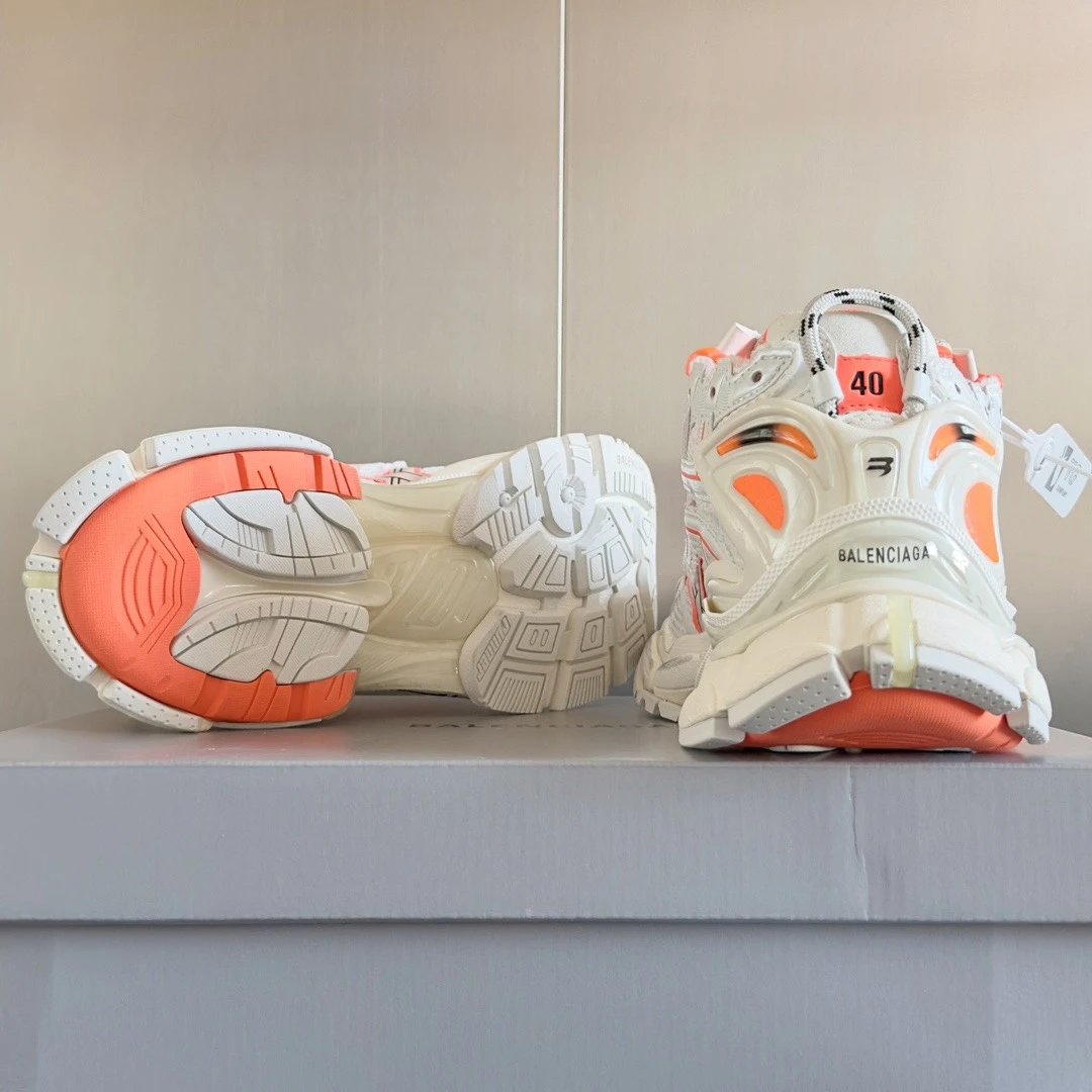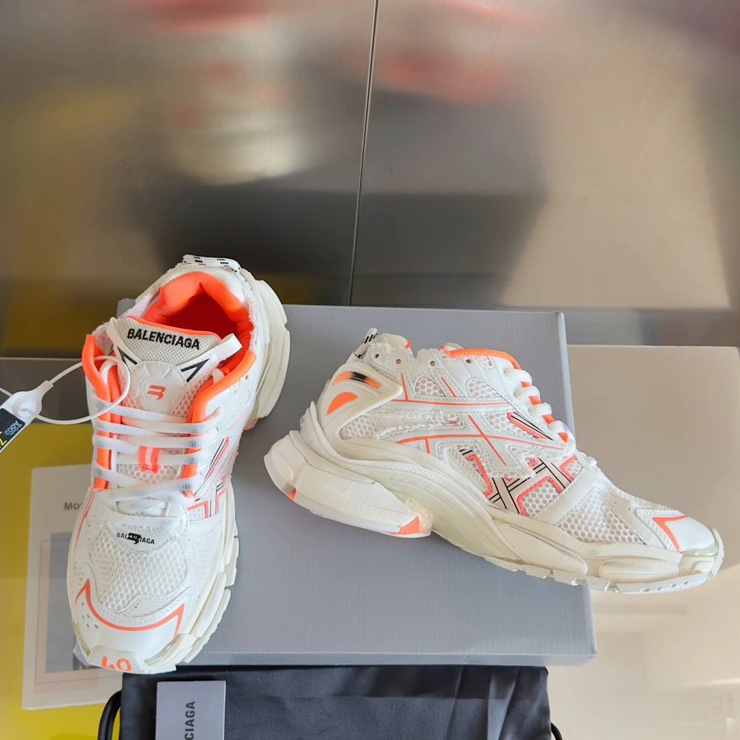 Balenciaga Runner Dad Sneakers feature retro distressed details, custom mixed materials, breathable mesh lining & 4.5CM sole.