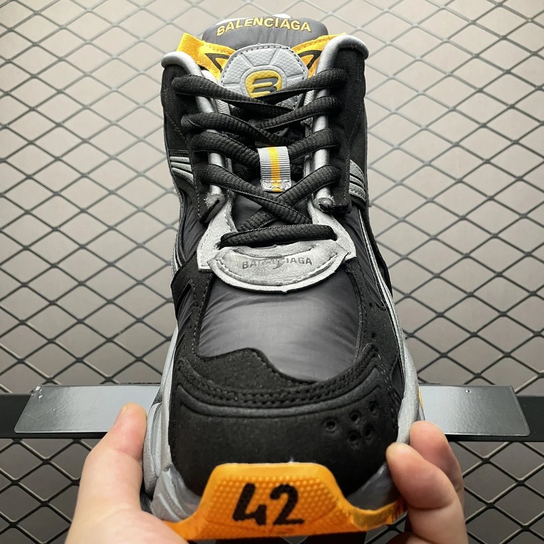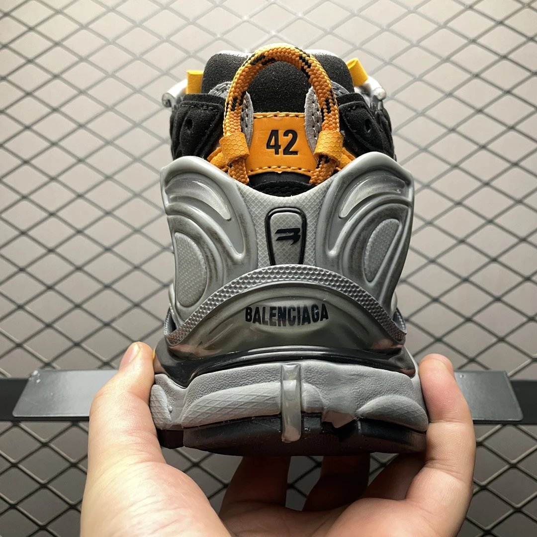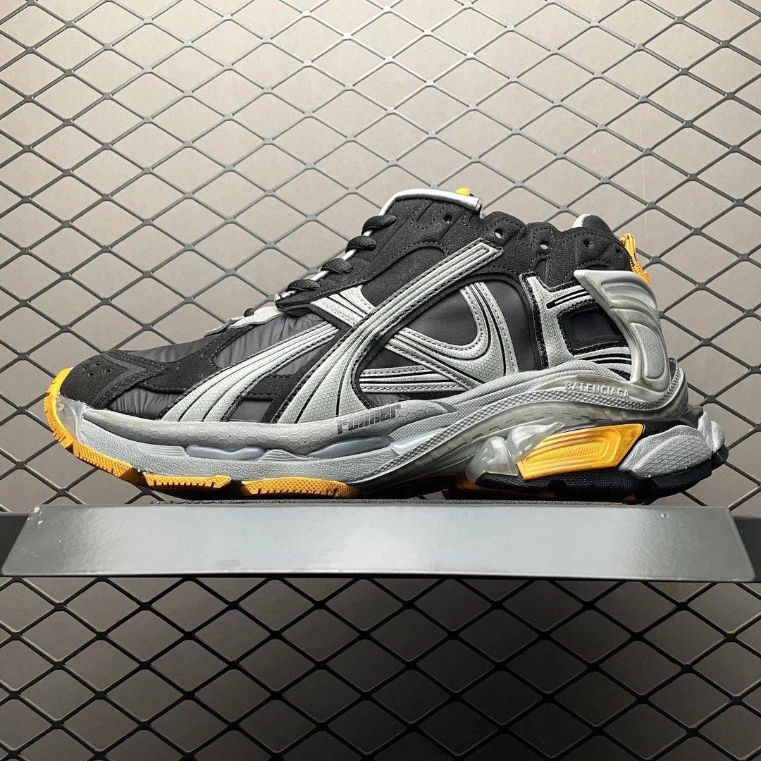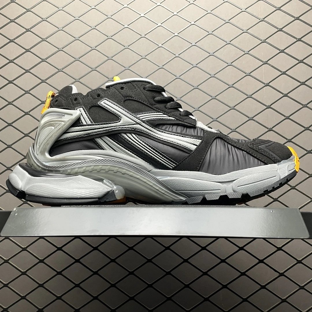 Balenciaga Runner Distressed Retro Dad Sneakers are handcrafted with intentional distressing, glue details, and unique stitching to reflect Demna’s design style, blending retro vibes with futuristic elements like the elevated heel counter and upturned toe.
