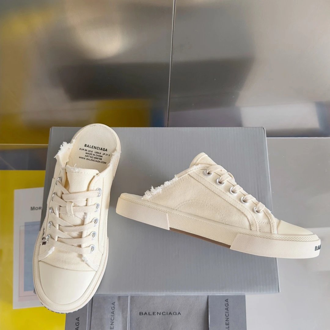Custom distressed canvas upper, rubber non-slip sole (3cm thick), sizes 35-45 (women 35-40, men 40-45).