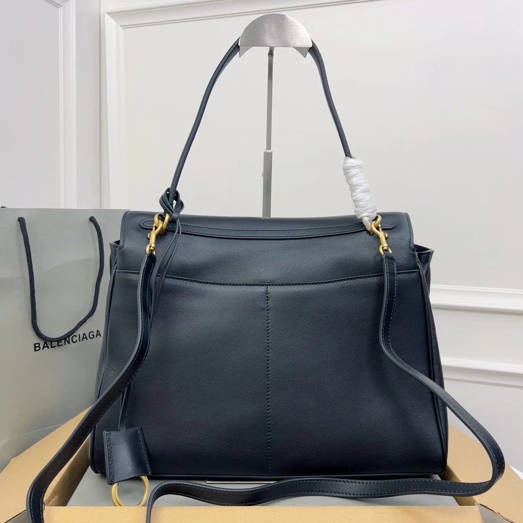 Balenciaga Series Handbag: Black Gold Buckle, slouchy edgy design, premium leather.