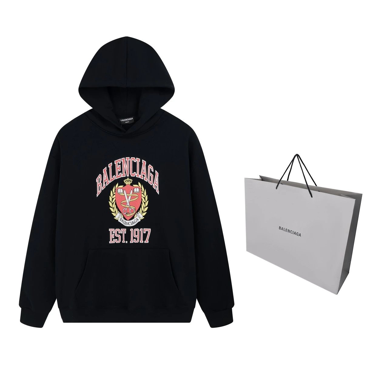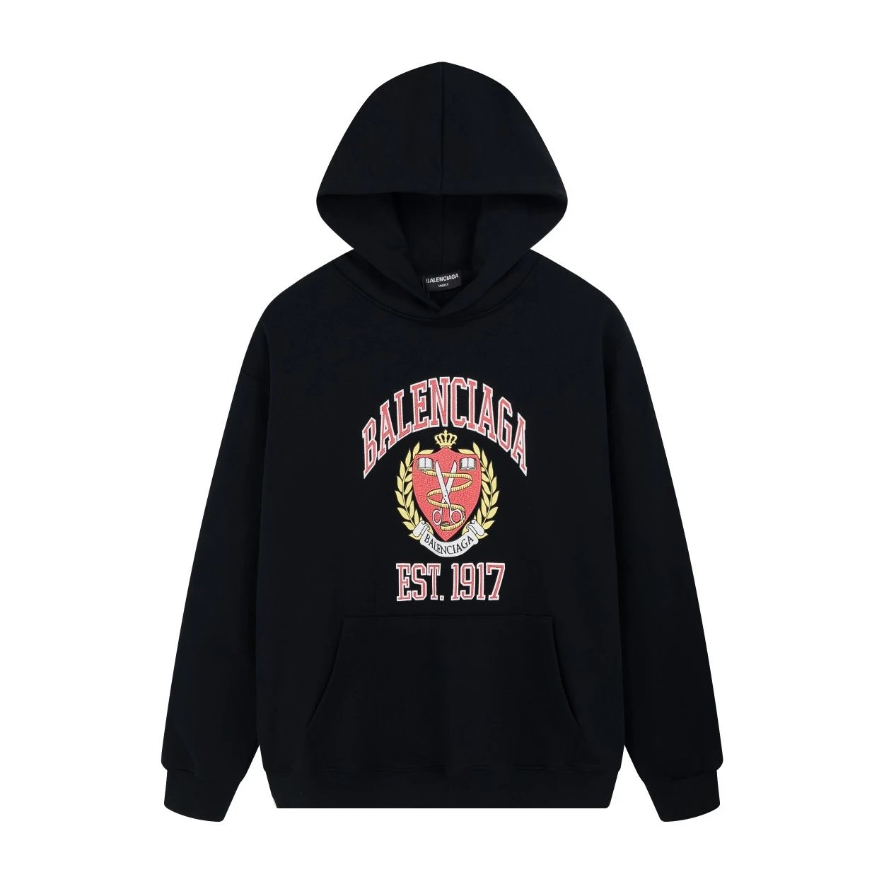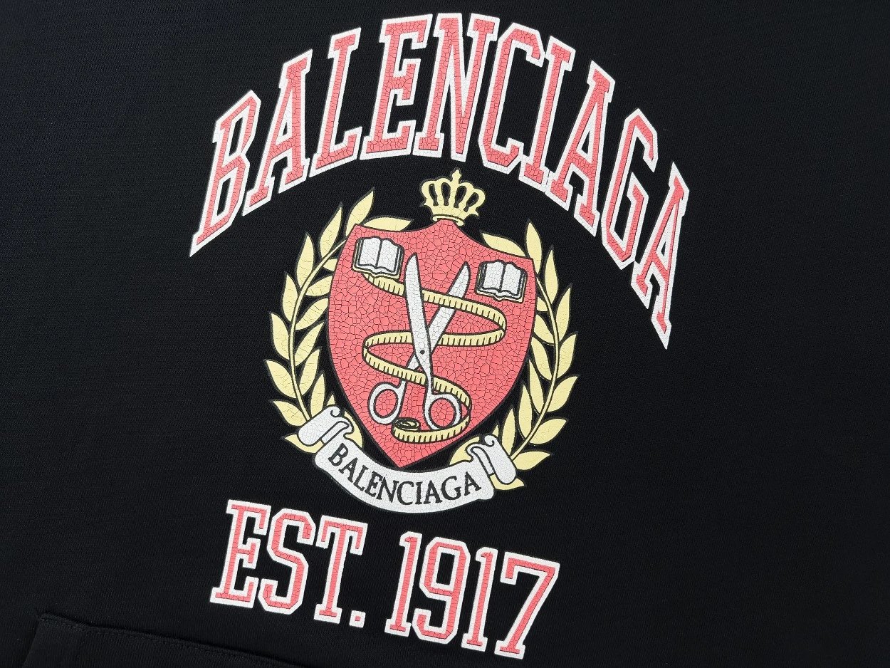 Balenciaga SS22 Classic Unisex Hoodie with 1917 Shield Crack Print, Fall/Winter Collection, Official Store Quality.