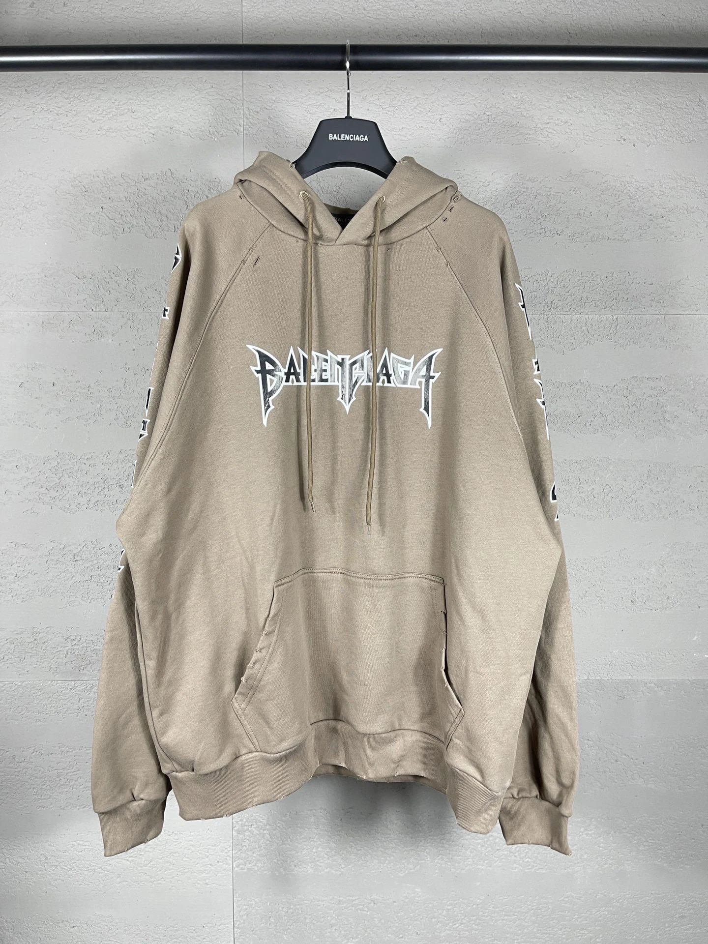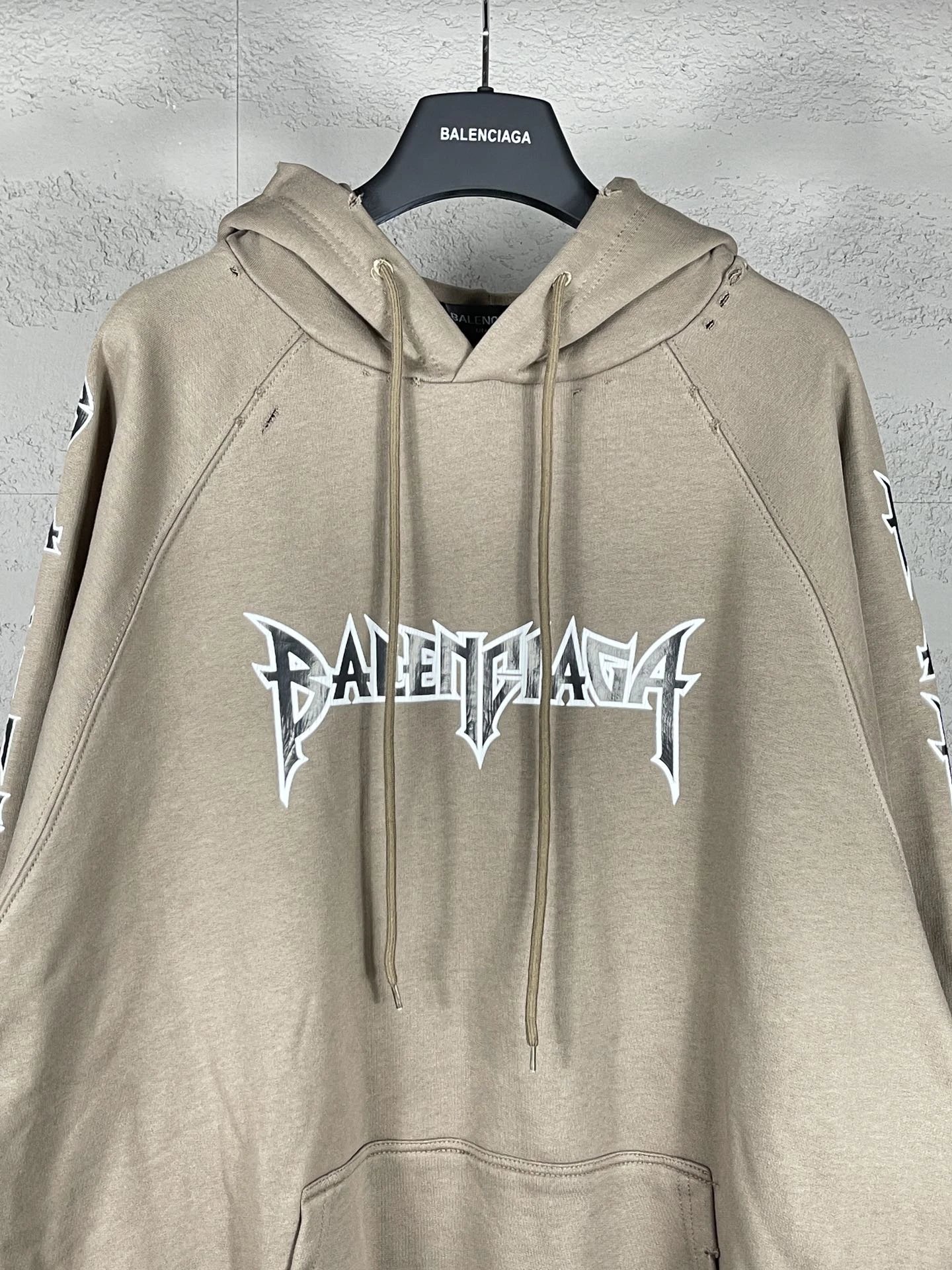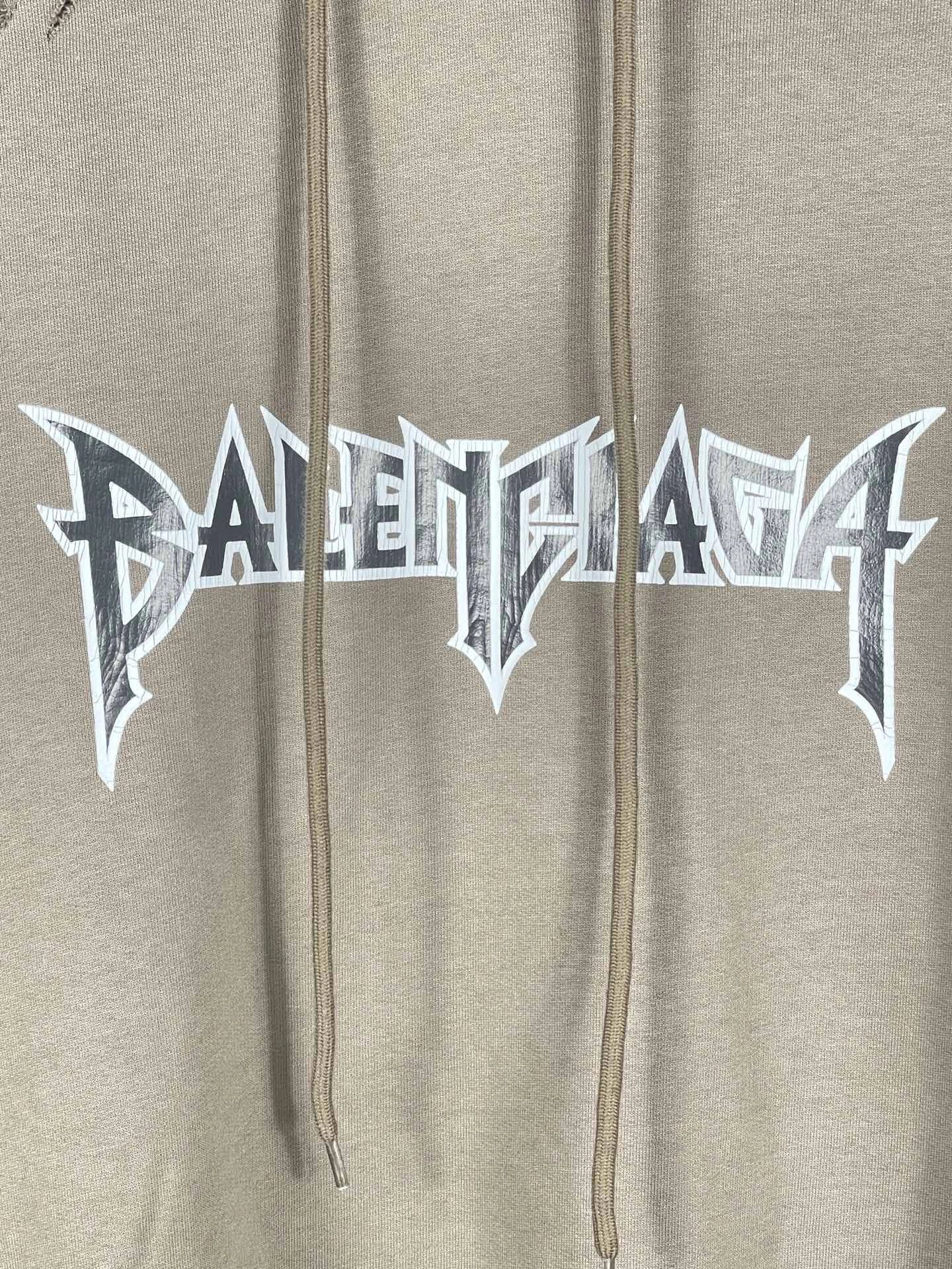 Balenciaga Classic 23SS Unisex Hoodie: Rock Band Print, Distressed Design, OS Loose Fit.