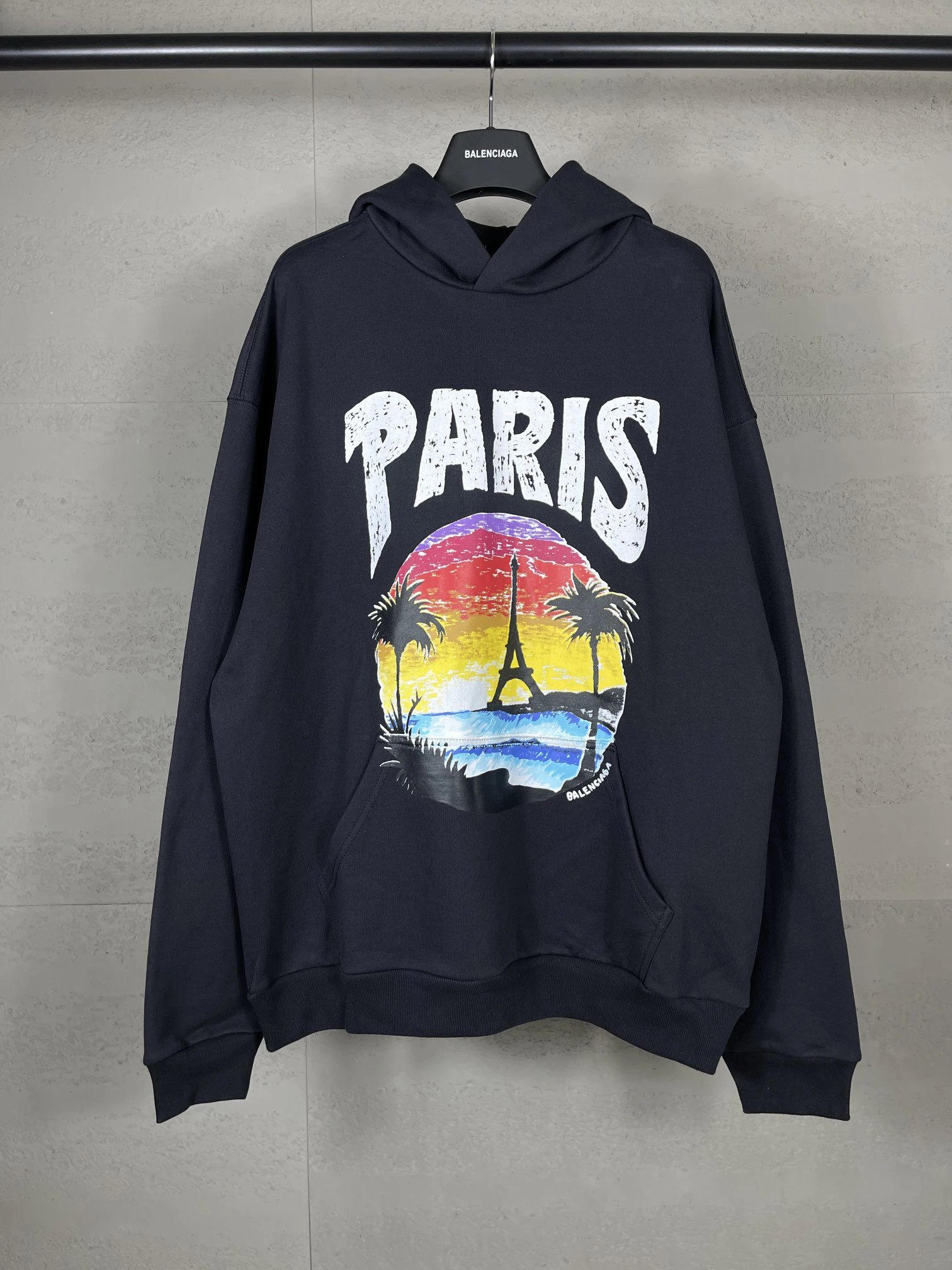Balenciaga Hawaiian Sunset Coconut Tree Eiffel Tower Logo Hoodie