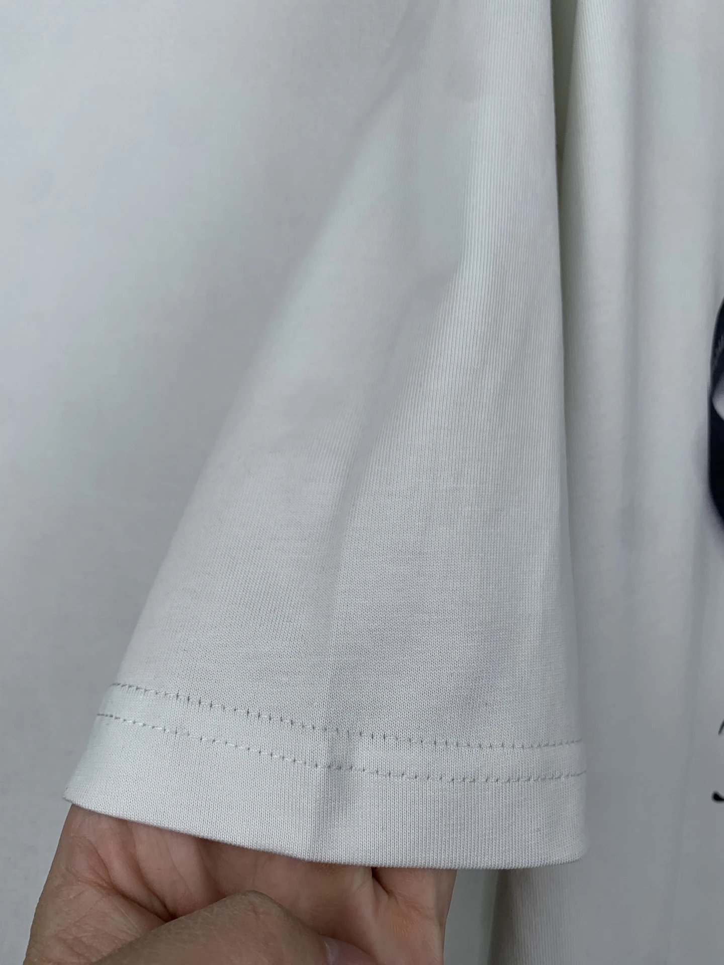 Features 40s Paris cotton (210g), 1*1 Lycra rib, digital print, enzyme wash, loose fit.