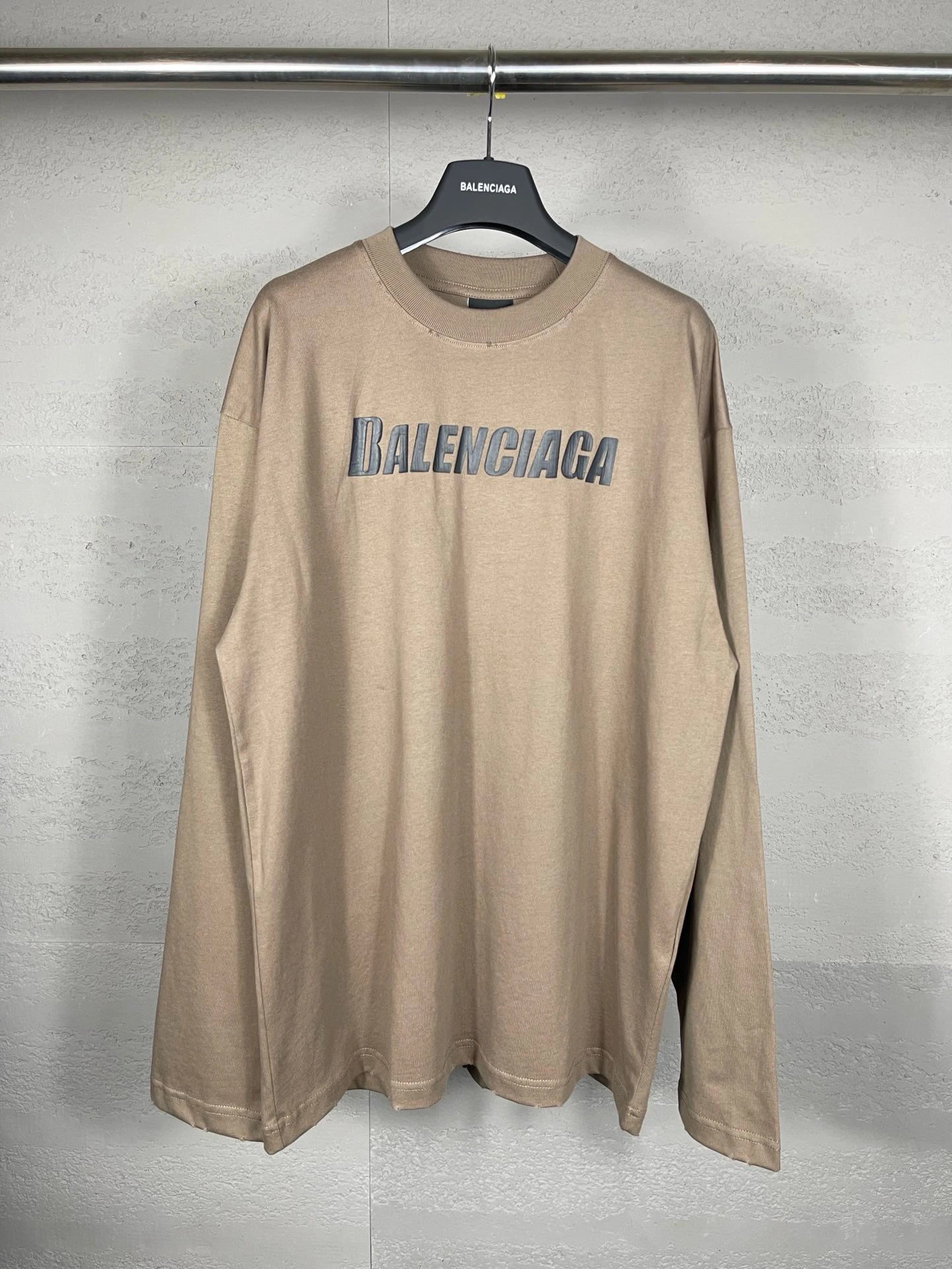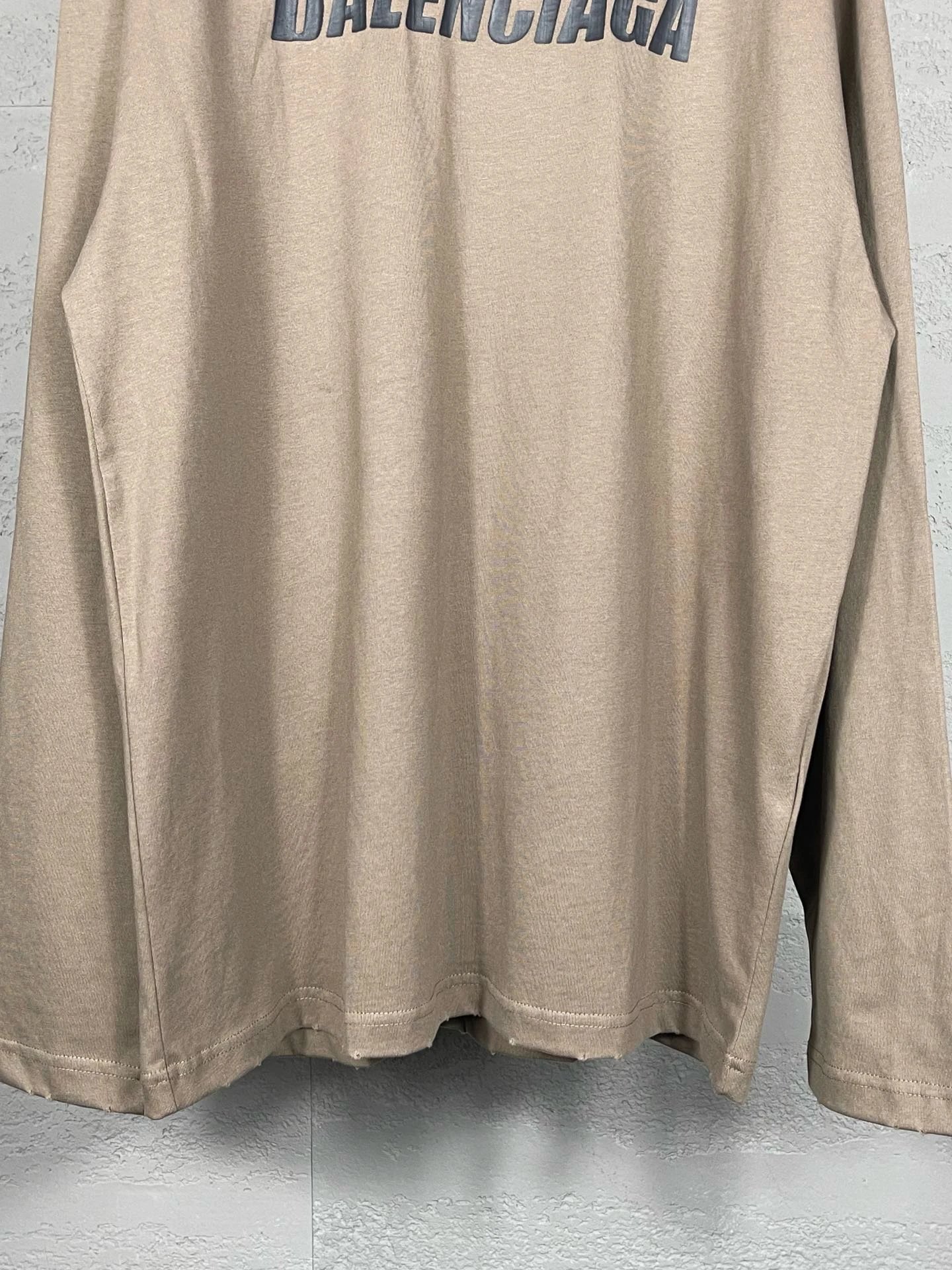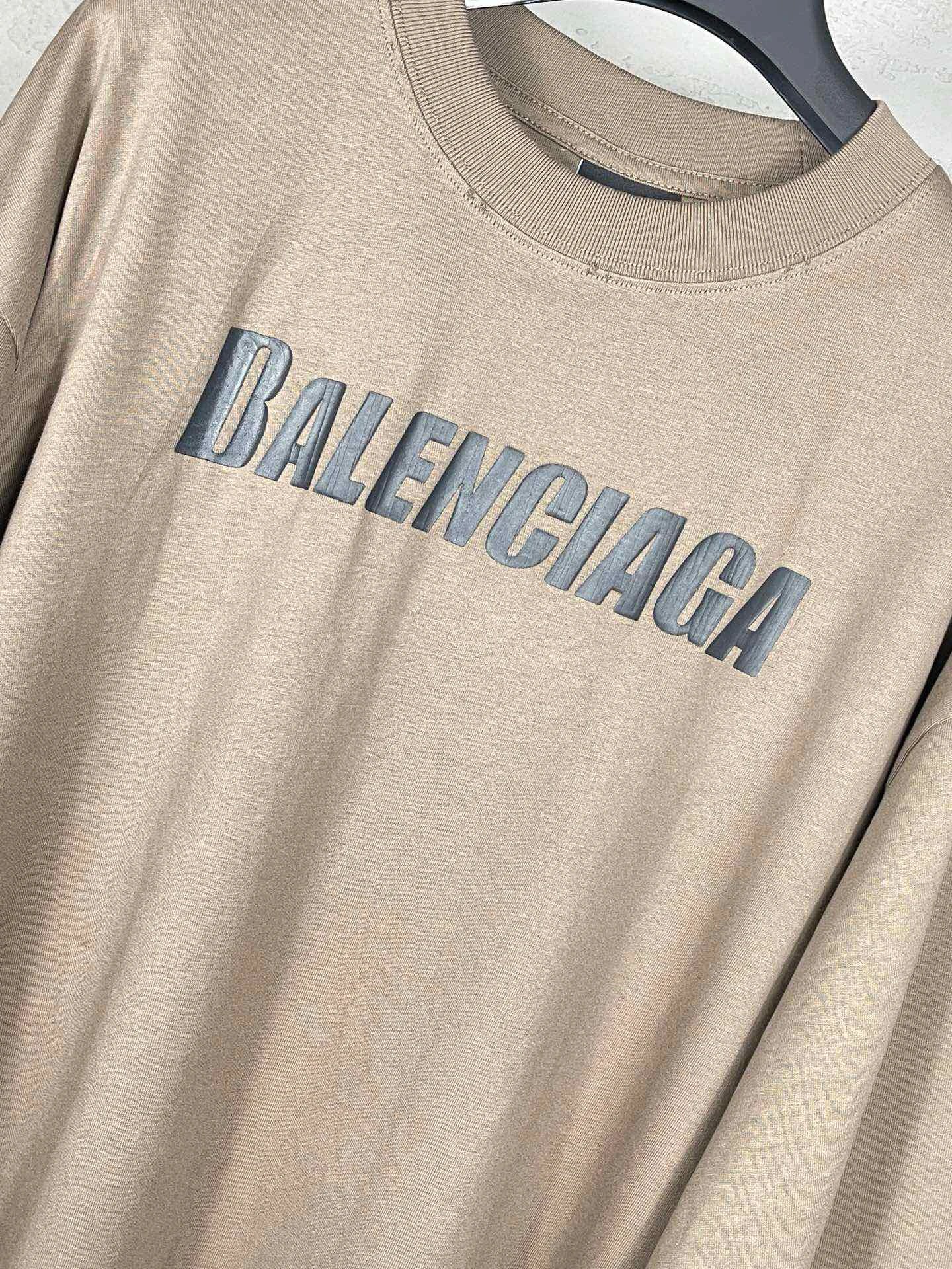 Balenciaga Top-Quality Unisex Long-Sleeve T-Shirt: Distressed Logo Print, 100% Cotton Double Yarn (260g), Color-Matched Thread, Loose OS Fit, Sizes XS/S/M/L, Colors Black/Brown, Style BL225009.