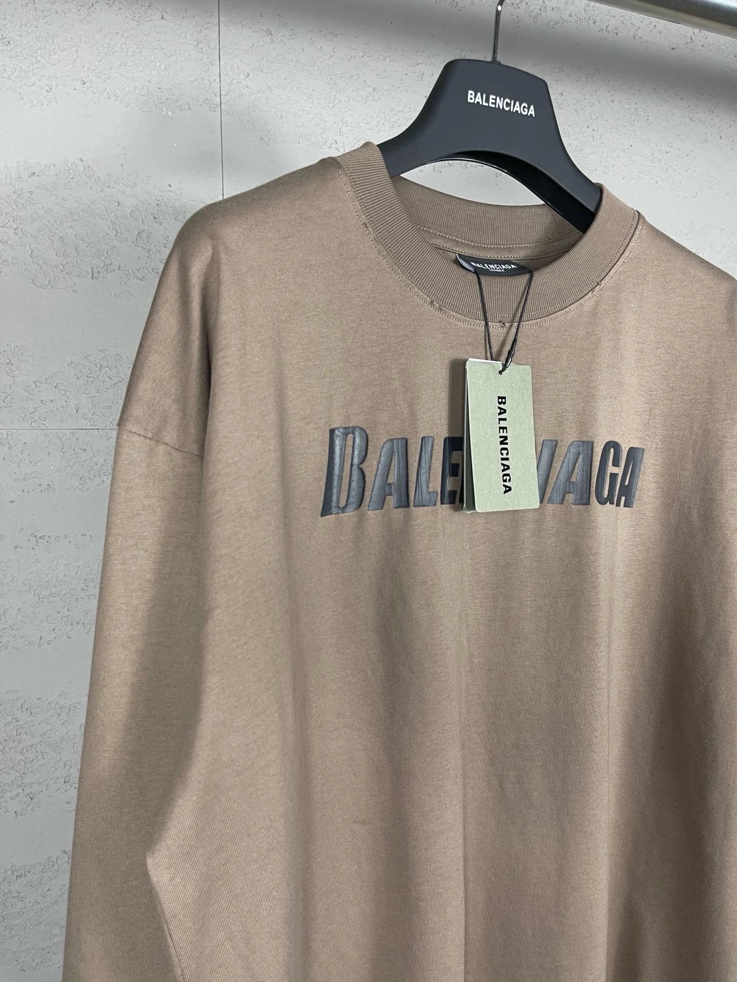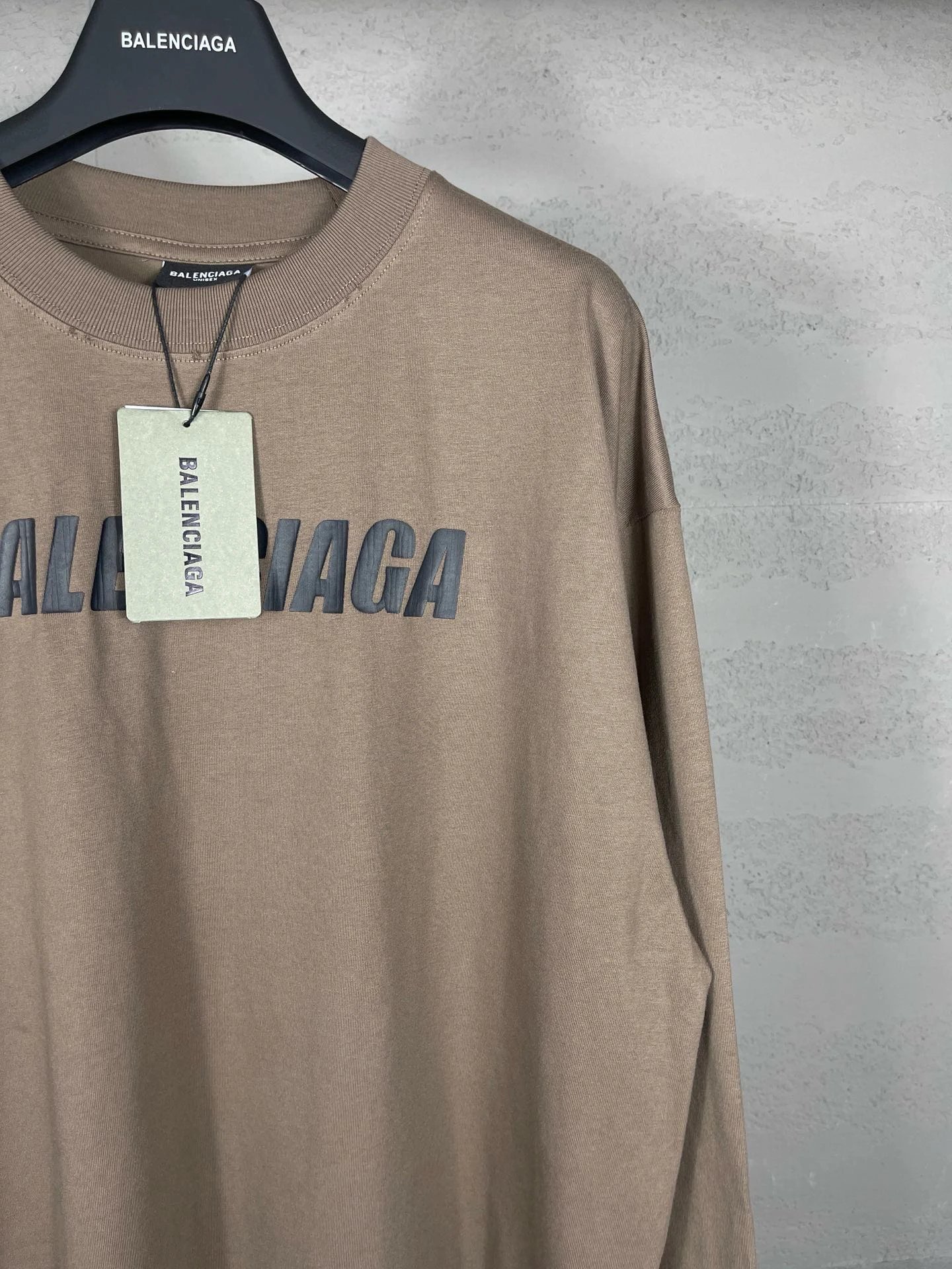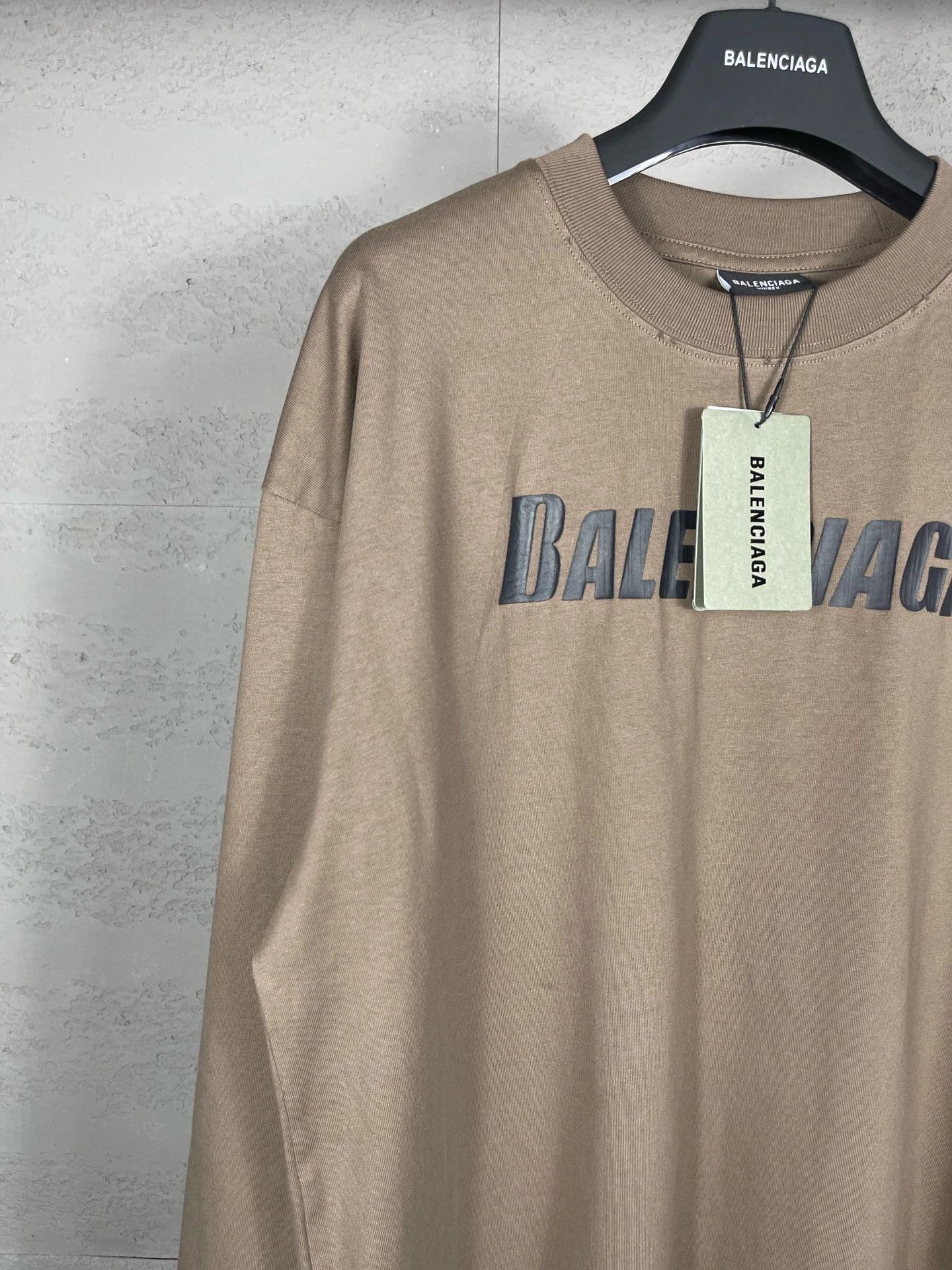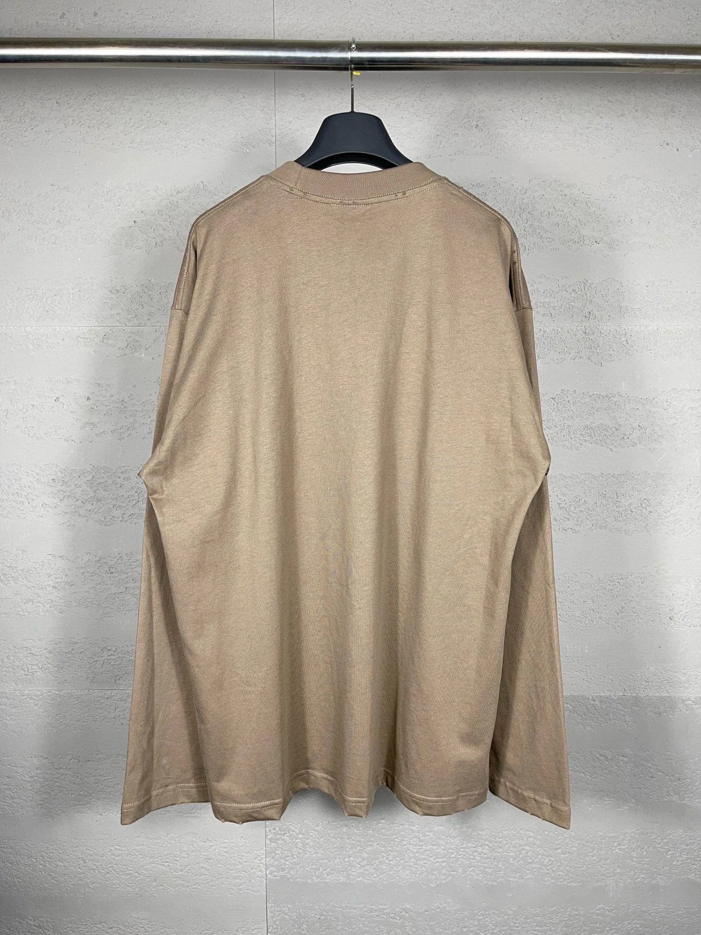 Balenciaga Top-Quality Unisex Long-Sleeve T-Shirt: Distressed Logo Print, 100% Cotton Double Yarn (260g), Color-Matched Thread, Loose OS Fit, Sizes XS/S/M/L, Colors Black/Brown, Style BL225009.