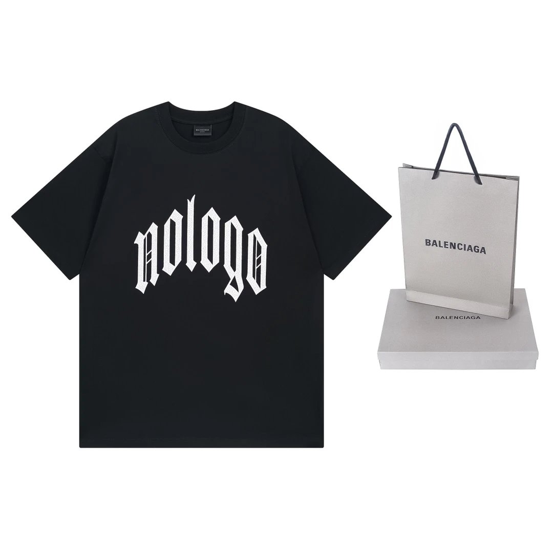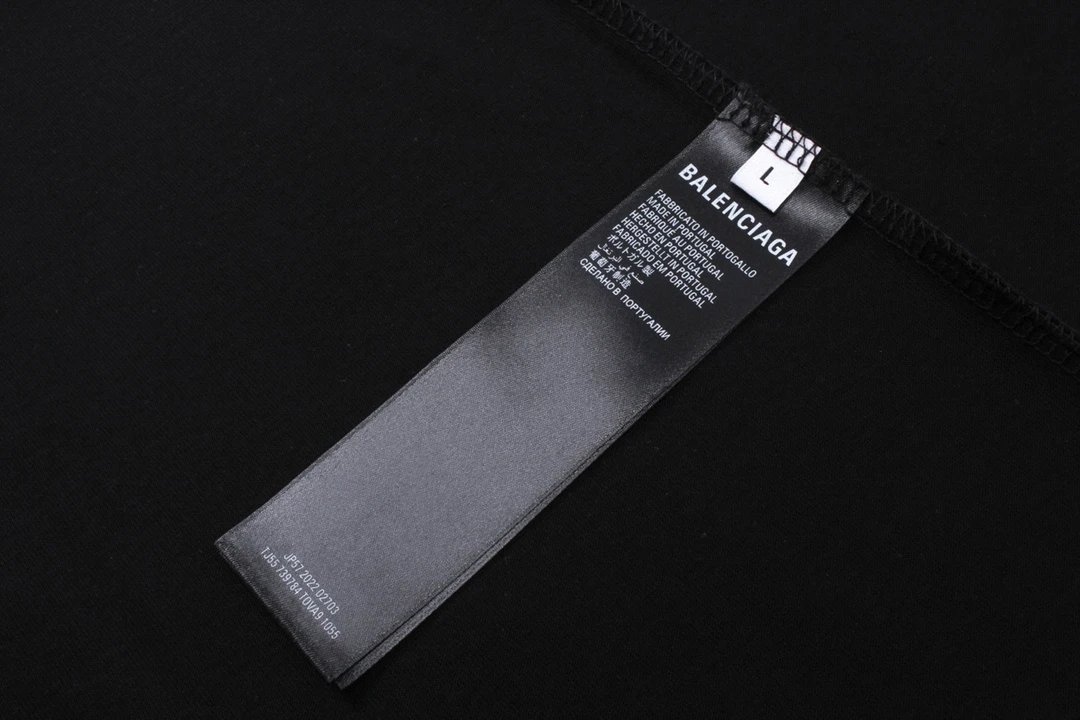 Balenciaga 2024 new black cotton T-shirt uses 260g double yarn cotton, OS loose drop-shoulder fit, eco-friendly cracked logo print, unisex style.