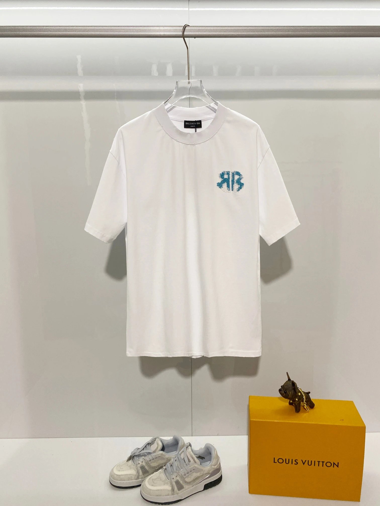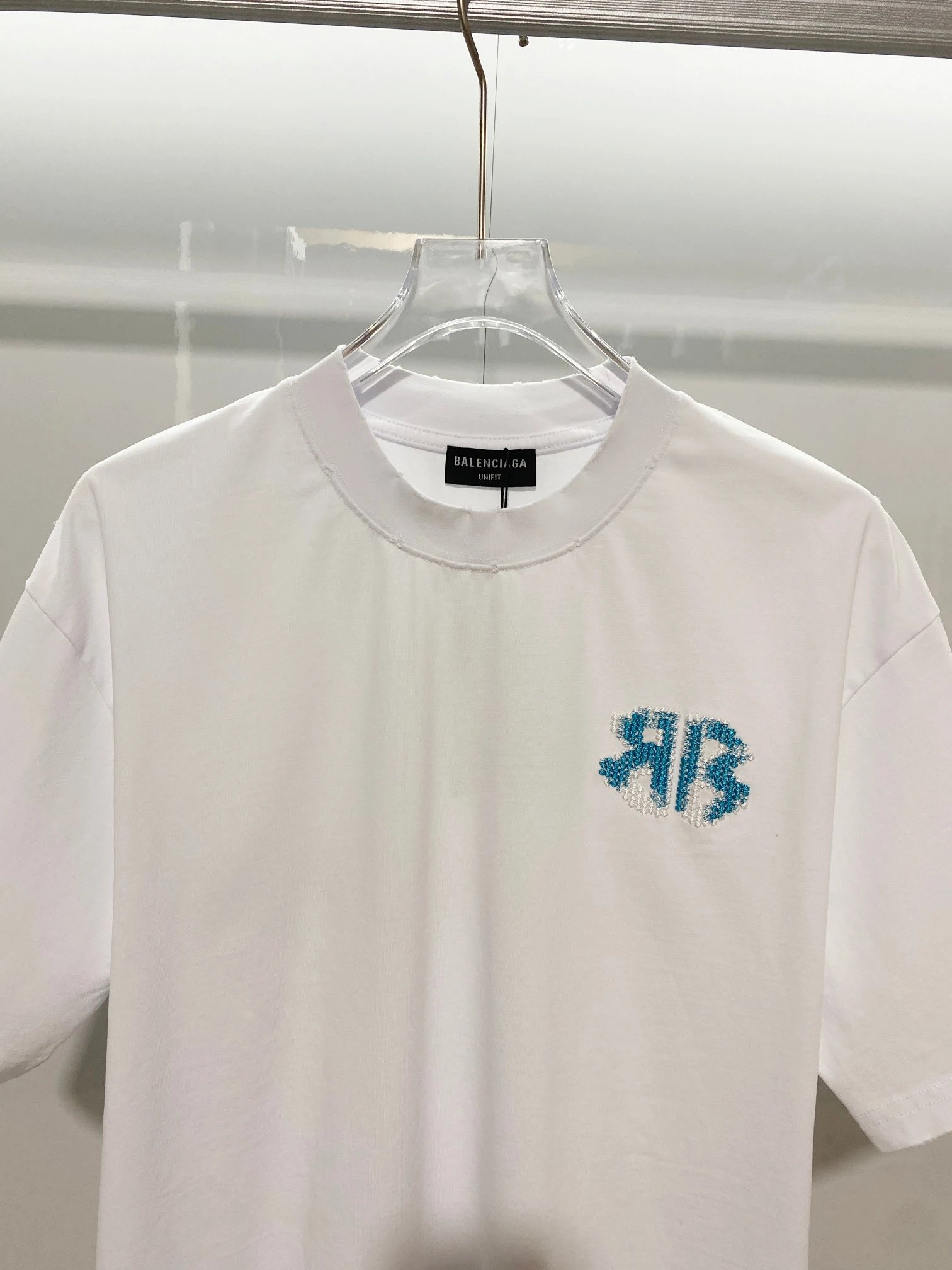 Balenciaga 2026SS Unisex Round Neck T-Shirts feature high-quality 320g fabric with double B embroidery logo.