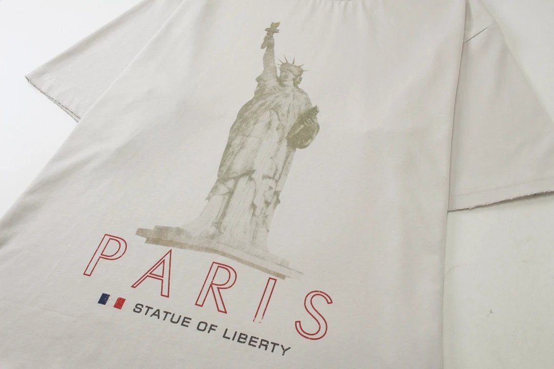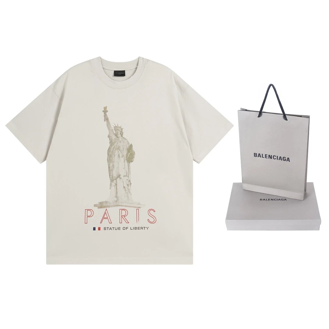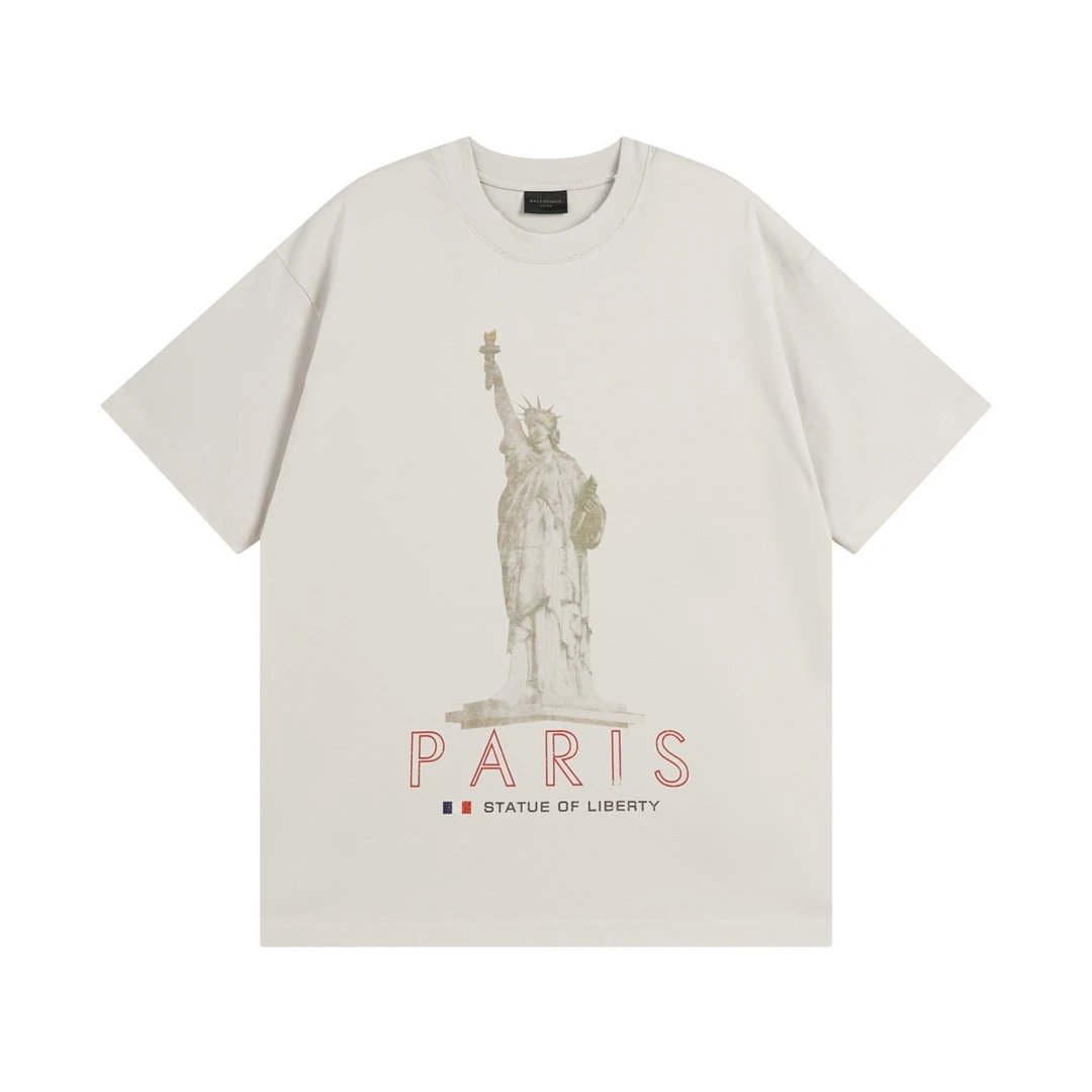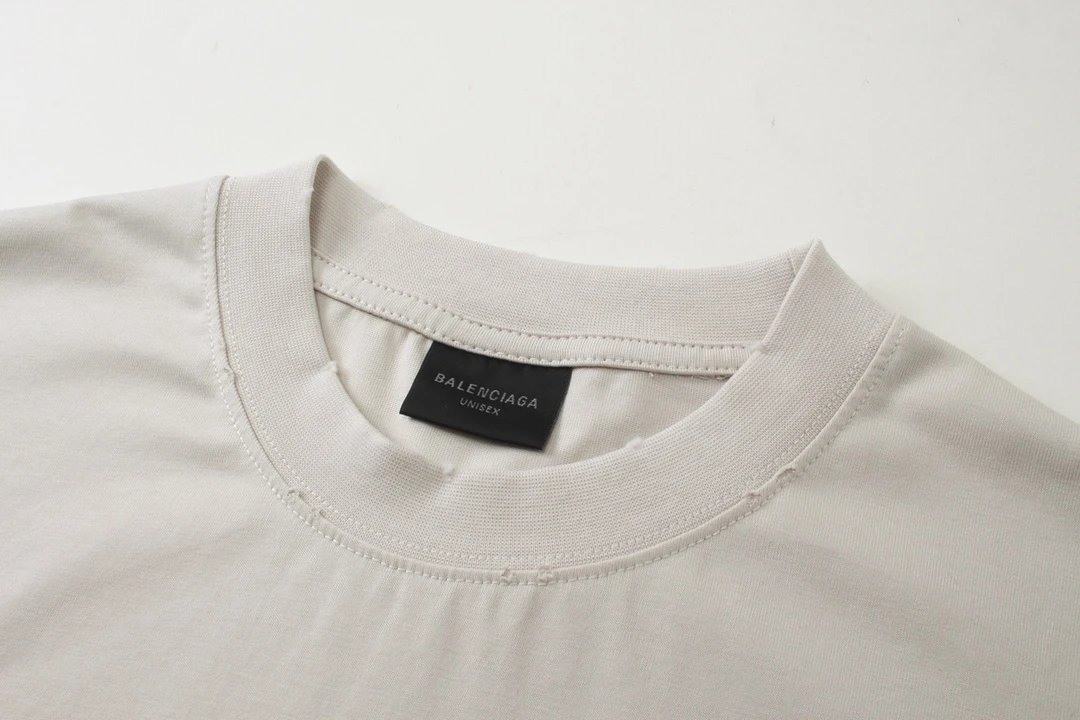 Balenciaga 2024 Runway Collection Unisex Oversized Washed T-Shirt. Custom 260g double cotton yarn, eco-friendly print, color-matched ribbed collar.